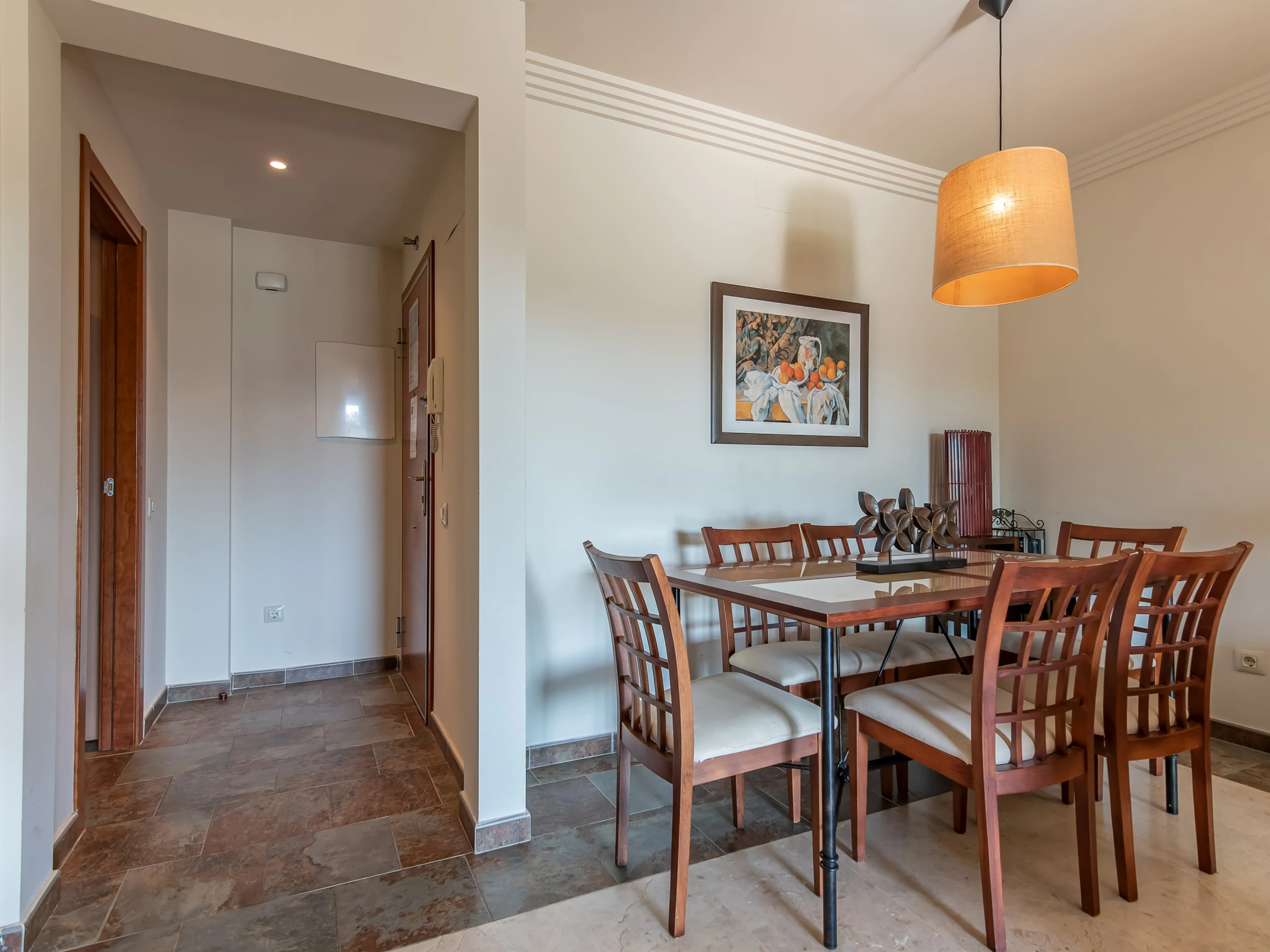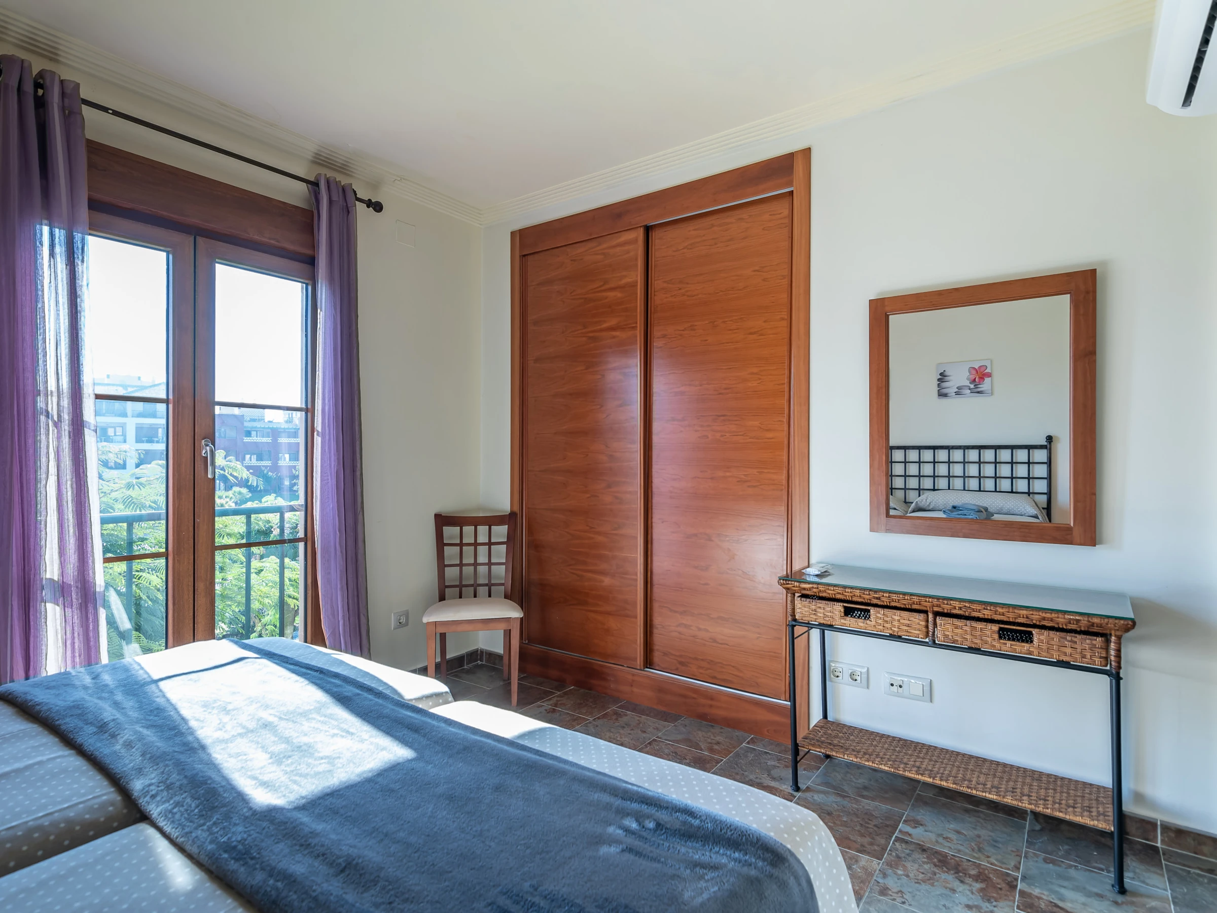 Dispone de ascensor, mobiliario jardín, parcela vallada, 15 m² de terraza, plancha, acceso internet (wifi), secador, zona infantil, pista de tenis, pista de padel, calefacción bomba de calor, aire acondicionado en todo el alojamiento, piscina comunitaria y adultos e infantil, parking cubierto en mismo edificio, Televisión, tv satelite (Idiomas: Español, Inglés).