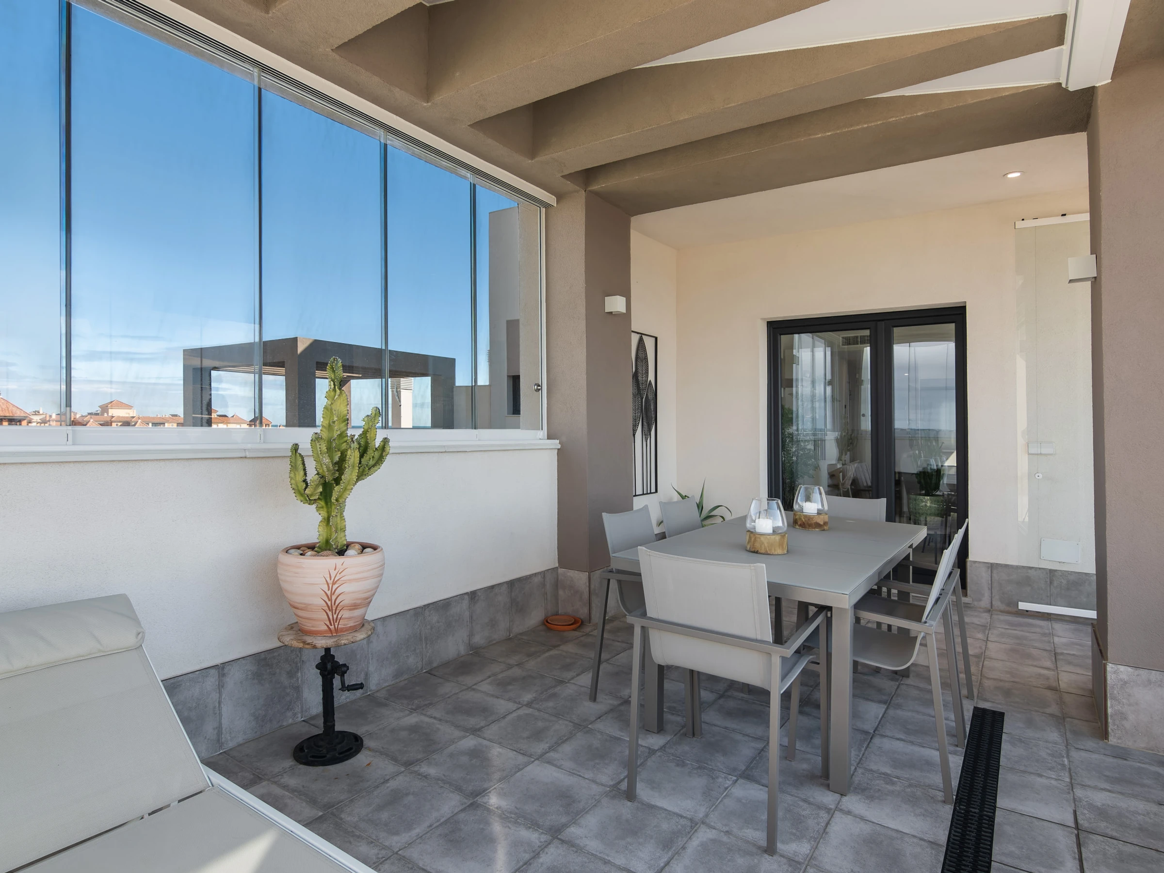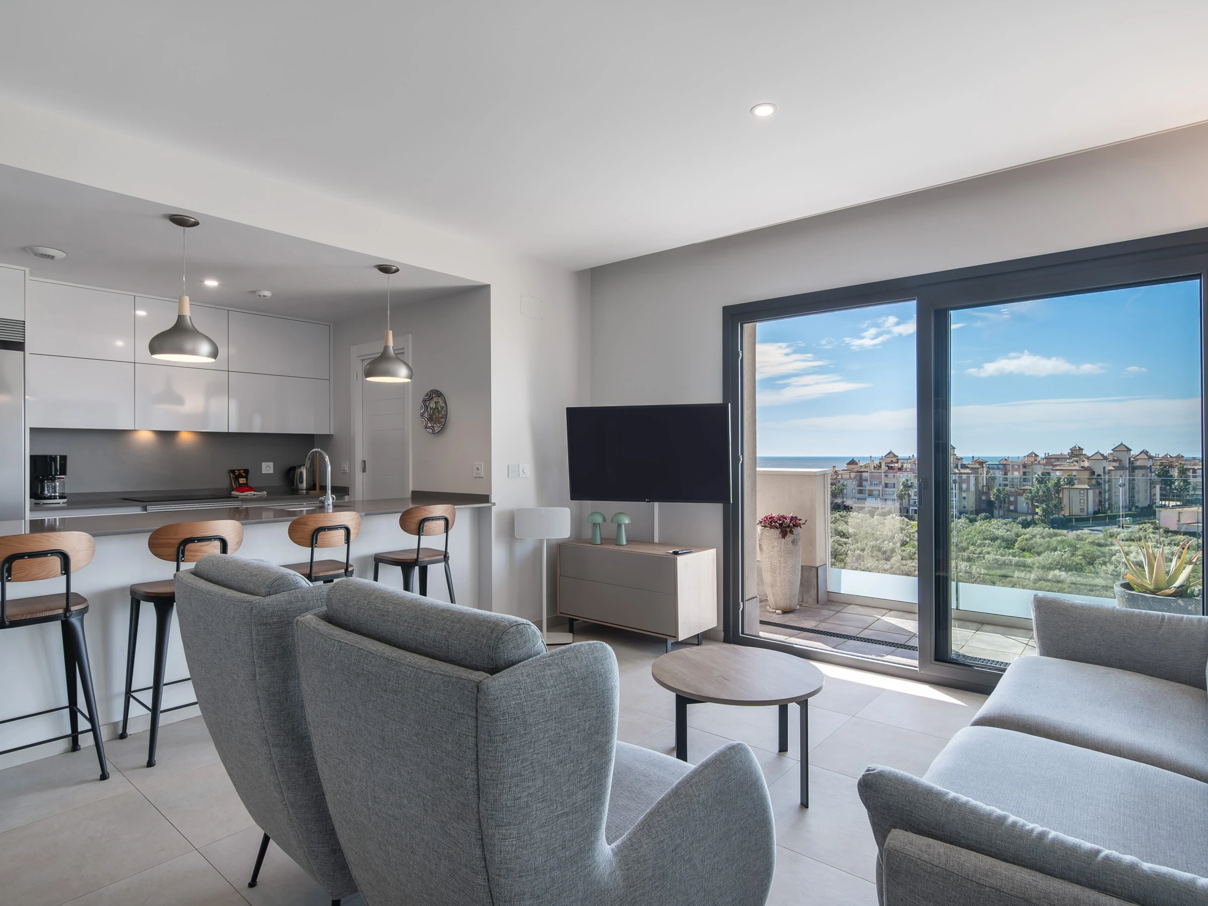 Dispone de ascensor, jardín, mobiliario jardín, 71 m² de terraza, plancha, acceso internet (wifi), secador, balcón, zona infantil, pista de tenis, pista de padel, jacuzzi, calefacción bomba de calor, aire acondicionado en todo el alojamiento, piscina comunitaria+infantil, parking cubierto en mismo edificio, 1 Televisor.