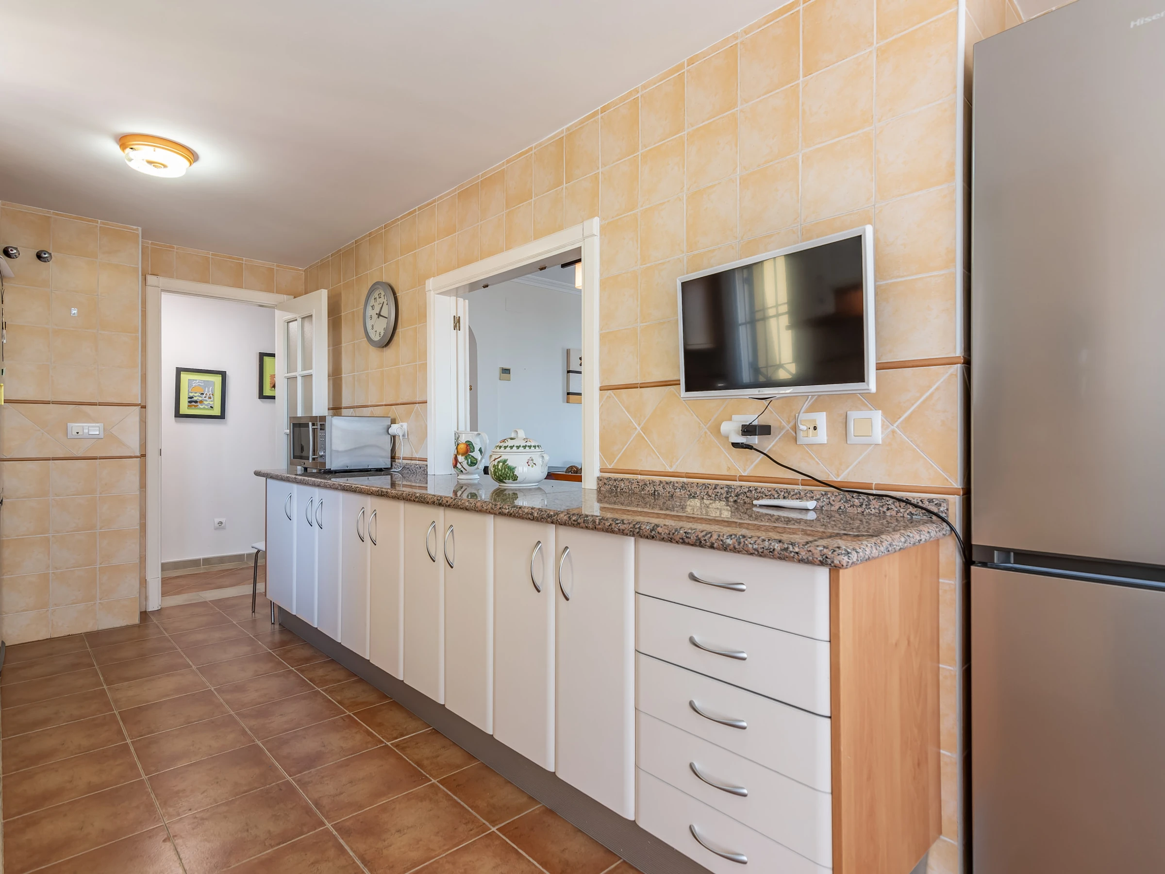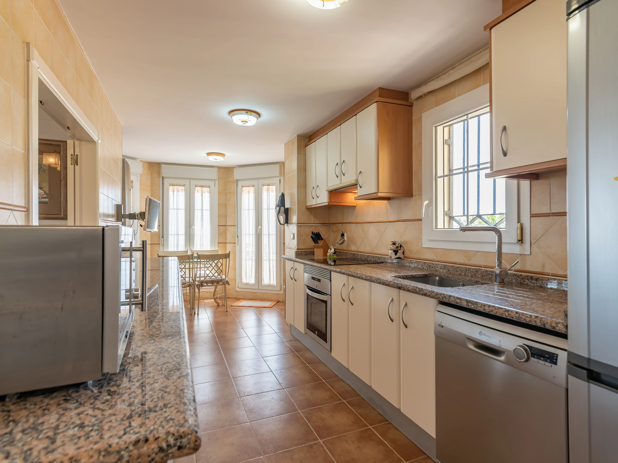 La cocina americana, de vitrocerámica, está equipada con nevera, microondas, horno, congelador, lavadora, lavavajillas, vajilla/cubertería, utensilios/cocina, cafetera, tostadora, hervidor de agua y exprimidor.