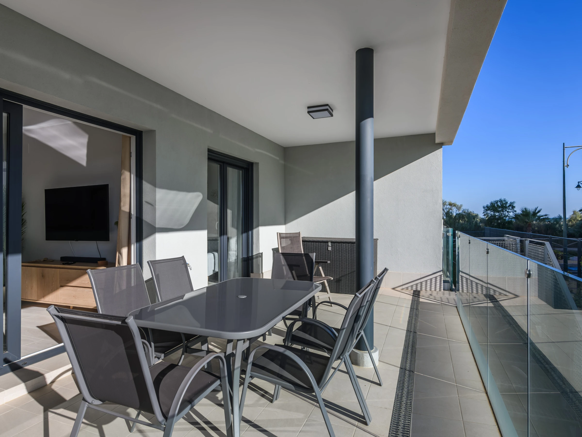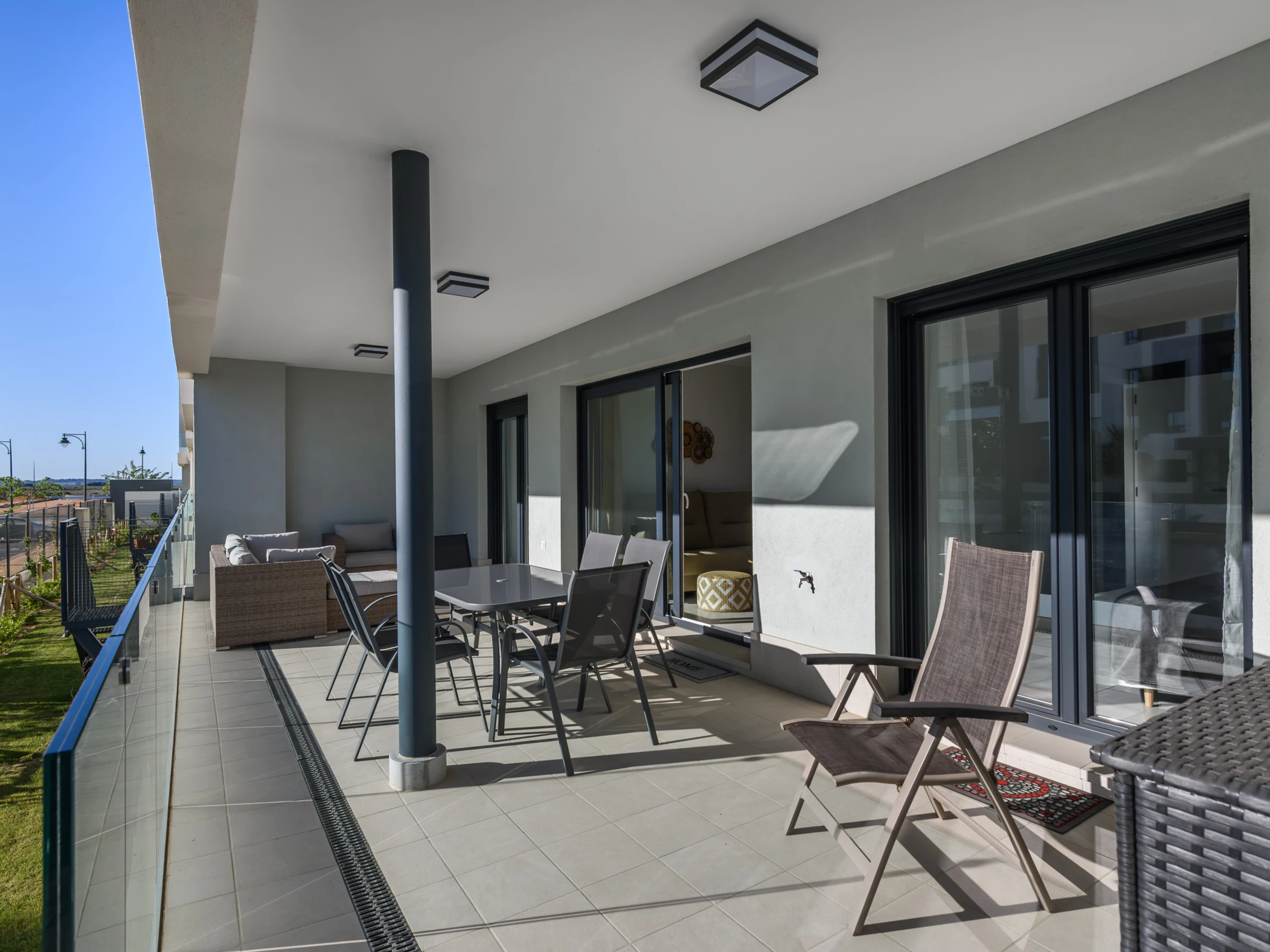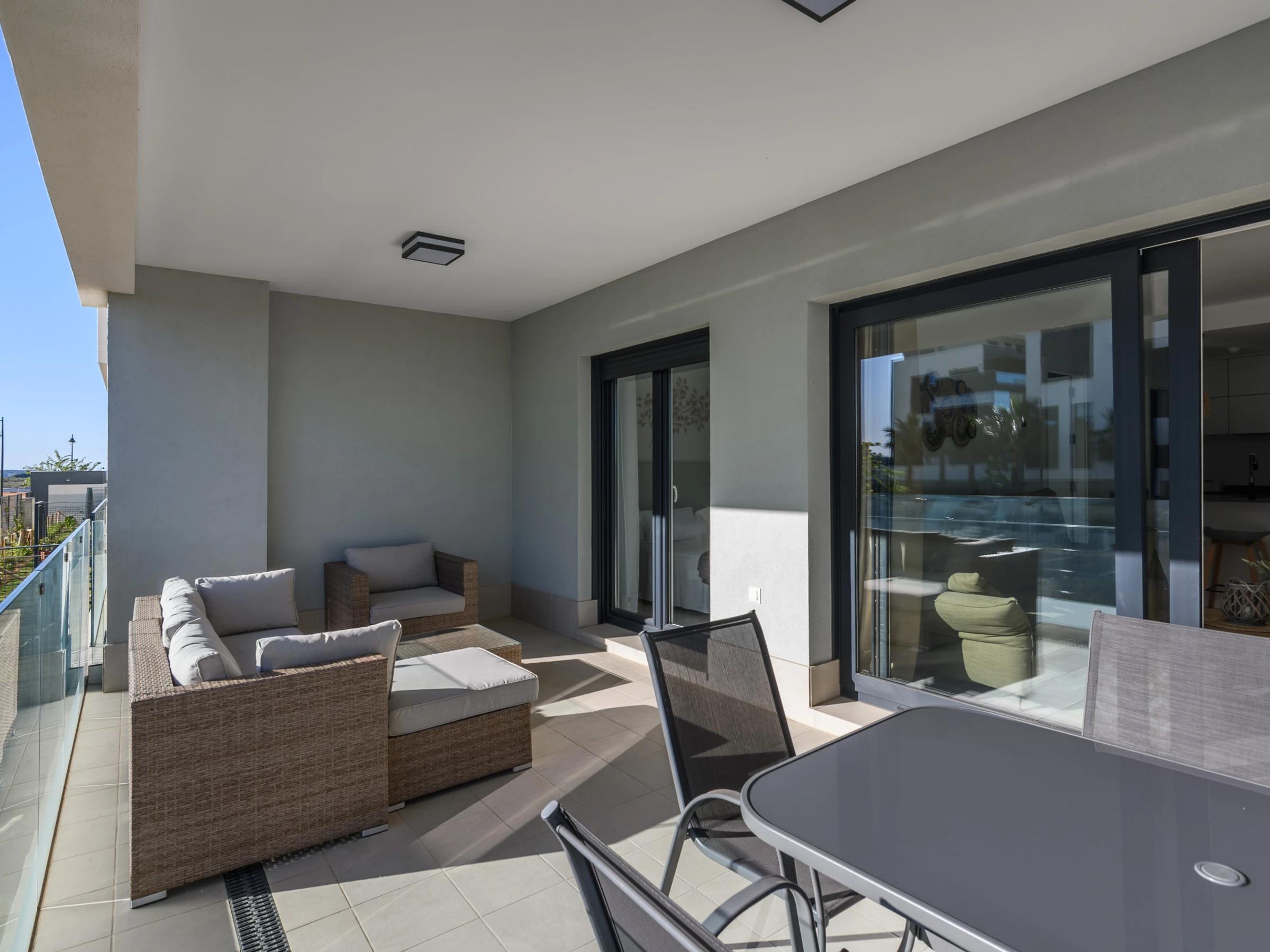 Dispone de ascensor, jardín, mobiliario jardín, 32 m² de terraza, lavadora, plancha, acceso internet (wifi), zona infantil, calefacción bomba de calor, aire acondicionado en todo el alojamiento, piscina comunitaria+infantil, parking aire libre en mismo edificio, Televisión.