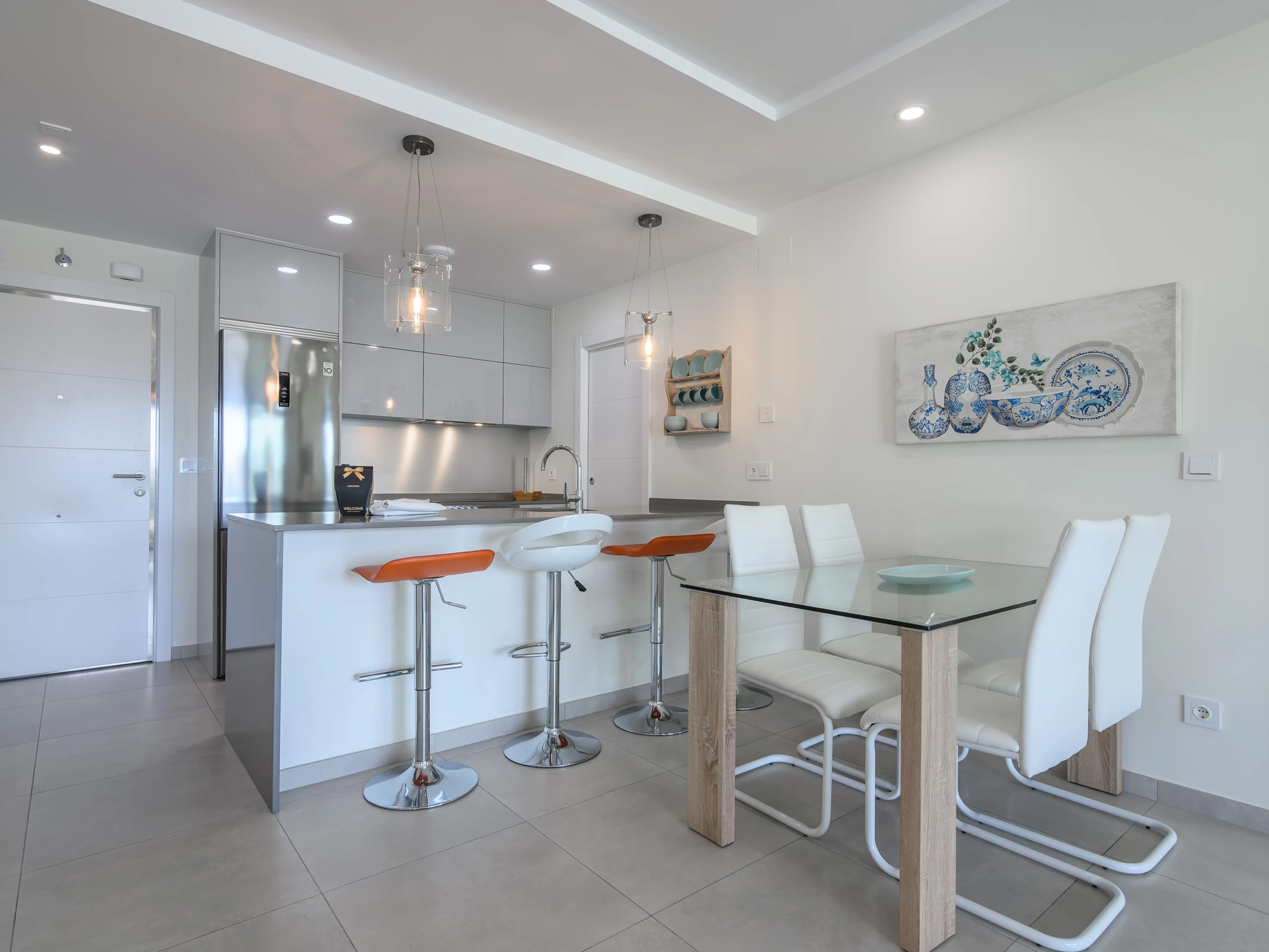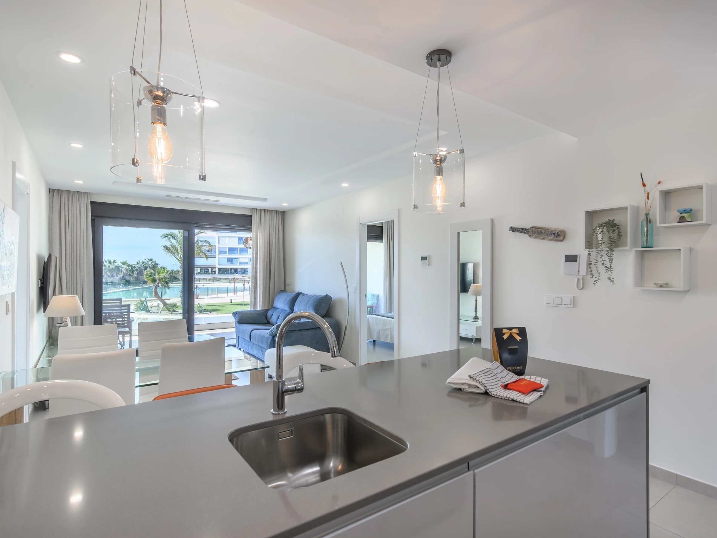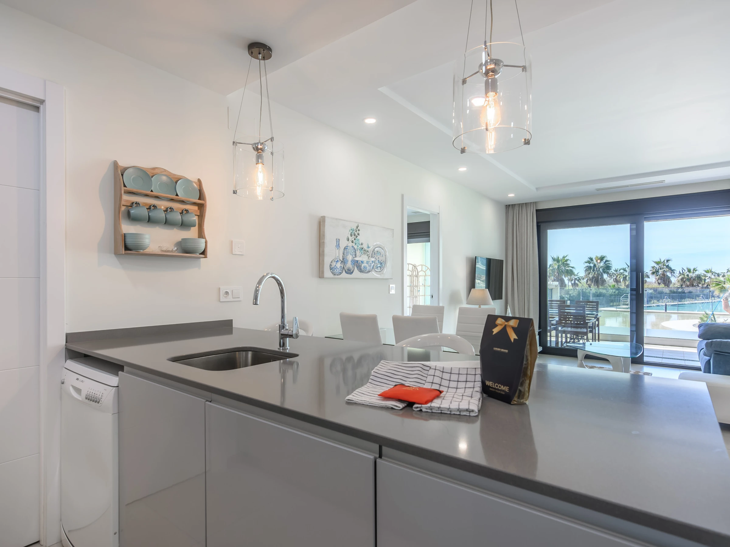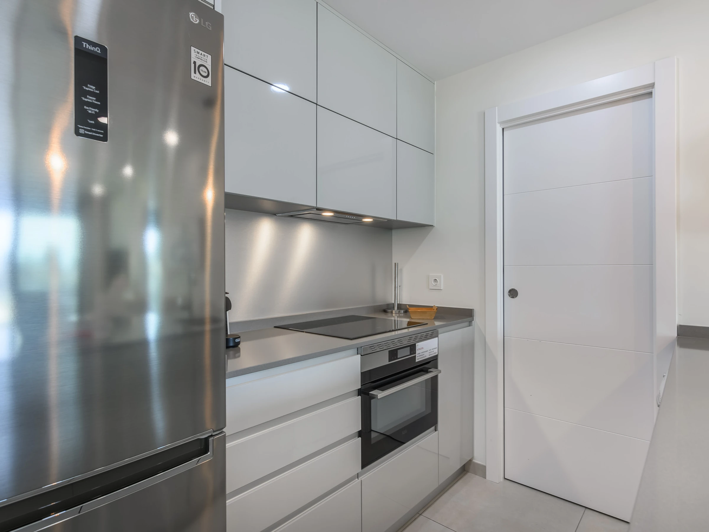 La cocina americana está totalmente equipada con electrodomésticos de última generación, incluyendo lavadora, secadora, lavavajillas, horno, microondas, cafetera, tostadora, y una amplia variedad de menaje. Aire acondicionado y bomba de calor aseguran una temperatura perfecta durante todo el año, mientras que la conexión WiFi y tres televisores mantendrán a todos entretenidos.