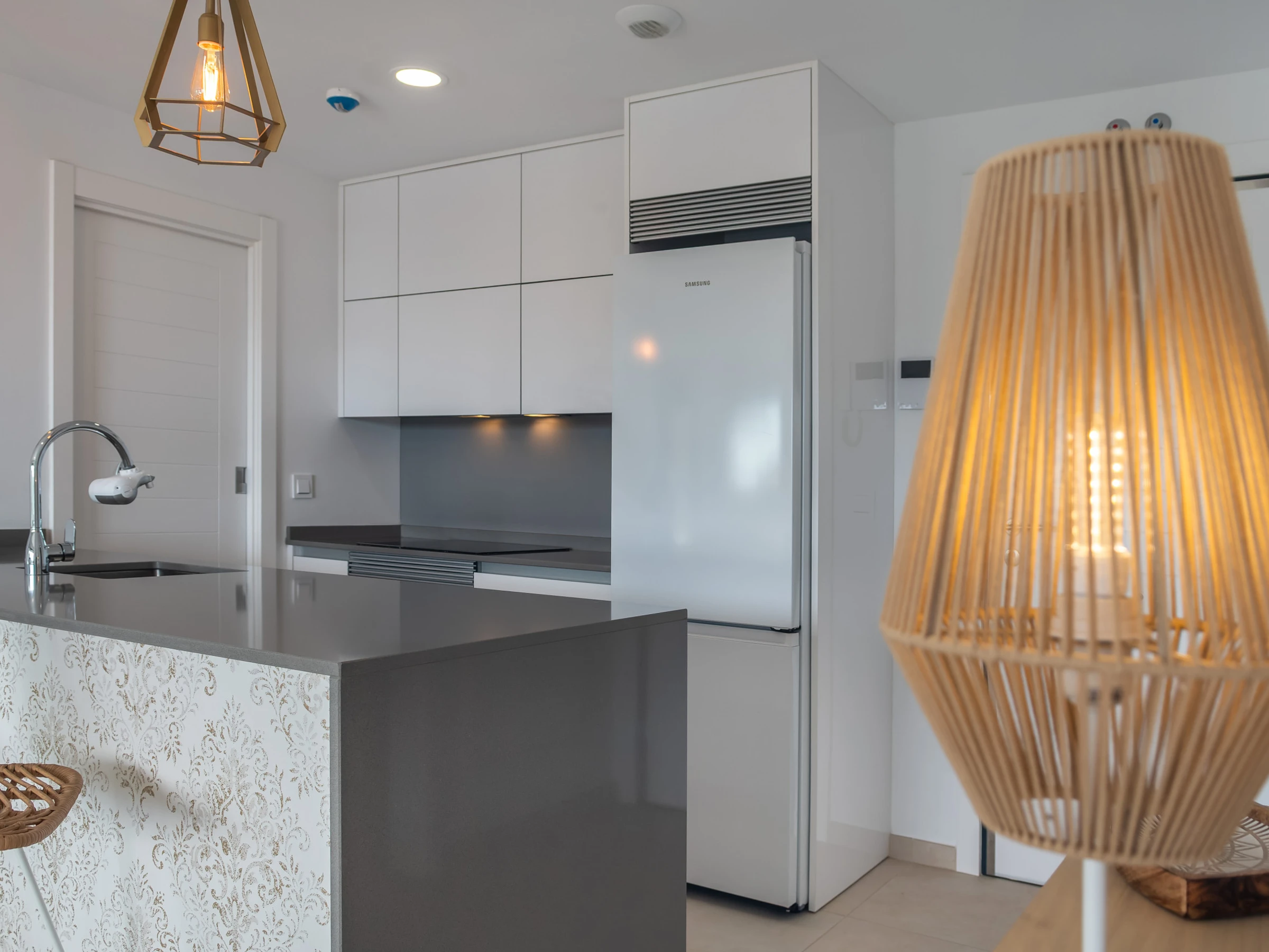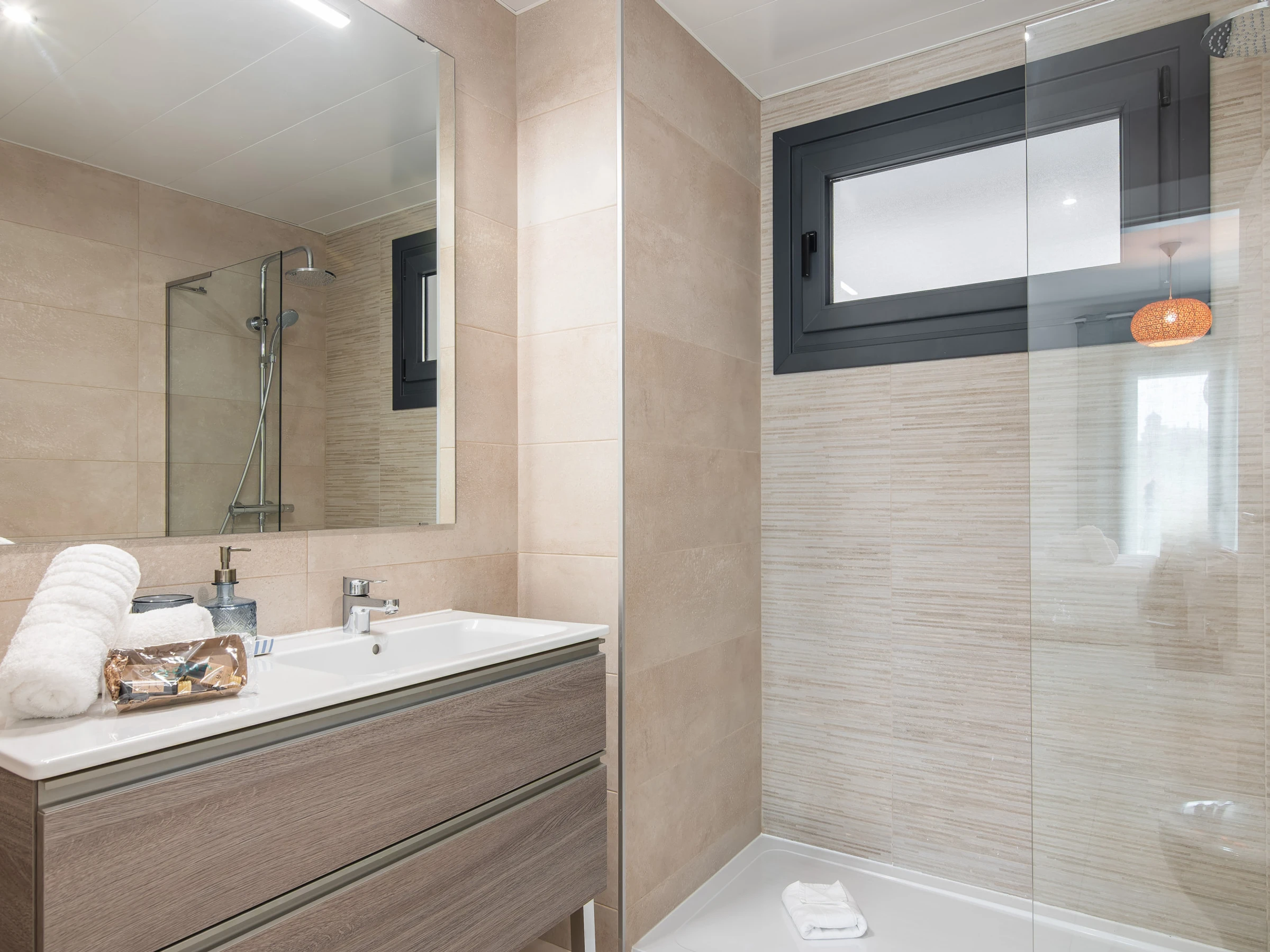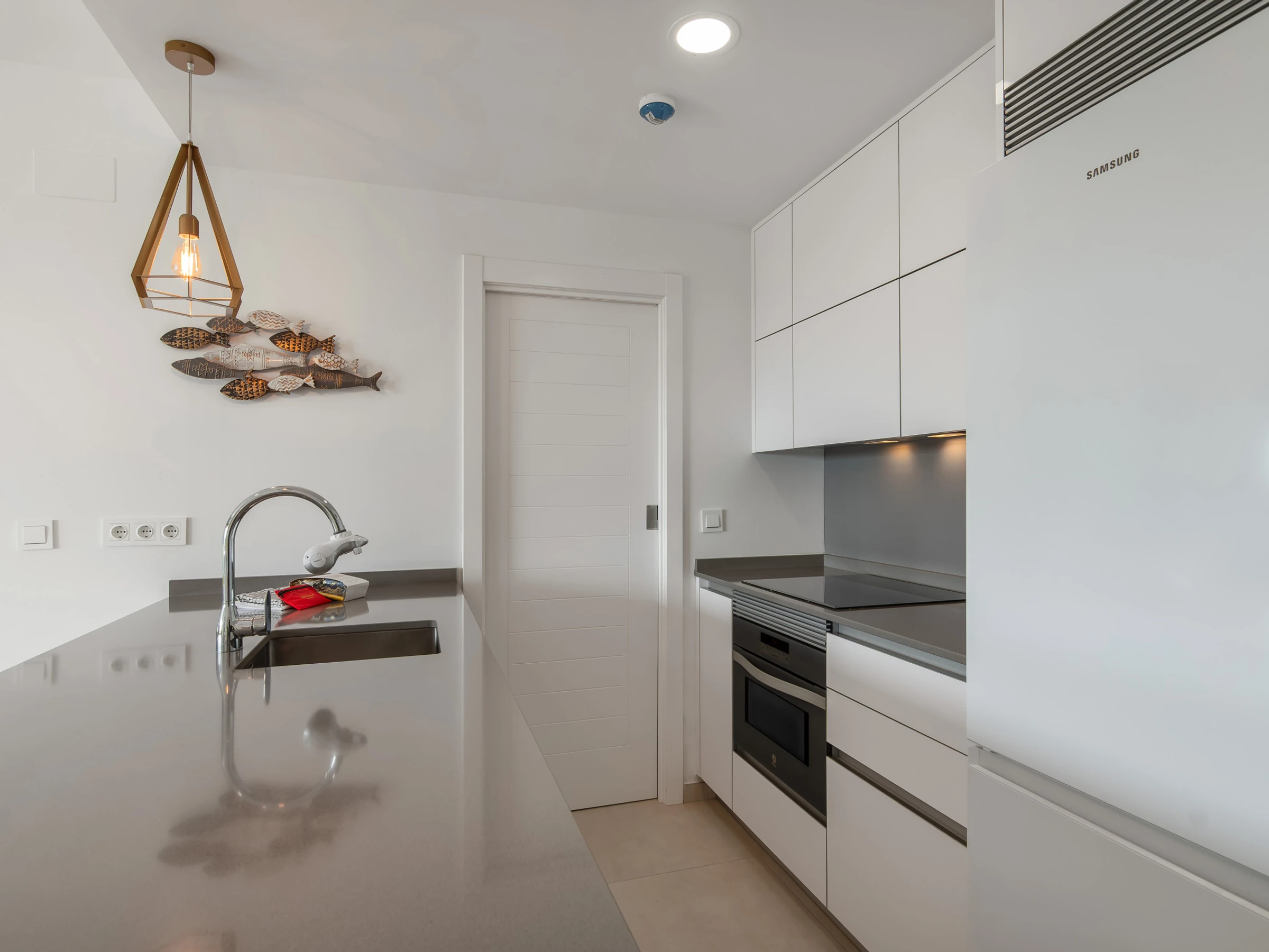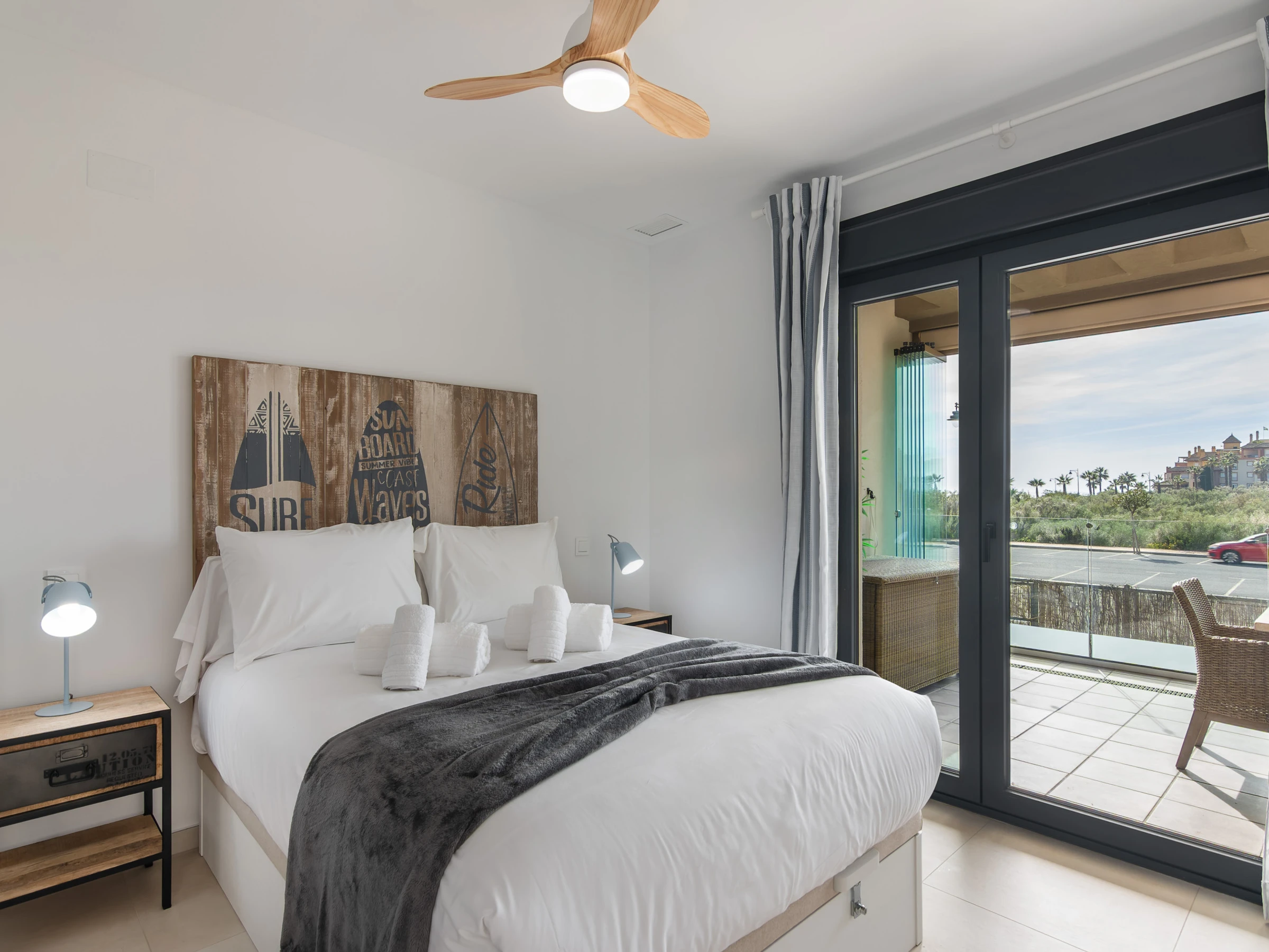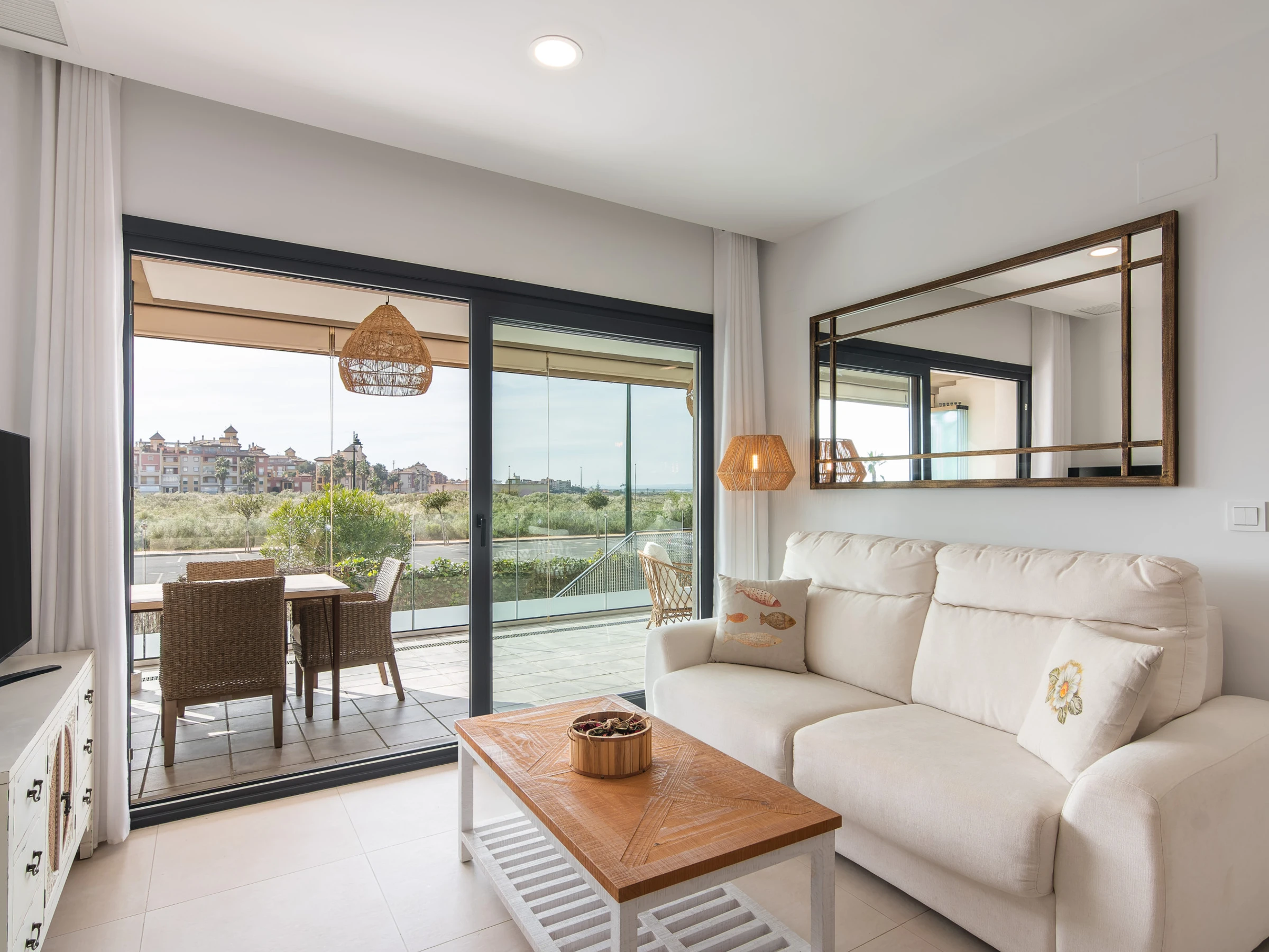 El apartamento cuenta con dos dormitorios con camas dobles, ideal para 4 personas, y ofrece todas las comodidades para hacer tu estancia inolvidable. Dispone de aire acondicionado y calefacción por bomba de calor para garantizar tu confort en cualquier época del año. La cocina americana está completamente equipada con electrodomésticos de última generación, incluyendo nevera, lavadora, lavavajillas, horno, microondas y máquina de café.