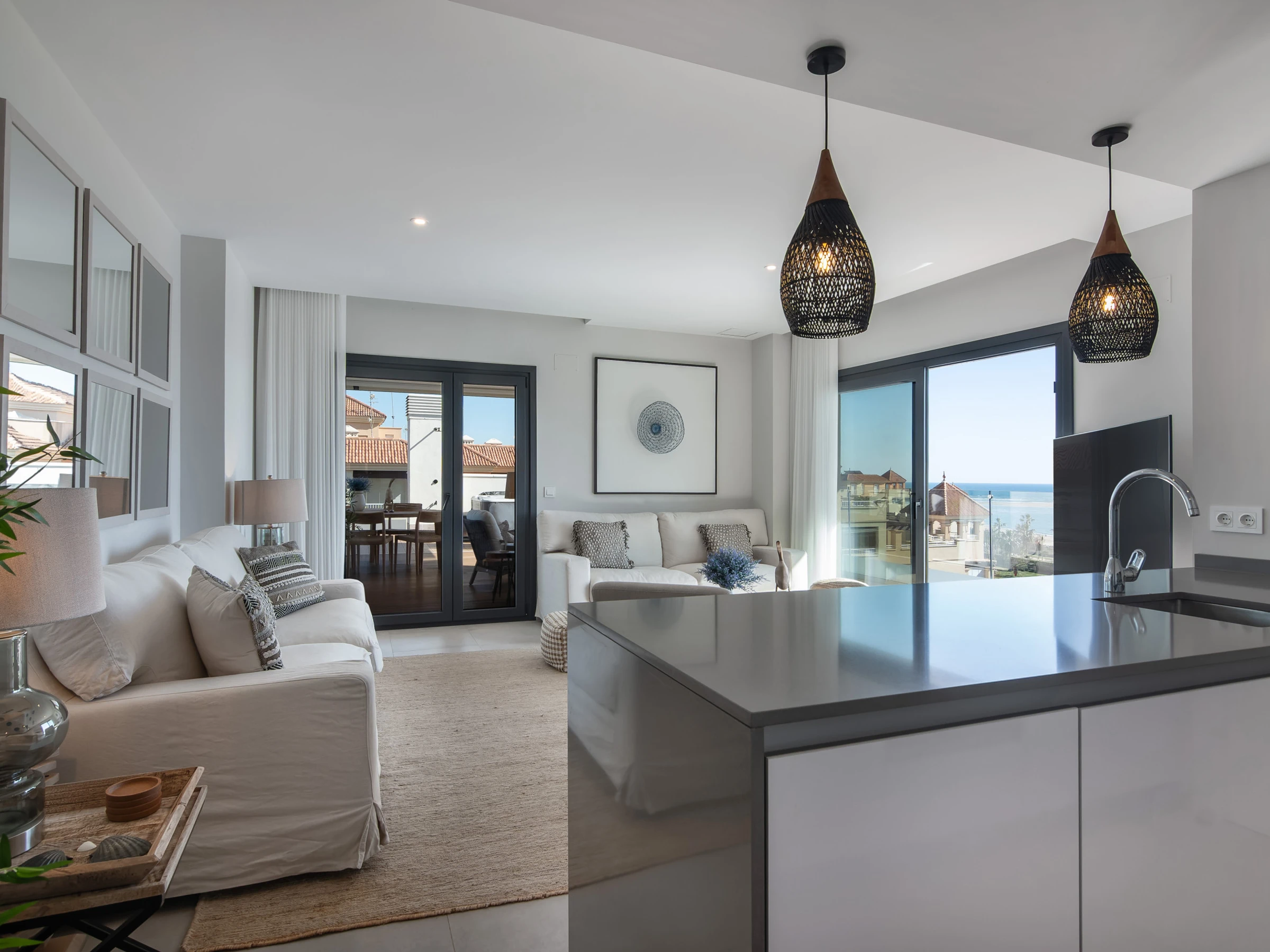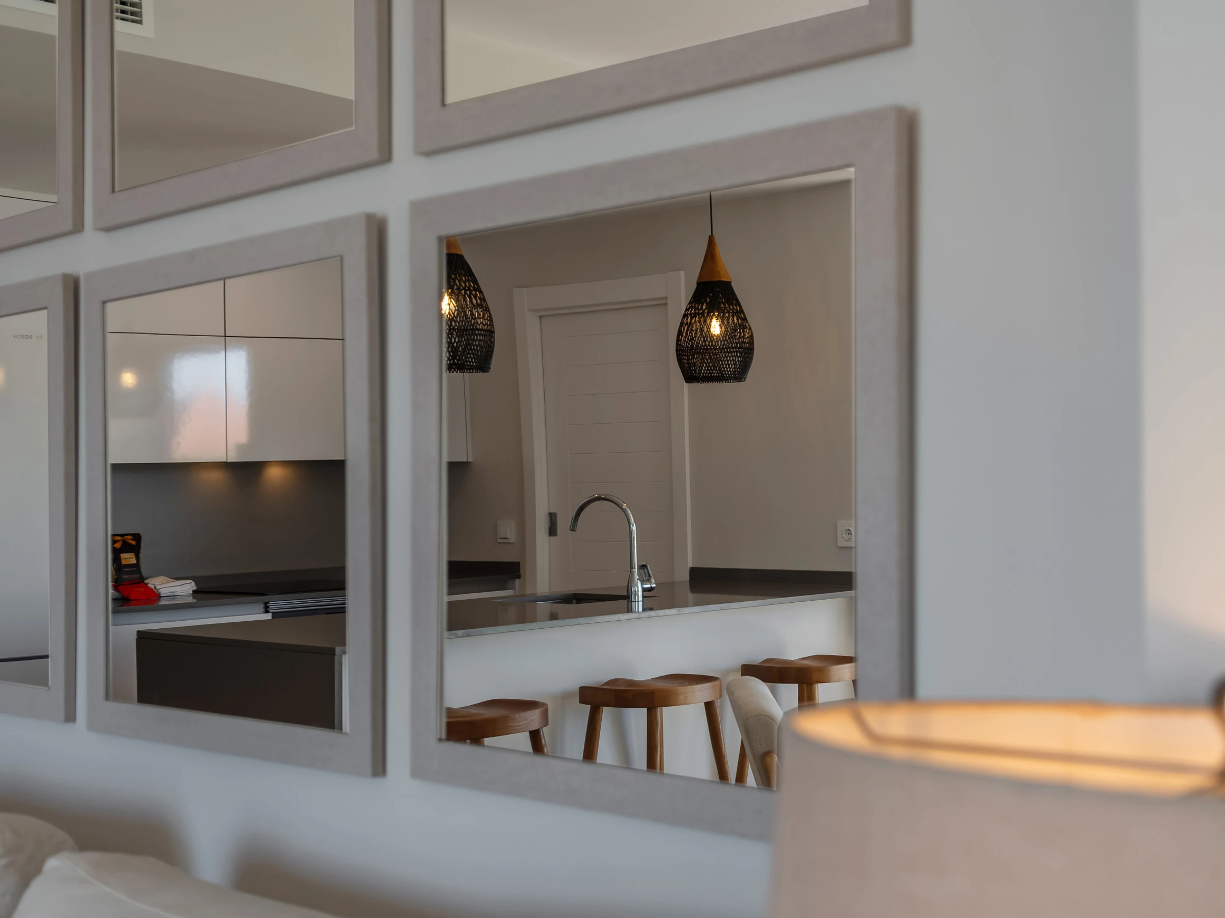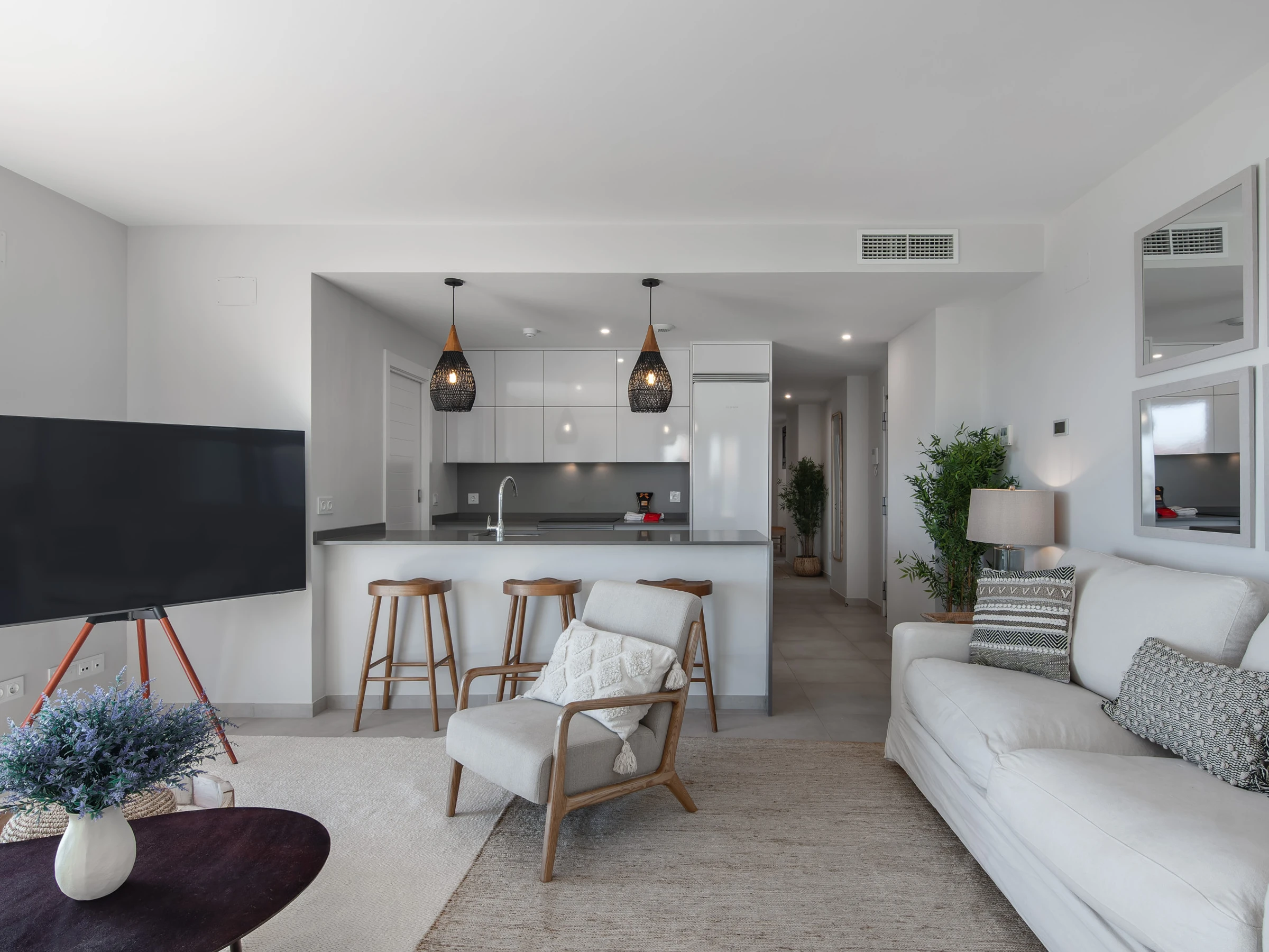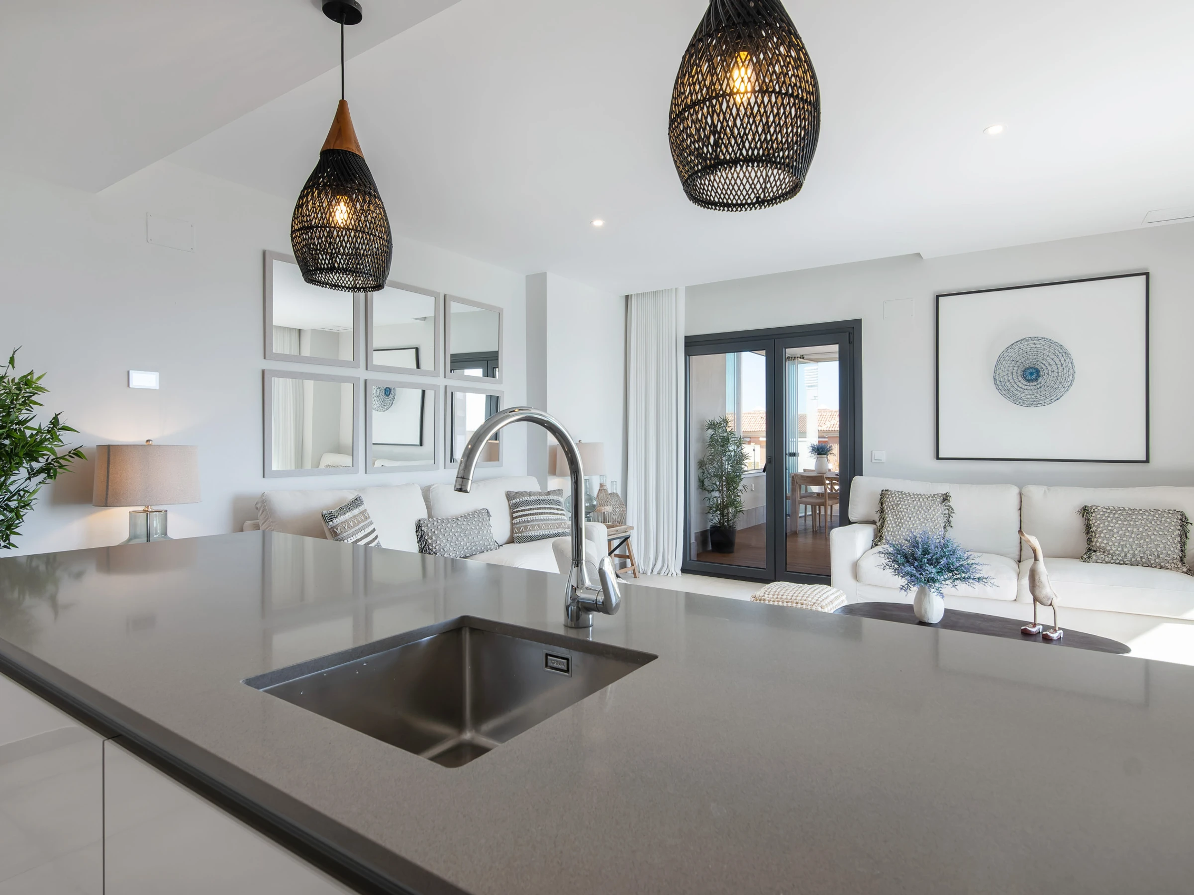 La cocina americana está totalmente equipada con electrodomésticos de última generación, incluyendo lavadora, secadora, lavavajillas, horno, microondas y cafetera. Perfecta para preparar deliciosas comidas en familia o disfrutar de desayunos tranquilos.