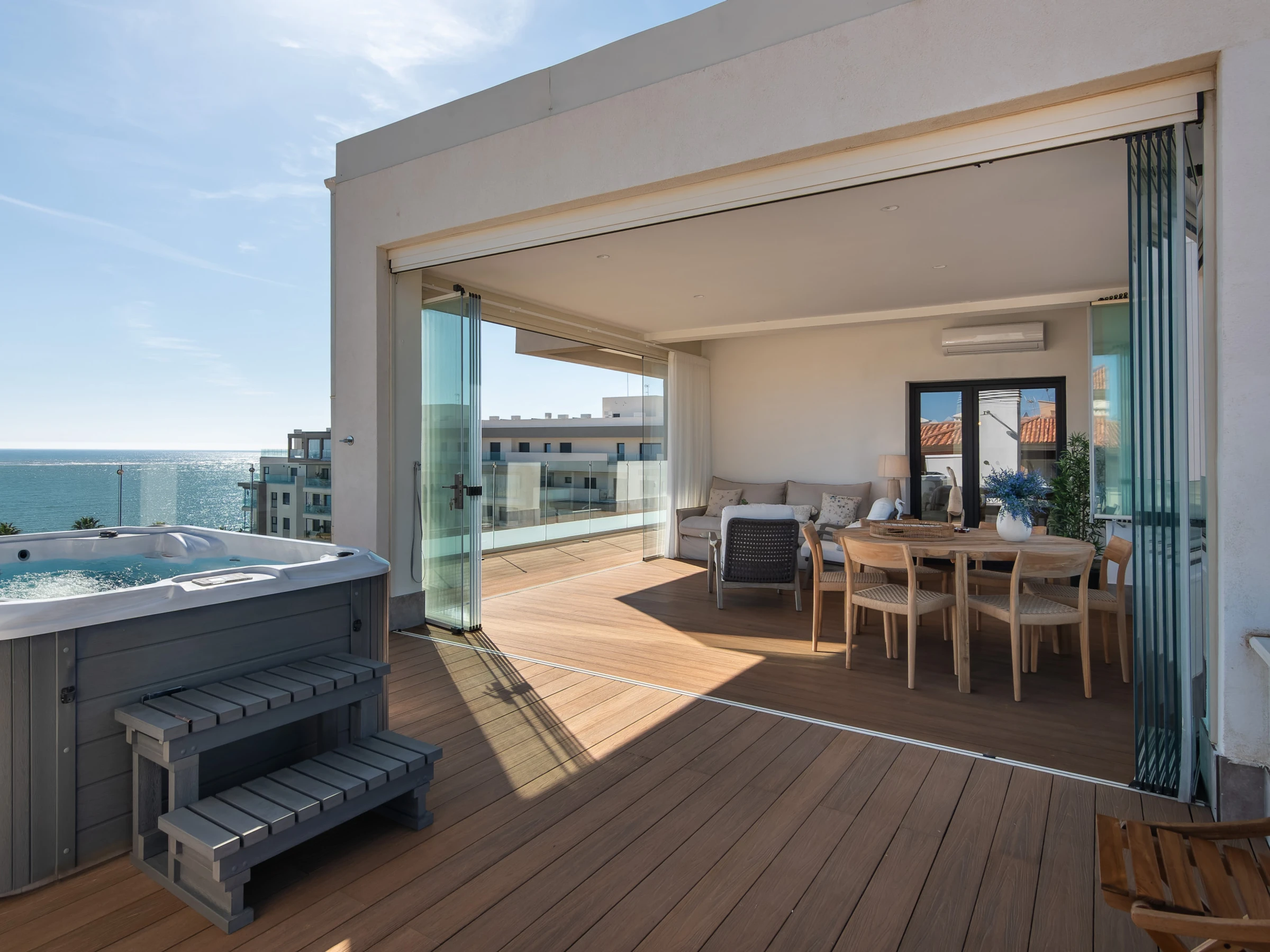 Una de las grandes ventajas de este alojamiento es su amplia terraza de 112 m², donde podrás disfrutar de momentos únicos al aire libre. El jardín cercado y amueblado ofrece un espacio seguro y divertido para los niños, con zona infantil incluida.