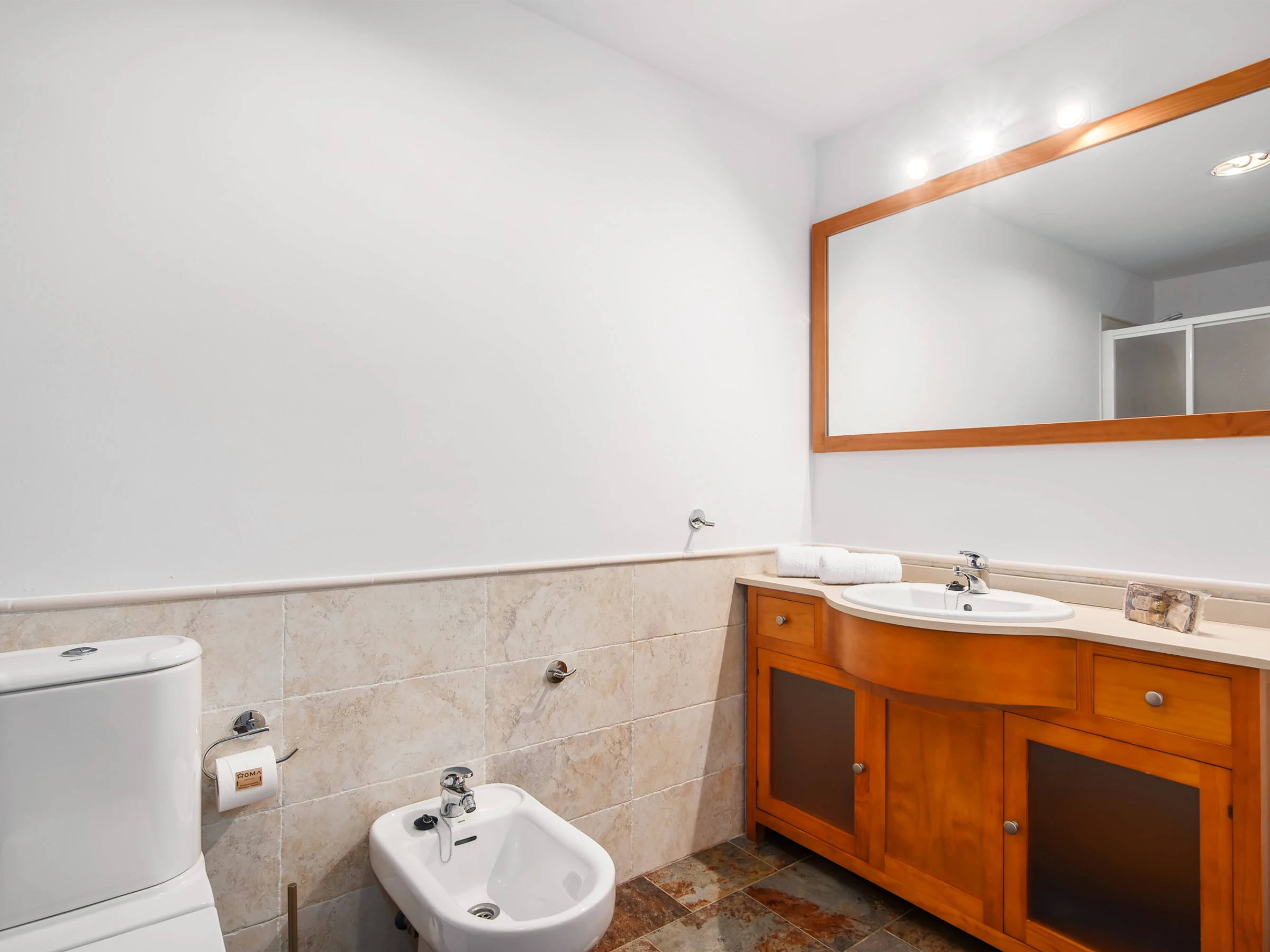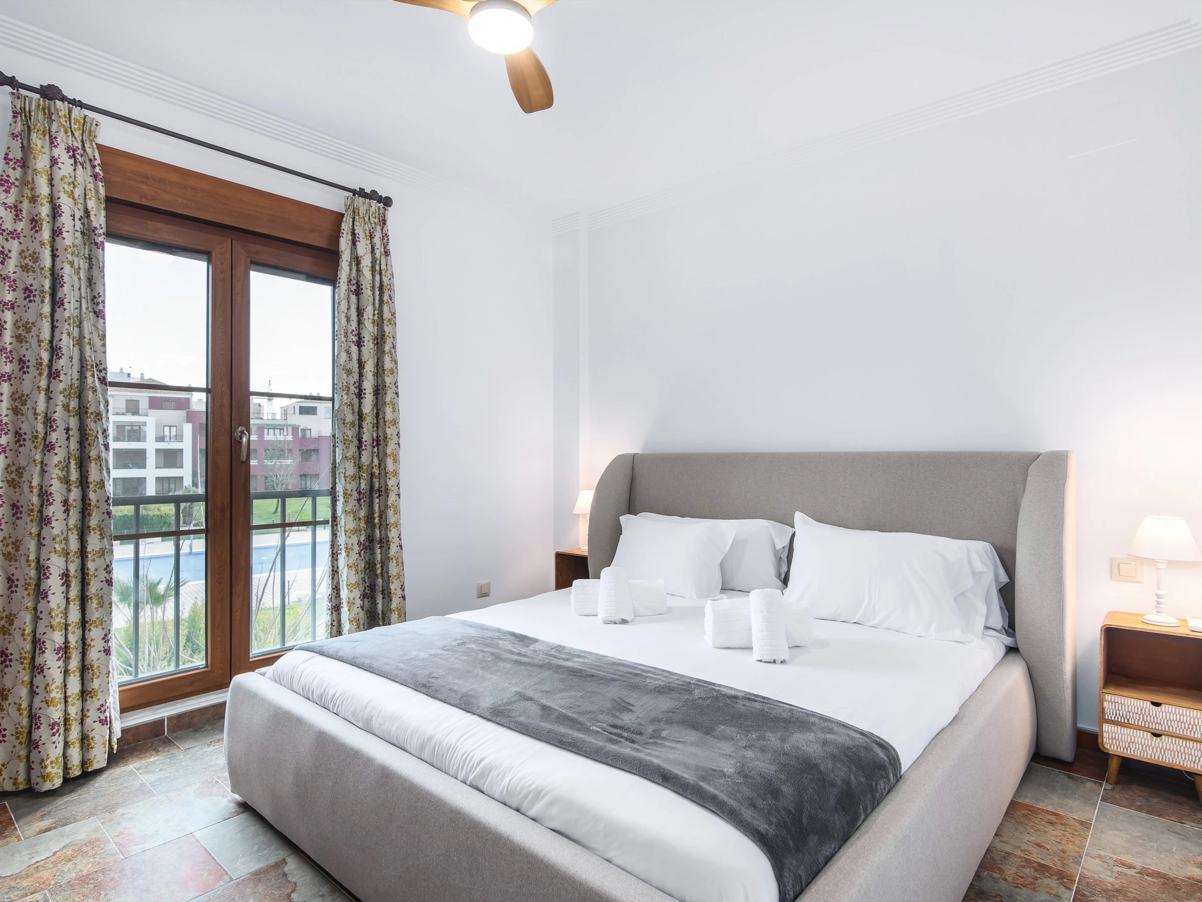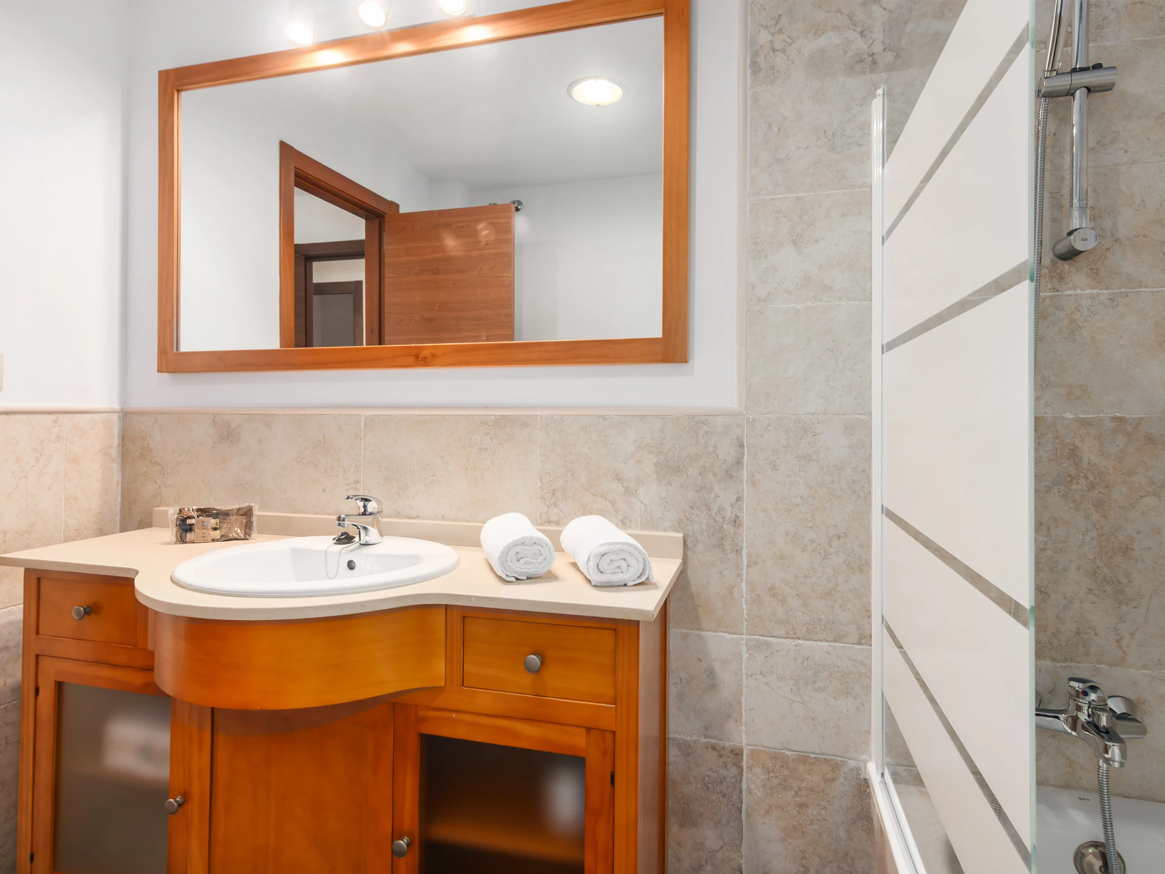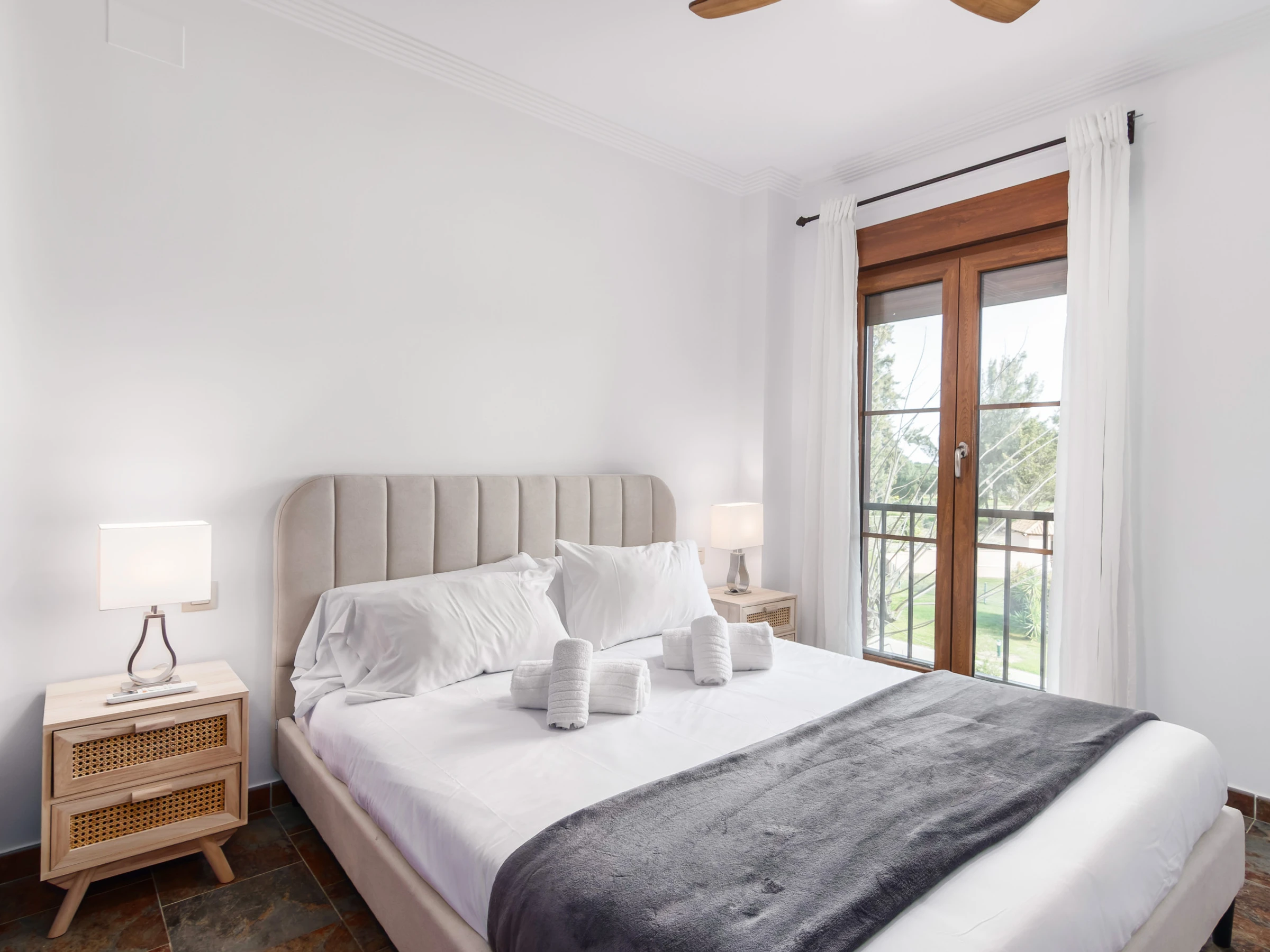 El apartamento cuenta con tres dormitorios que pueden alojar hasta 6 adultos, con una distribución versátil de camas: una cama doble, una king size, dos individuales y una cama supletoria. Todos los espacios están climatizados con aire acondicionado y calefacción de bomba de calor para garantizar tu comodidad en cualquier época del año.