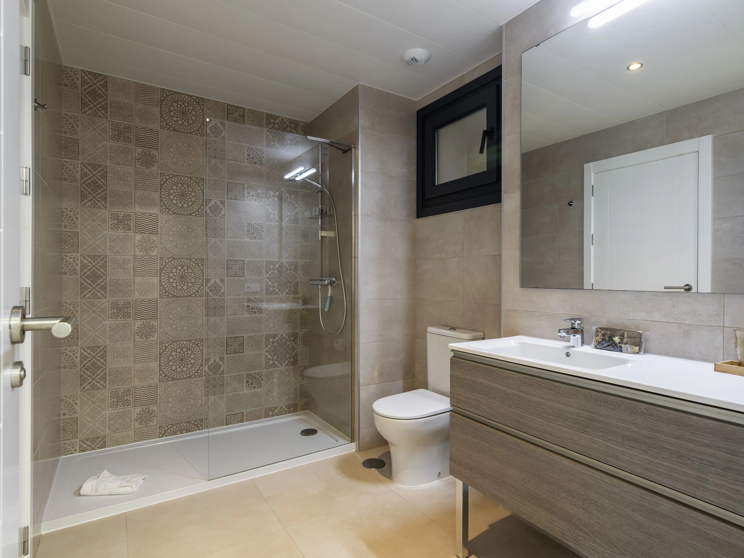 En el exterior, disfrutarás de una terraza de casi 18 metros cuadrados con muebles de jardín, ideal para momentos de descanso. El complejo ofrece además piscina compartida y áreas para niños, así como pistas de tenis y pádel para los más activos.