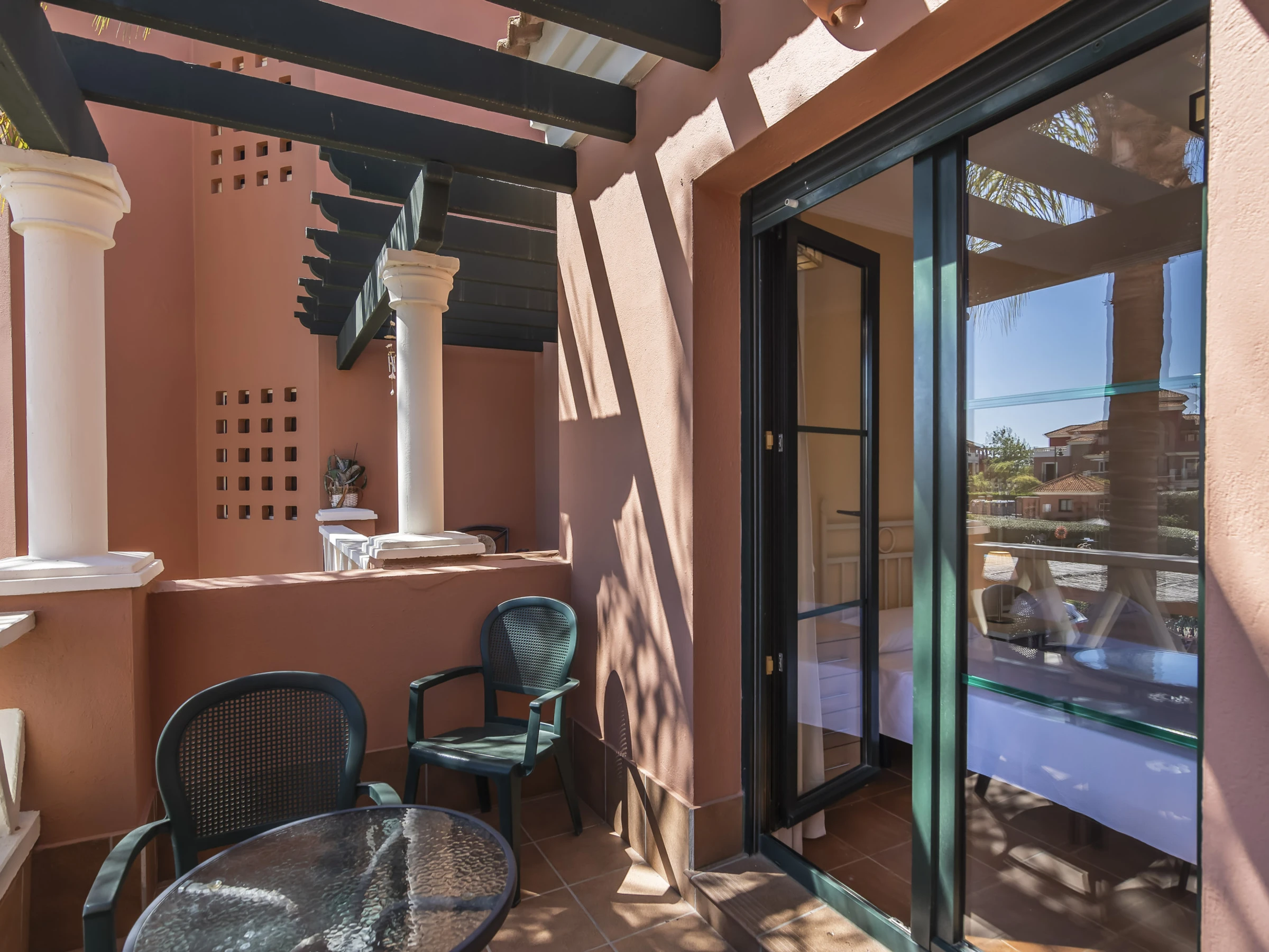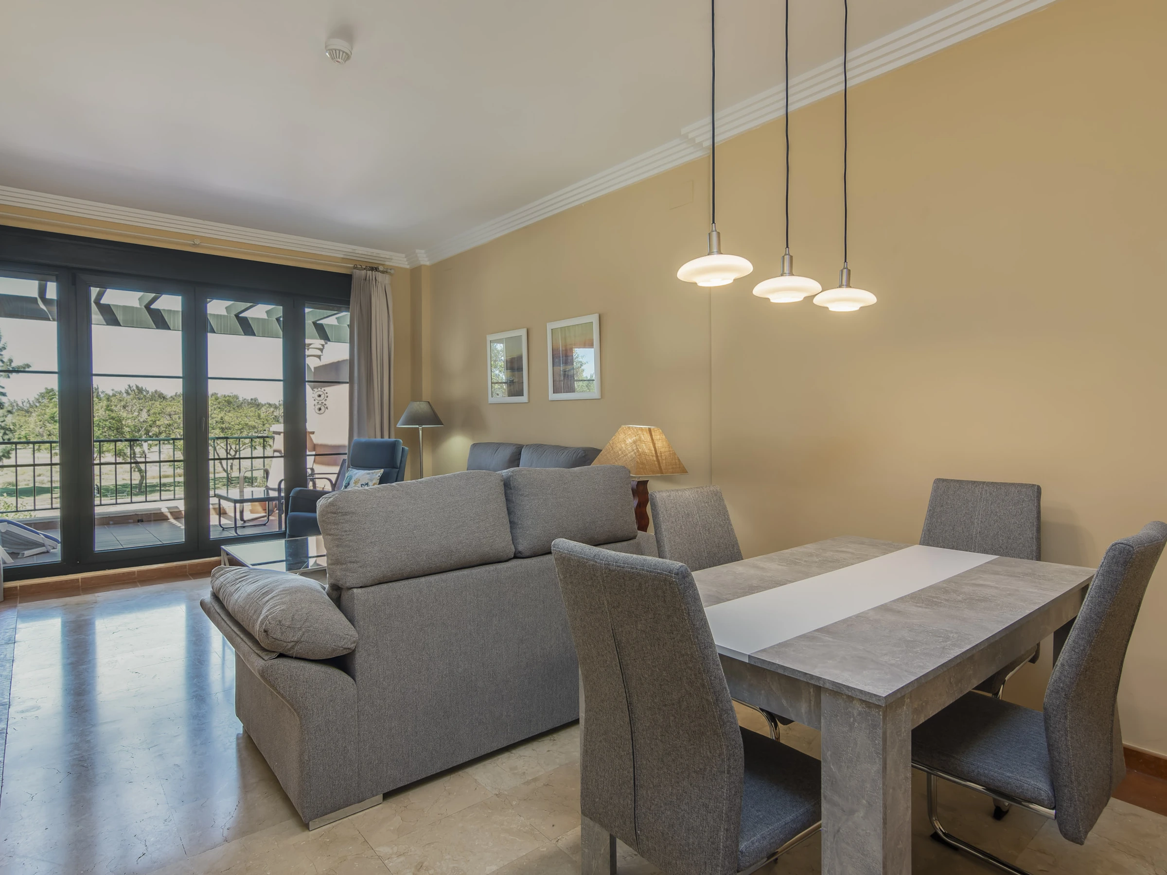 Dispone de jardín, 36 m² de terraza, lavadora, plancha, acceso internet (wifi), secador, zona infantil, pista de padel, calefacción bomba de calor, aire acondicionado en todo el alojamiento, piscina comunitaria+infantil, parking aire libre en mismo edificio, 1 Televisor.