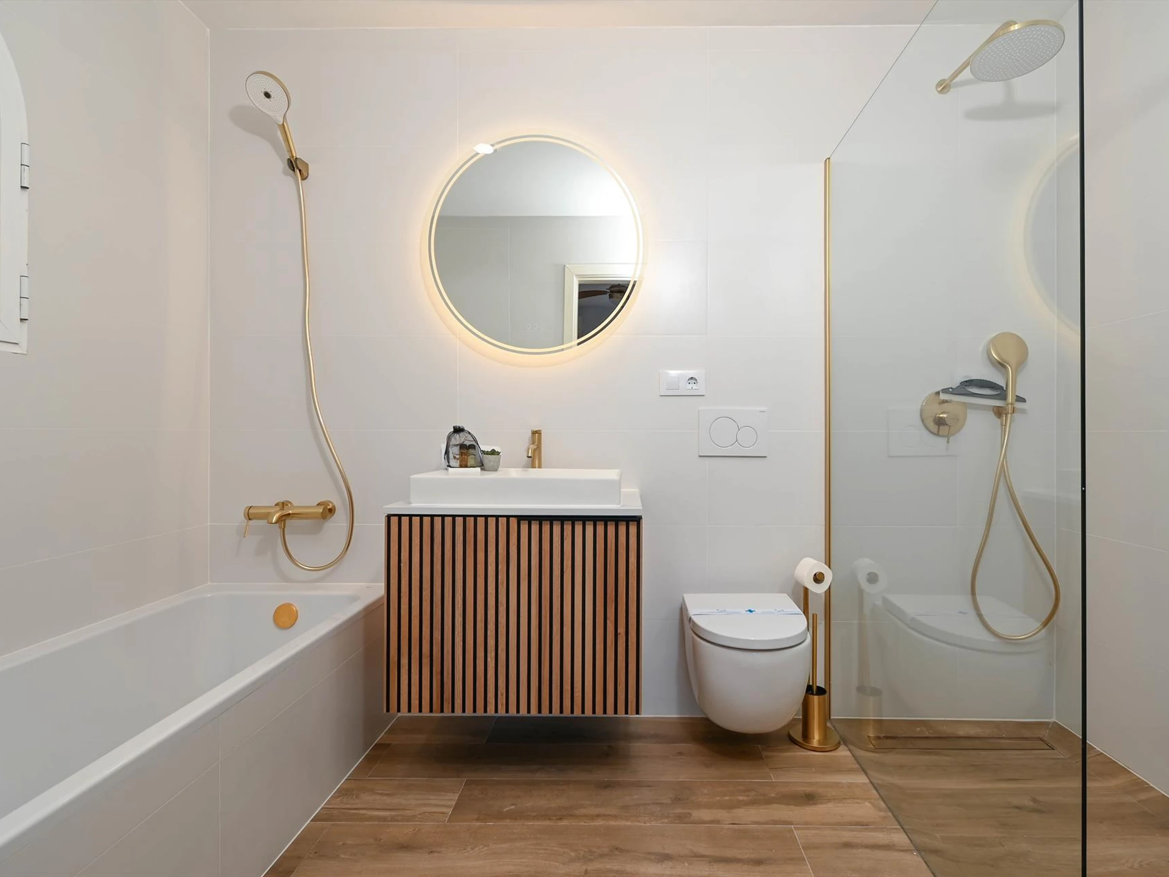 * Baño con lavabo doble, bañera/ducha, WC y secador de pelo
