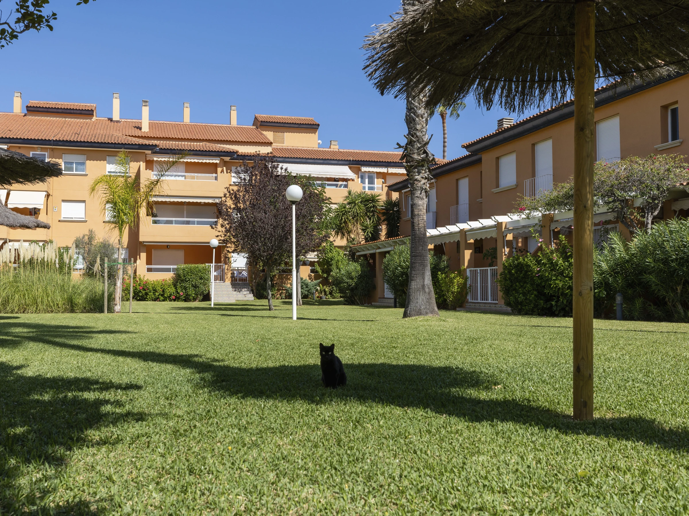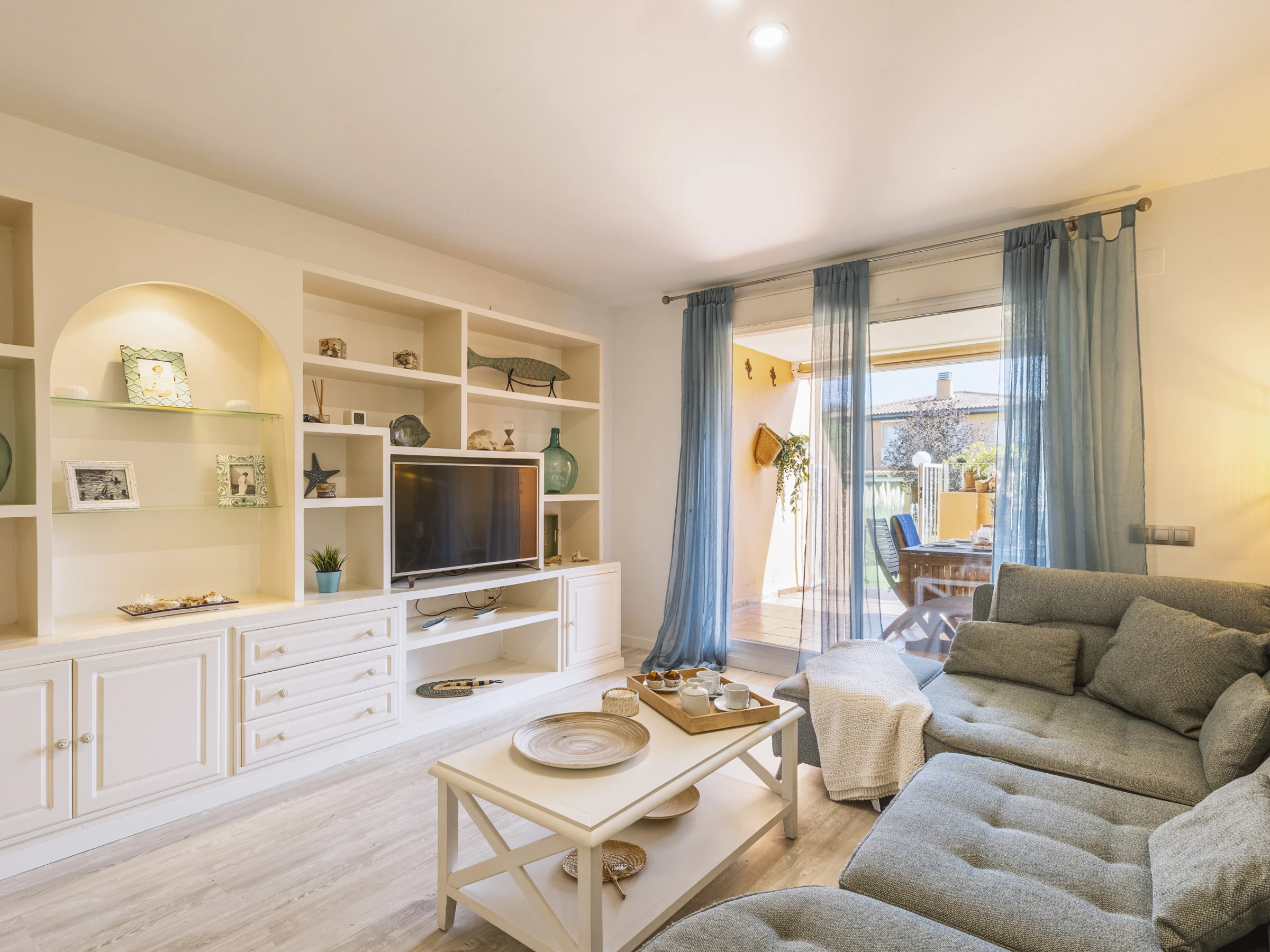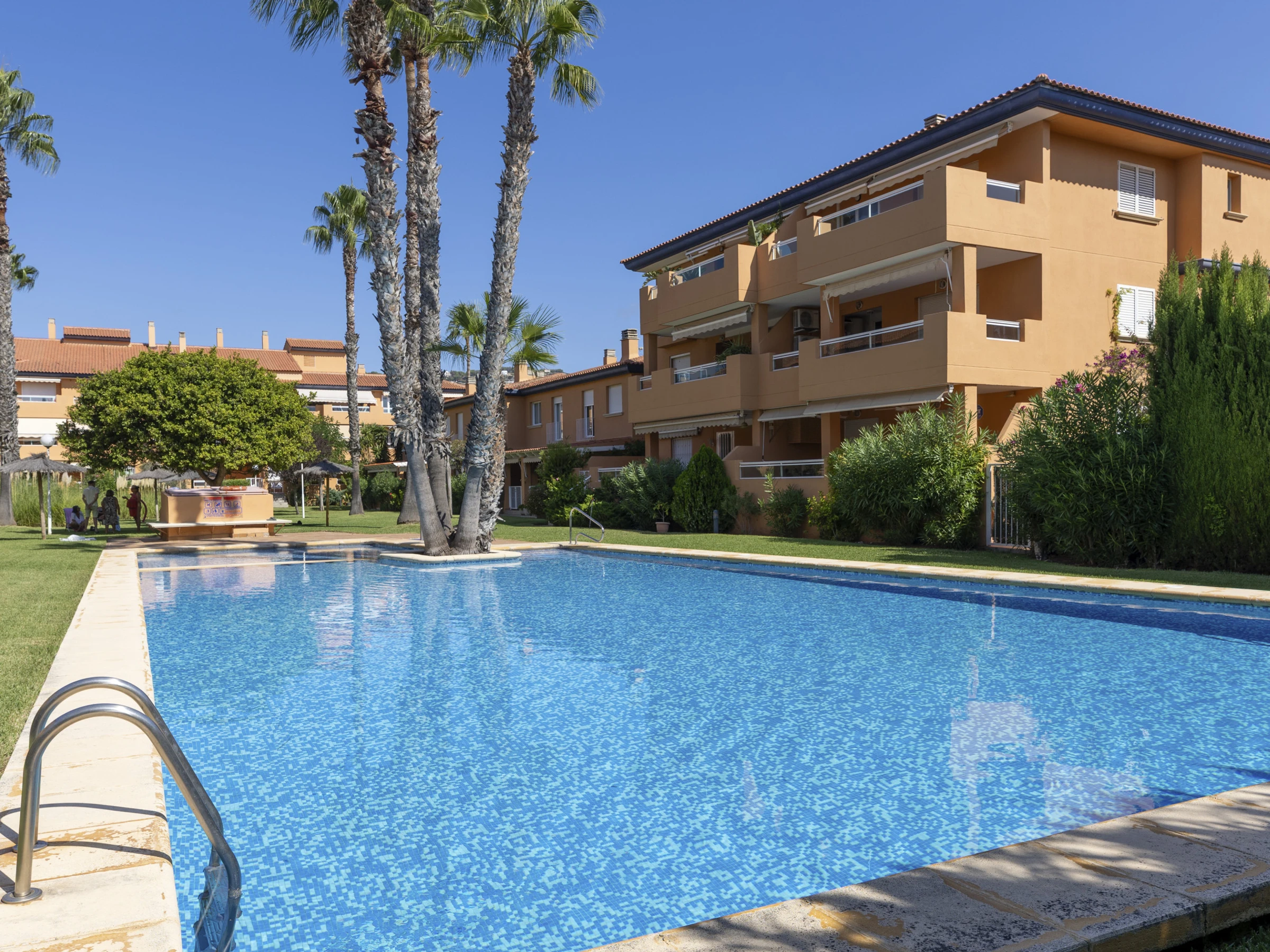 Descubre Gaia, un apartamento luminoso y elegante en la planta baja del tranquilo complejo Villas de Bolonia. Rodeado de exuberantes jardines y una piscina comunitaria reluciente (además de una piscina infantil), es el lugar perfecto para escapadas familiares o un retiro sereno.