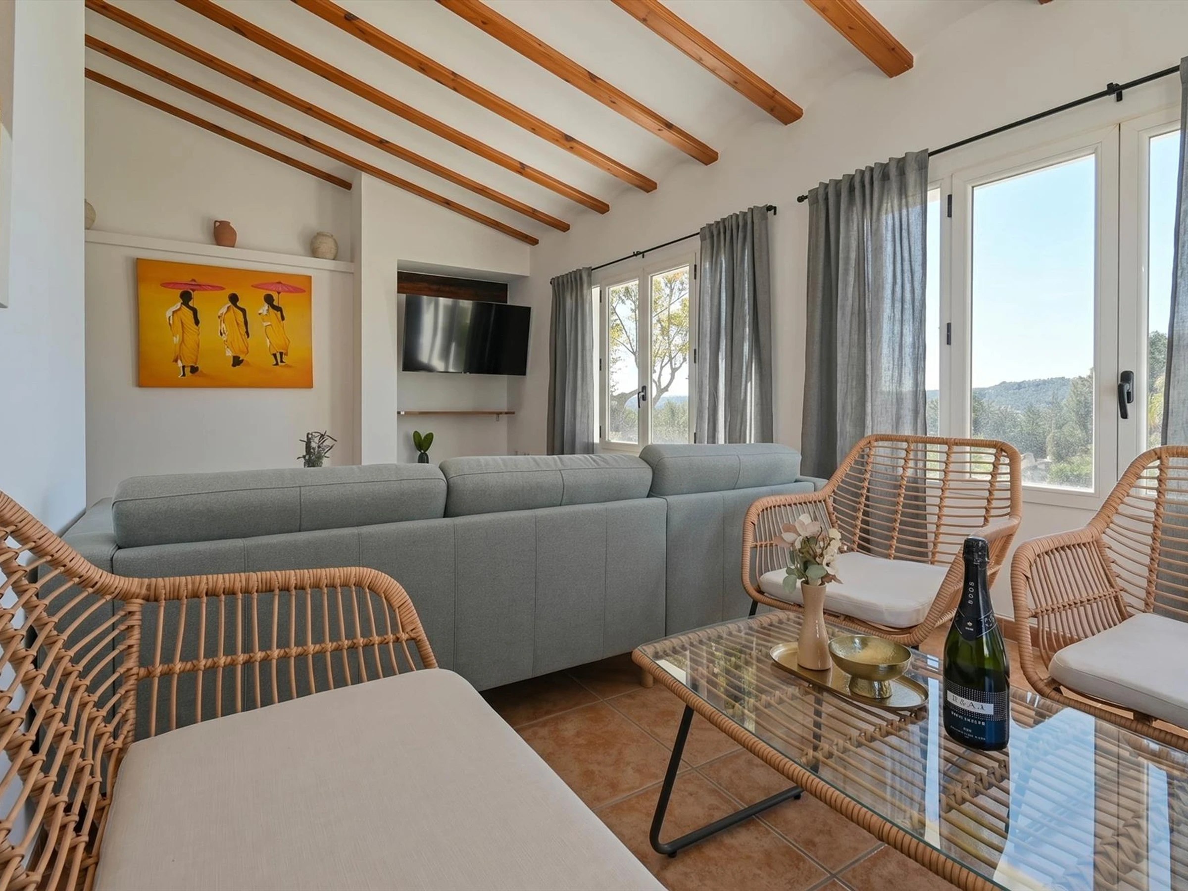 árboles, una preciosa piscina y magníficas vistas al valle. Su confort y la