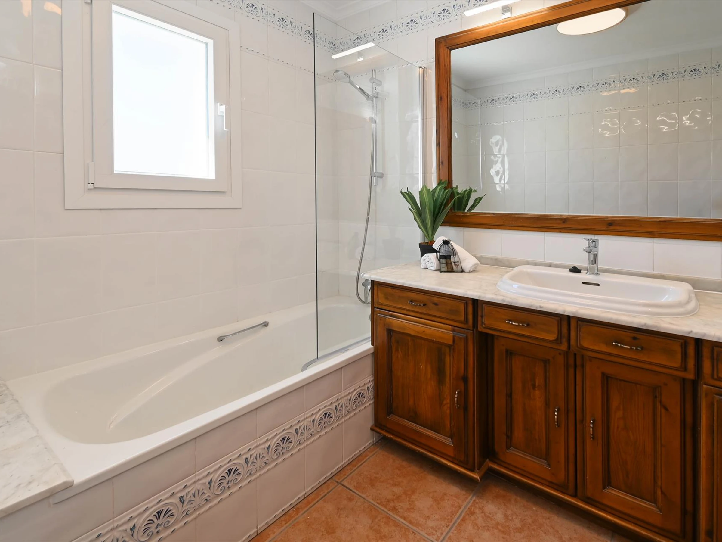 * 2 baños cada uno con lavabo individual, bañera y WC Exterior de la villa