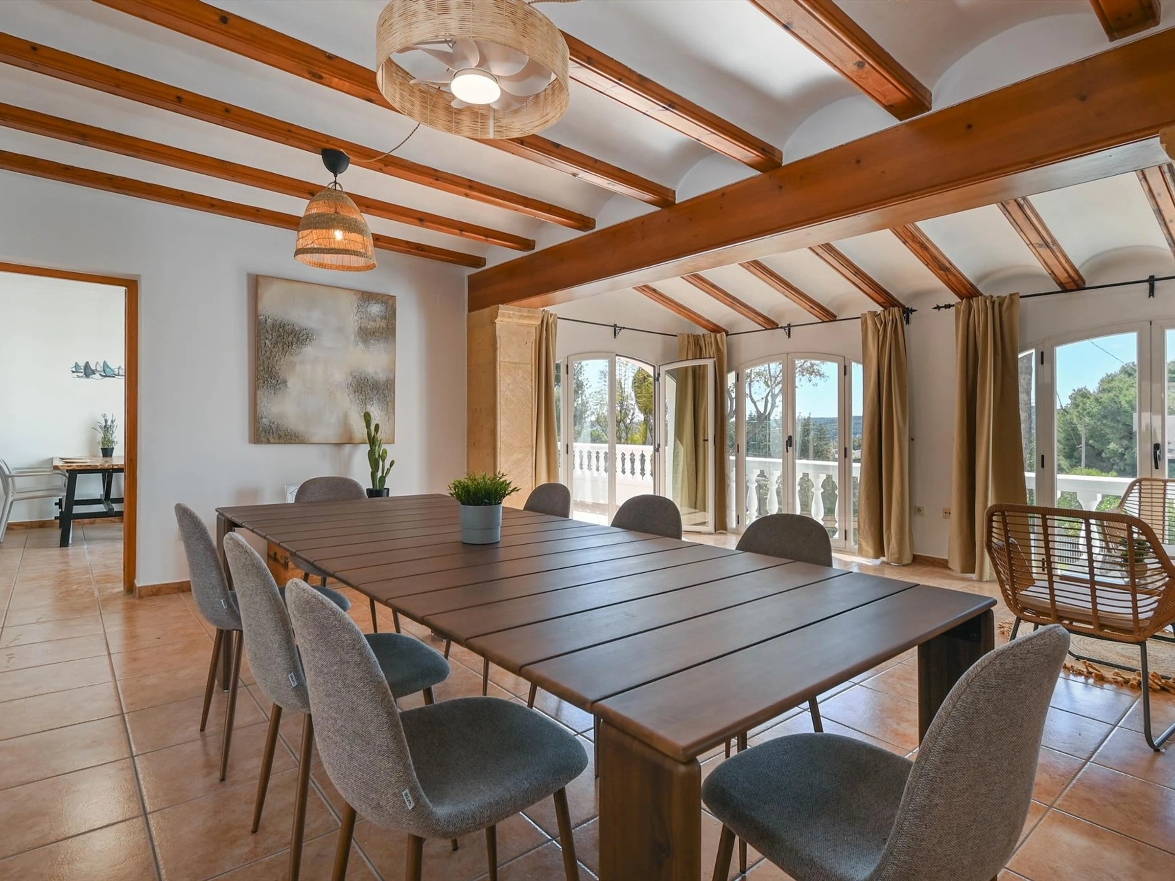 Amplia y hermosa villa en Jávea, Costa Blanca, España, con piscina privada para 10 personas. La casa está situada en una zona costera, arbolada y residencial, y cerca de restaurantes y bares. La villa cuenta con 4 dormitorios y 3 baños, distribuidos en 2 niveles.