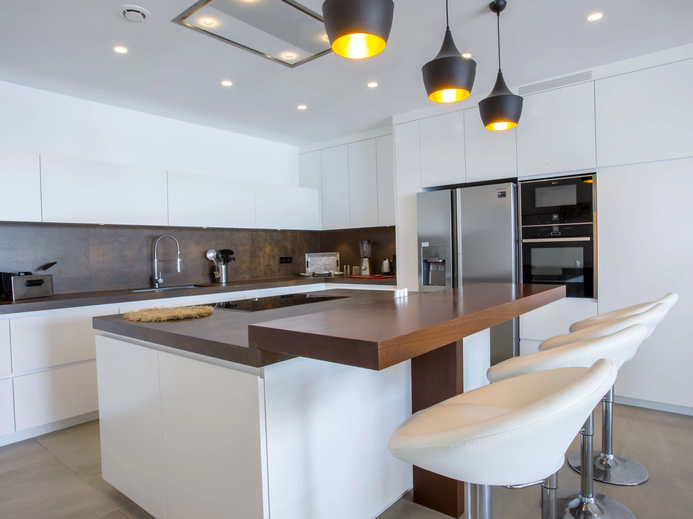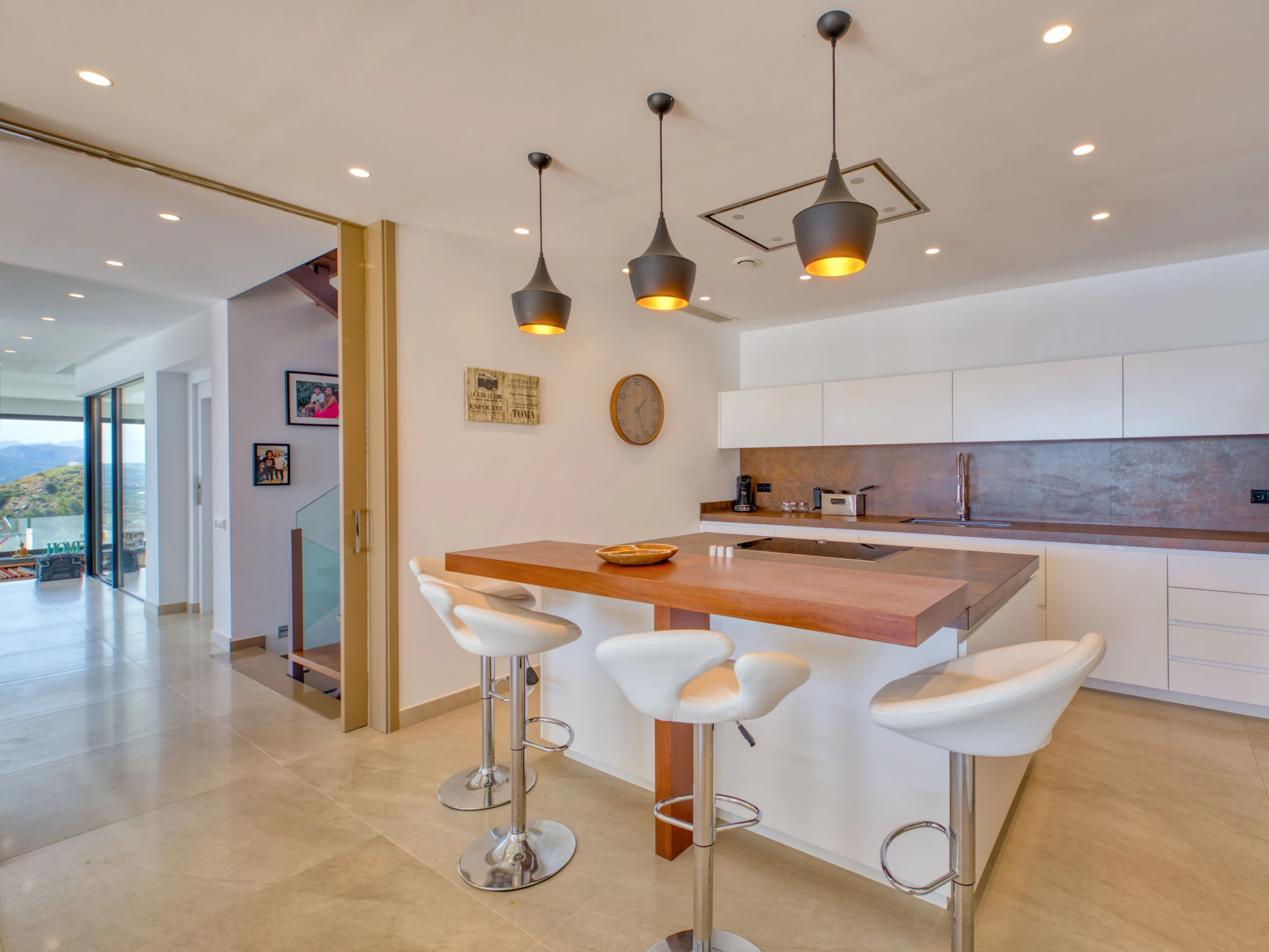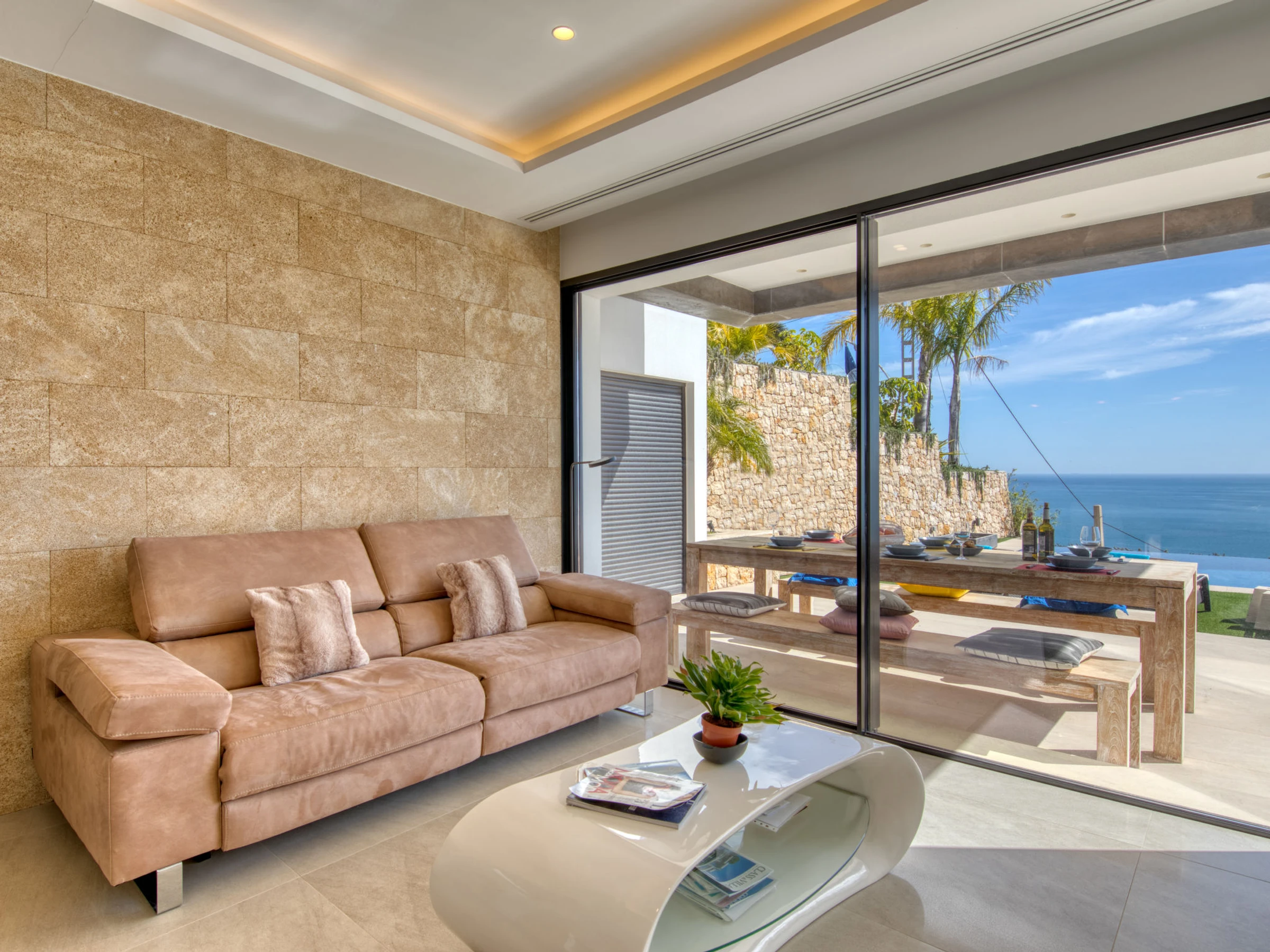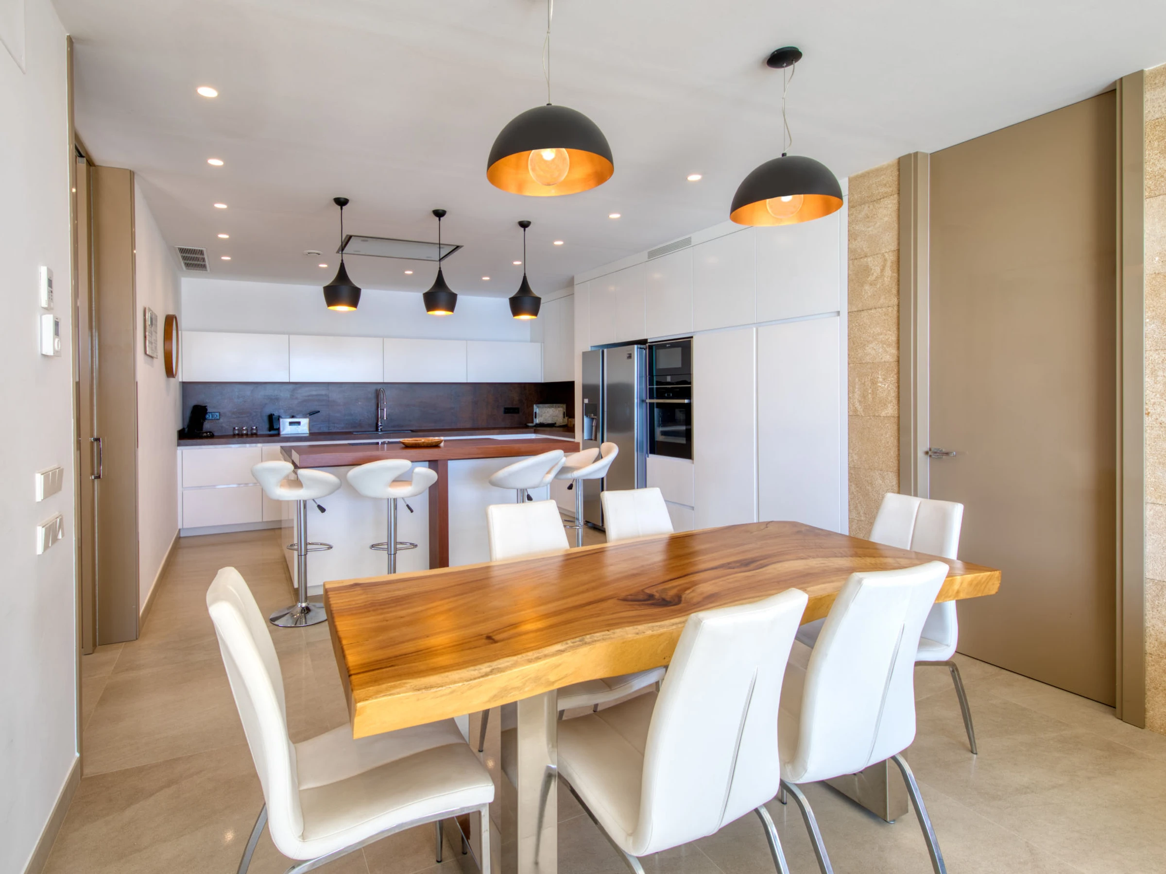 "Villa Bali Infinity", villa 7 estancias 650 m2 en 2 plantas. Espacioso y luminoso, con mobiliario muy moderno y lujoso: salón-comedor con chimenea, mesa de comedor, TV satélite y TV digital. Grande cocina (horno, lavavajillas, 4 Placas de inducción, tostadora, hervidor de agua eléctrico, microondas, congelador, cafetera eléctrica, isla de cocina). Ducha/WC. En planta inferior: 1 dorm. con 1 cama de matrimonio (160 cm, 200 cm de longitud), ducha/WC. 1 dorm. con 1 cama de matrimonio (160 cm, 200 cm de longitud), ducha/WC. Planta superior: 1 dorm. con 1 cama de matrimonio (180 cm, 200 cm de longitud), ducha/WC. 1 dorm. con 1 cama de matrimonio (160 cm, 200 cm de longitud), ducha/WC. 1 dorm. con 1 cama de matrimonio (160 cm, 200 cm de longitud), ducha/WC. Terraza grande. Muebles de terraza, barbacoa, tumbonas (3). Vista panorámica espléndida al mar y a la localidad. El alojamiento dispone de: lavadora, secadora, plancha, secador de pelo. Internet (Wifi, gratis). Junto a la casa. En la planta inferior hay ademas un gimnasio con bañera de hidromasaje y WC. Garaje para 3 coches. [hidden] // Reg. Nr.: ESFCTU0000030710009718020000000000000CV-VUT0484887-A6