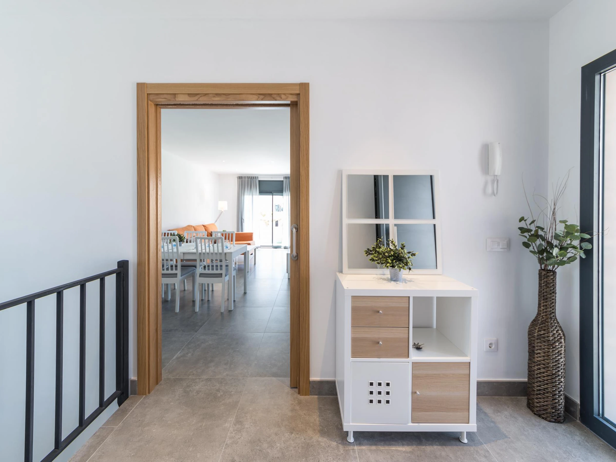 La casa consta de dos niveles. En el primer nivel se encuentra la cocina, muy moderna y bien equipada, la acogedora sala de estar y comedor, una habitación doble en suite, una segunda habitación doble, y un baño con ducha.