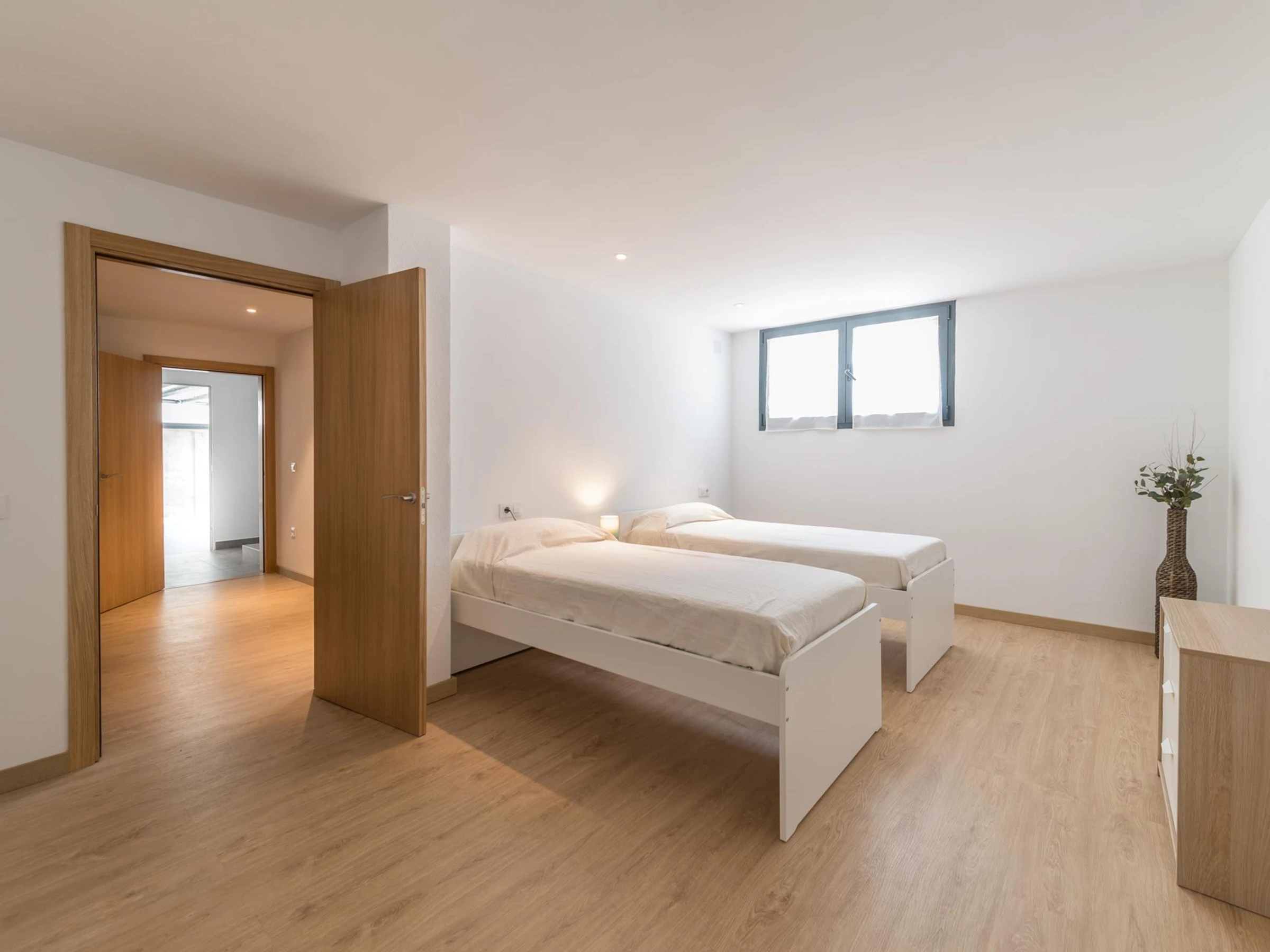 En total en la casa se pueden alojar 8 personas: en 3 camas dobles, y 2 camas individuales.