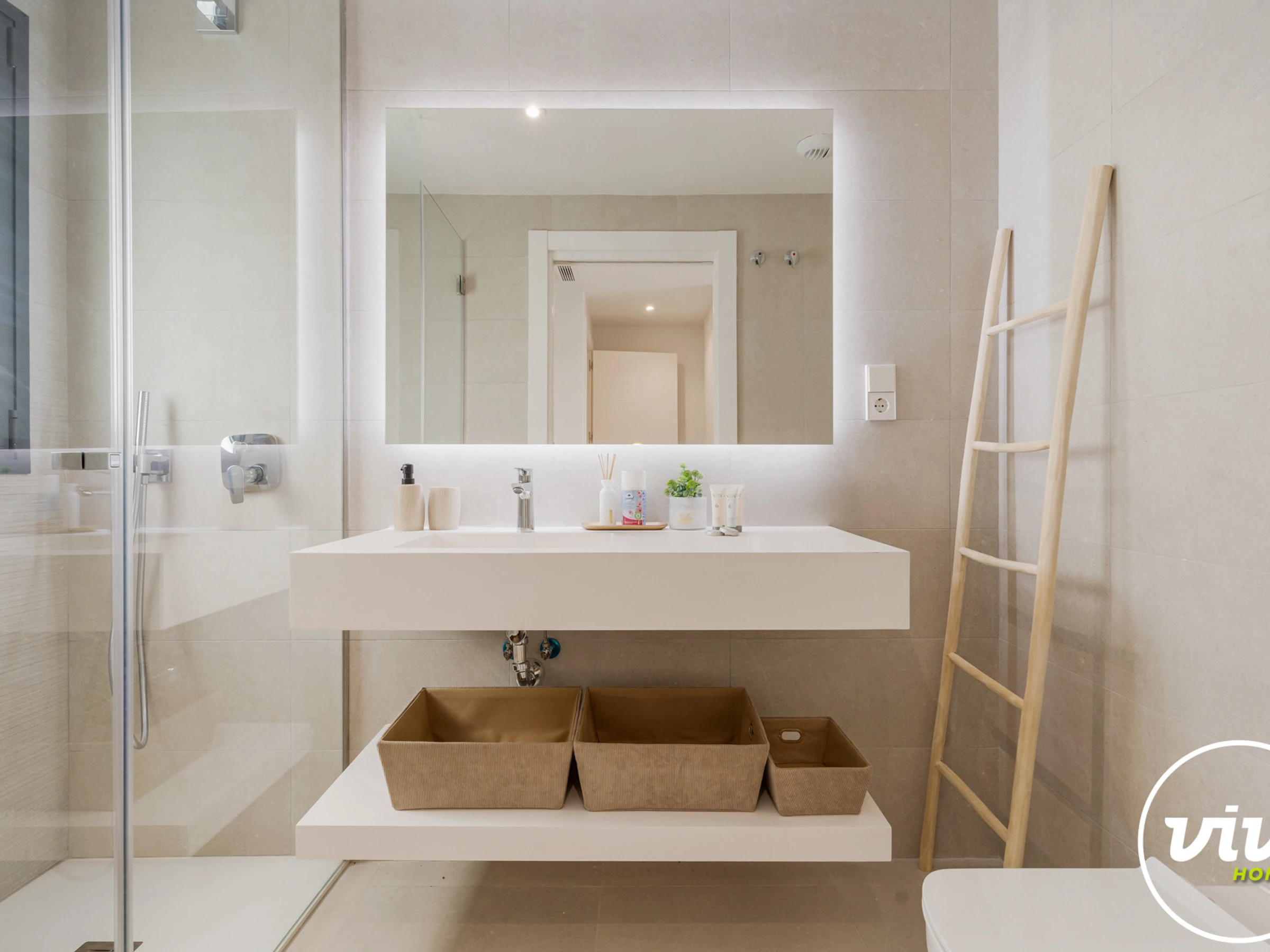 En el interior, encontrarás un diseño limpio y moderno con todo lo que necesitas para sentirte como en casa. La cocina abierta está completamente equipada, ya sea que estés preparando un desayuno rápido o compartiendo un almuerzo largo en la terraza. El espacio exterior privado es perfecto para el café de la mañana, copas por la tarde o incluso una barbacoa.
