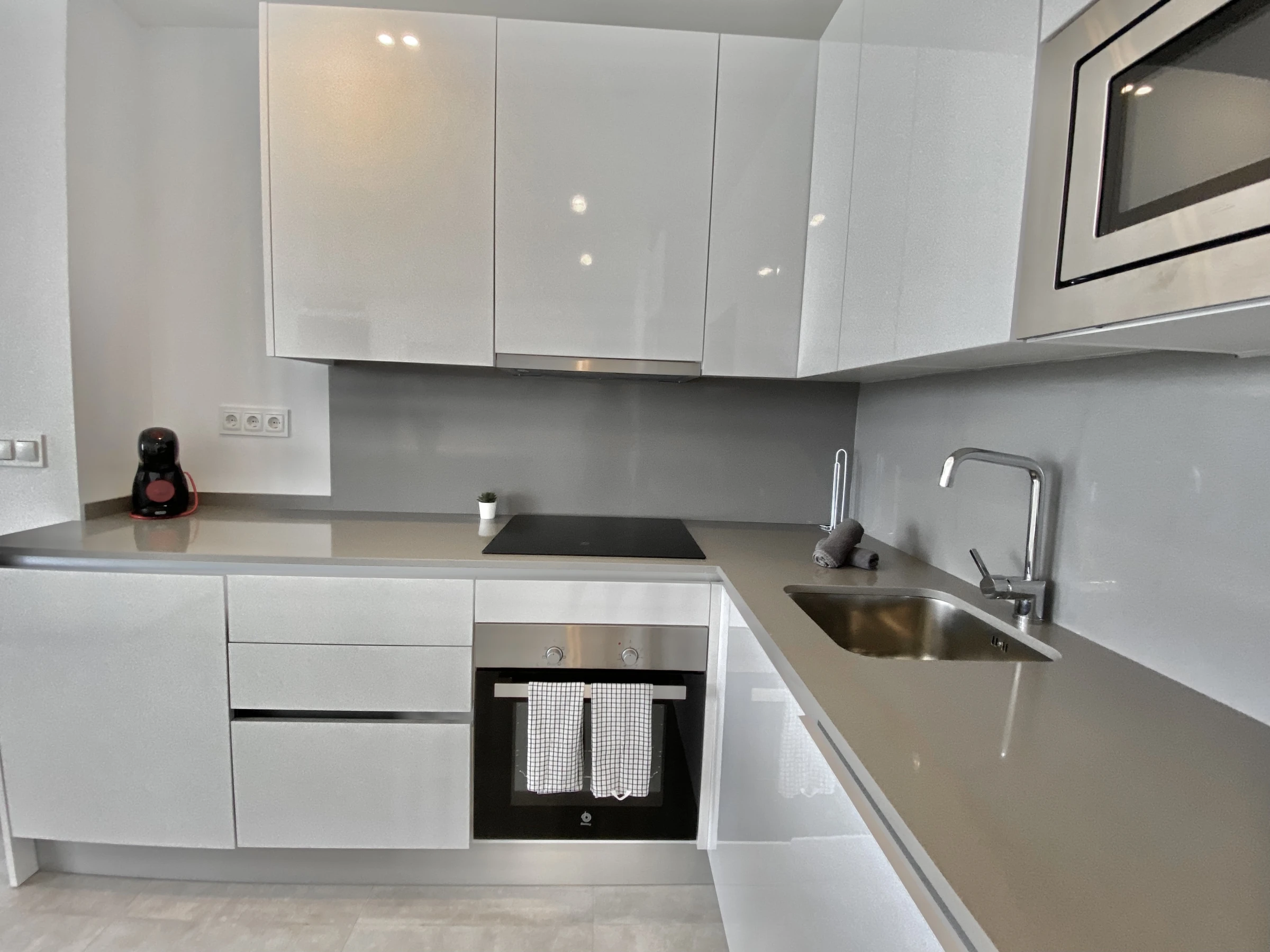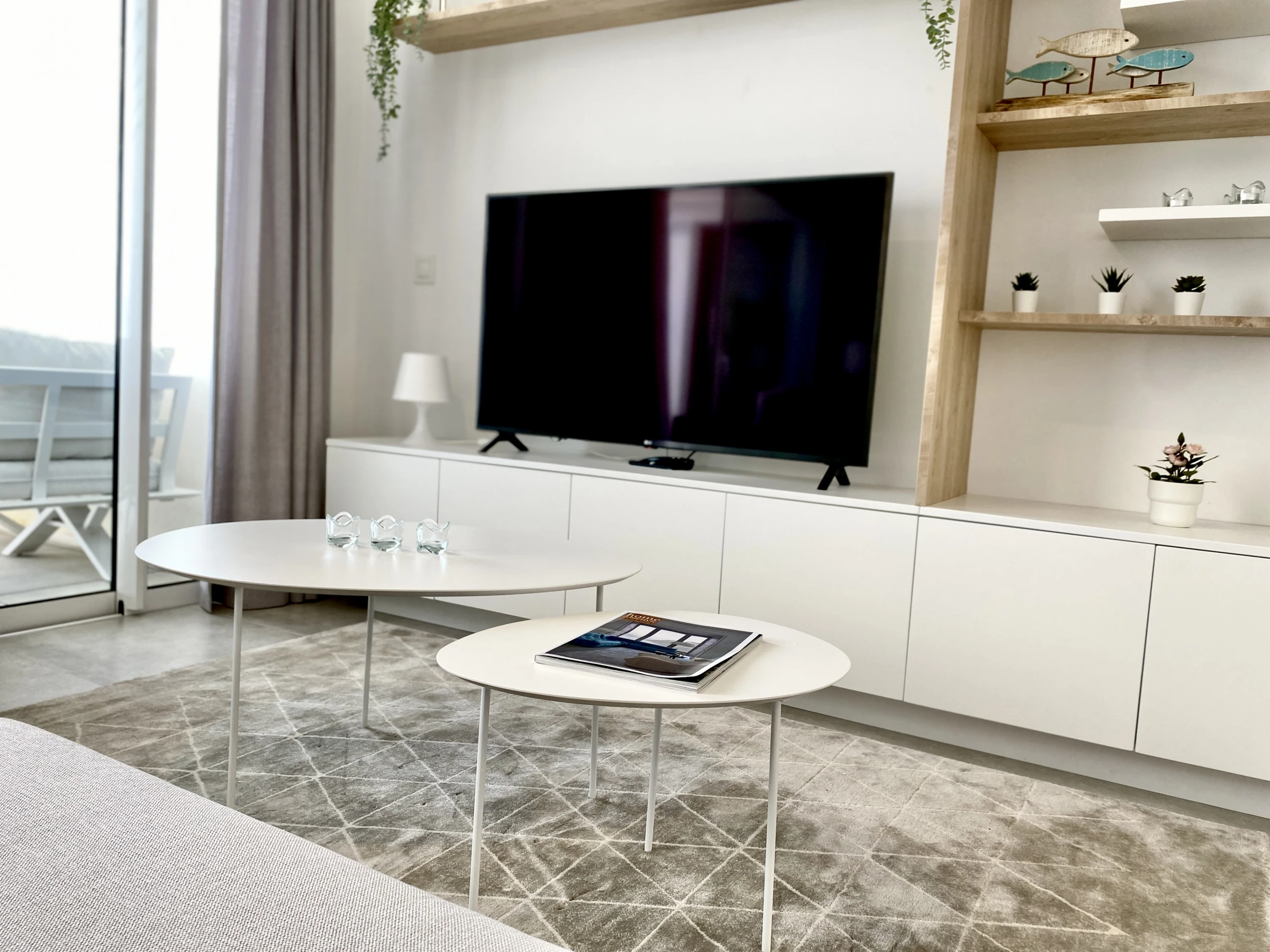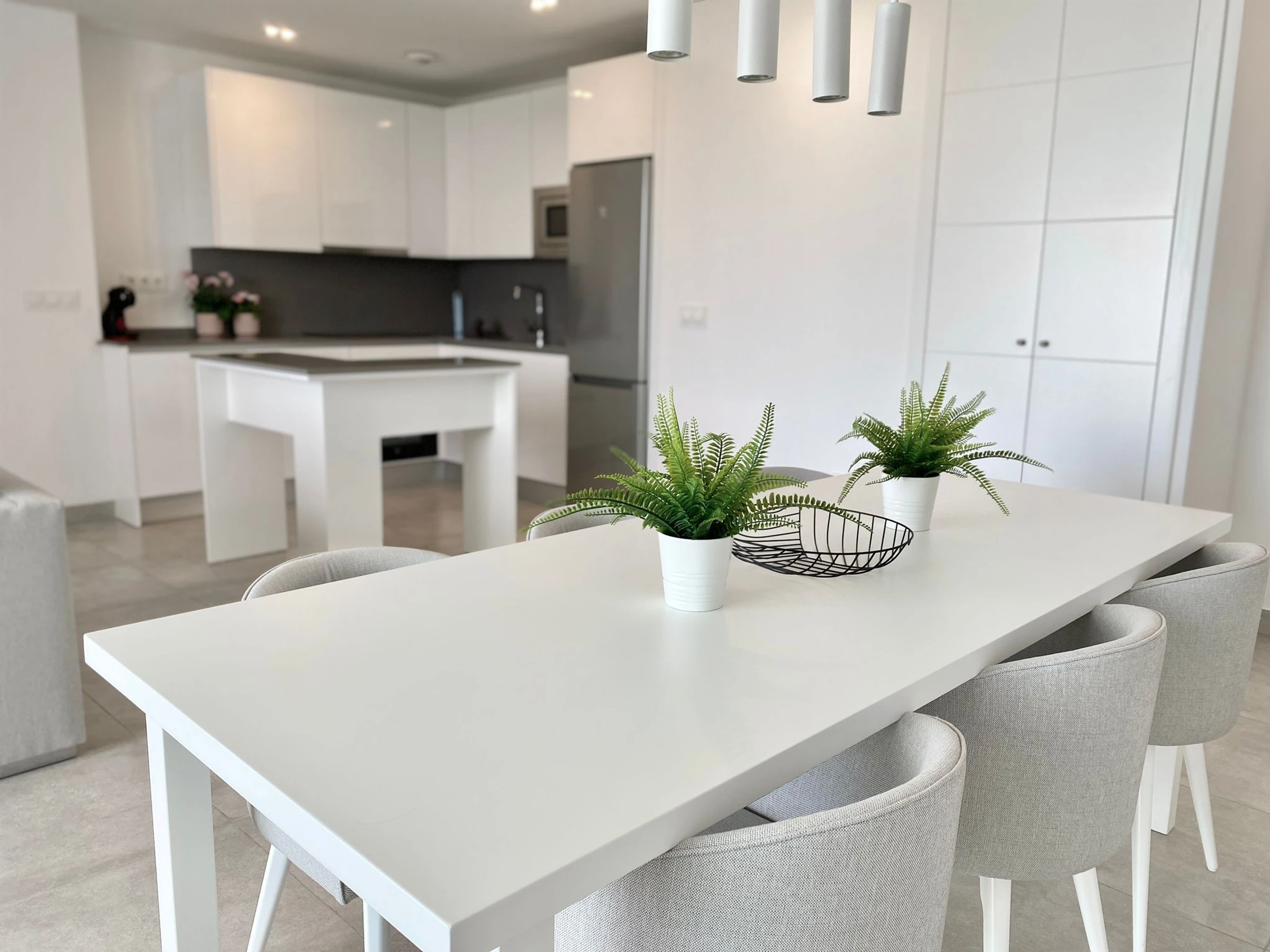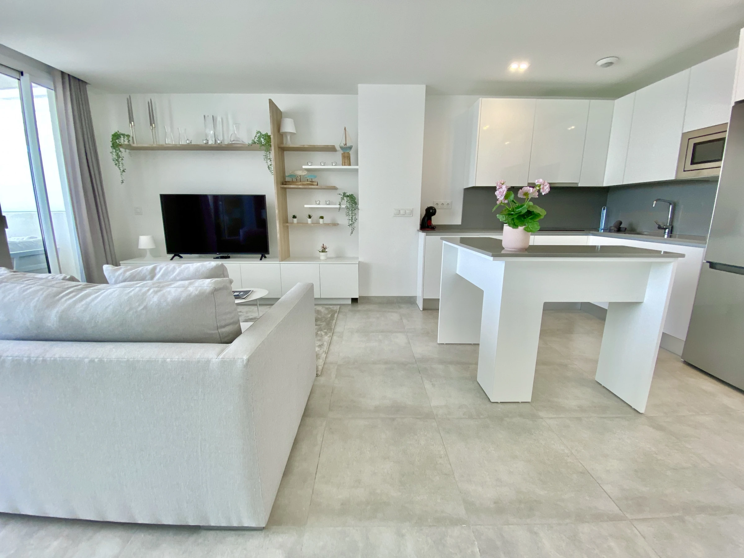 La sala de estar abierta da acceso directo a la terraza que ofrece una agradable sala de estar para relajarse y un comedor, con vistas a la Sierra de Mijas y al mar. También dispondrás de una segunda terraza soleada con dos tumbonas para trabajar tranquilamente en tu bronceado.