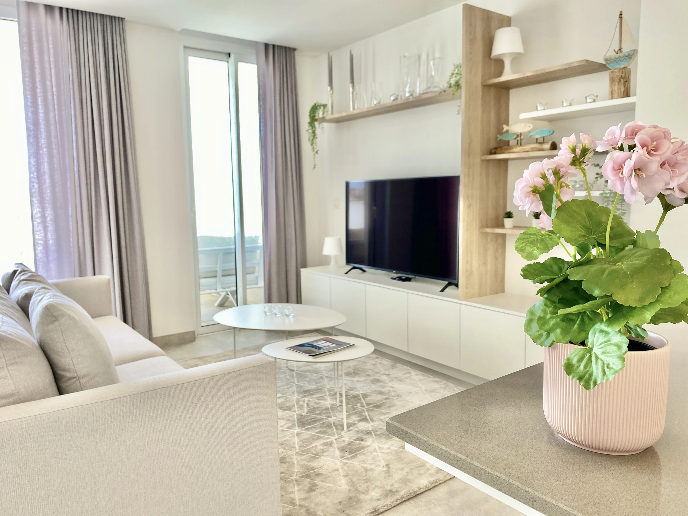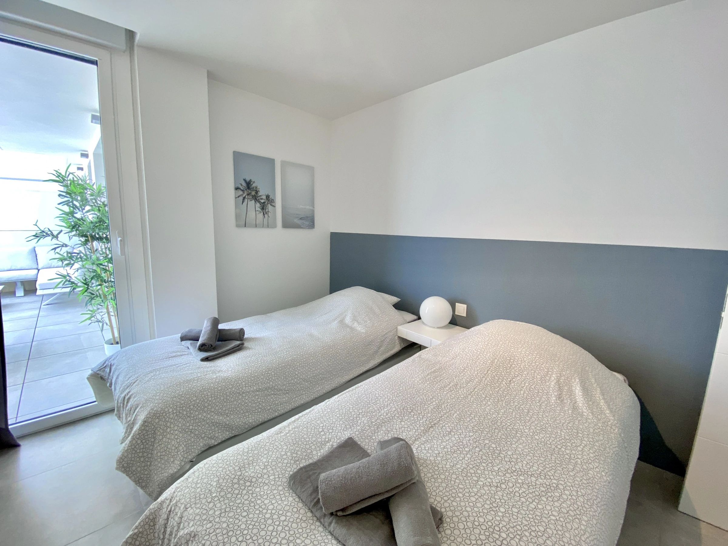 El apartamento es moderno y refinado, ofrece 2 baños y 3 dormitorios, incluida una hermosa suite principal con vestidor y baño en suite. La residencia es de nueva construcción.