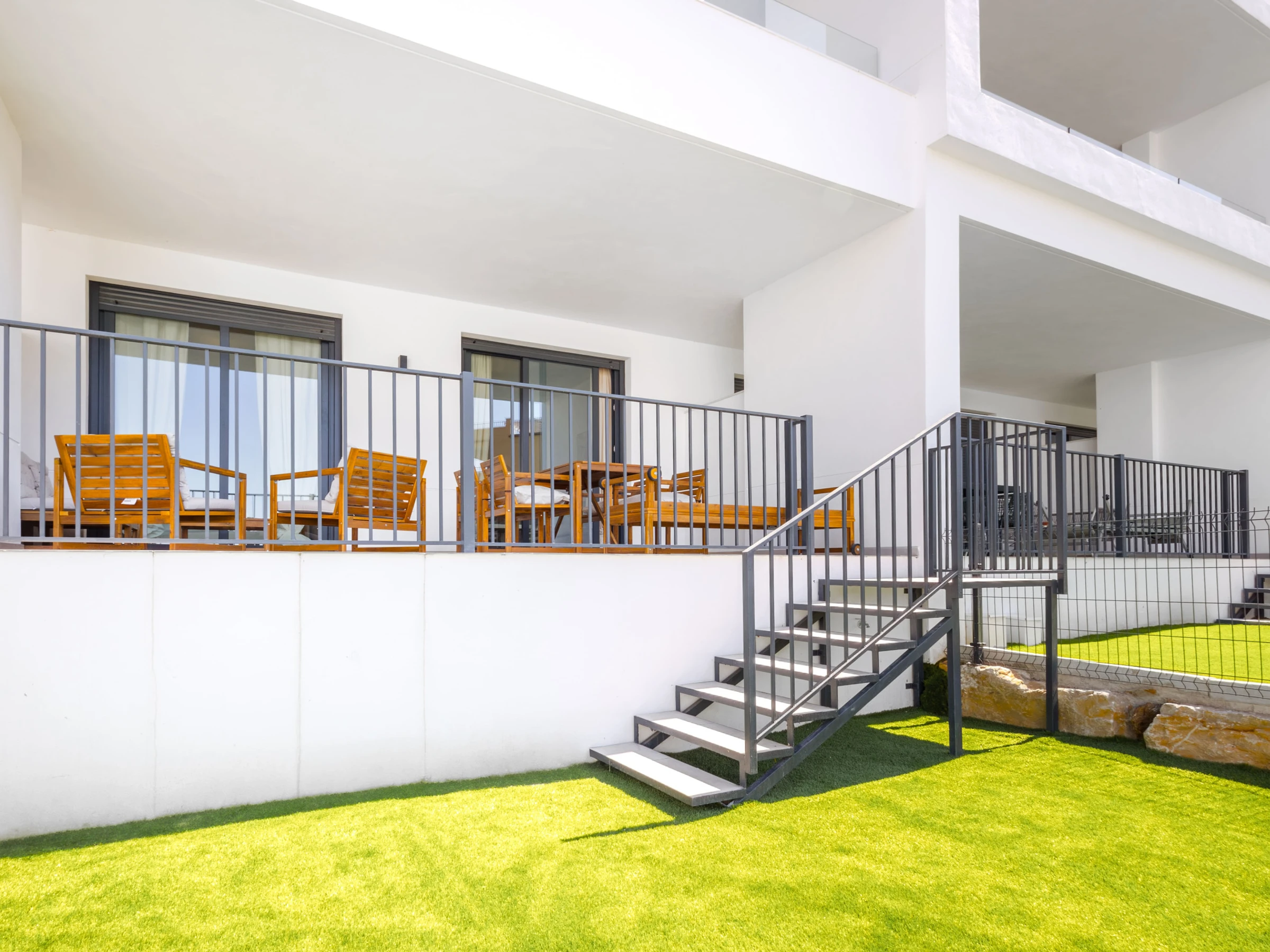 El amplio salón se abre a una gran terraza privada, con una zona de comedor y un acogedor conjunto de salón: el lugar perfecto para relajarse después de un día explorando la Costa del Sol. Desde la terraza, una escalera conduce a un hermoso jardín donde podrá disfrutar del entorno tranquilo.