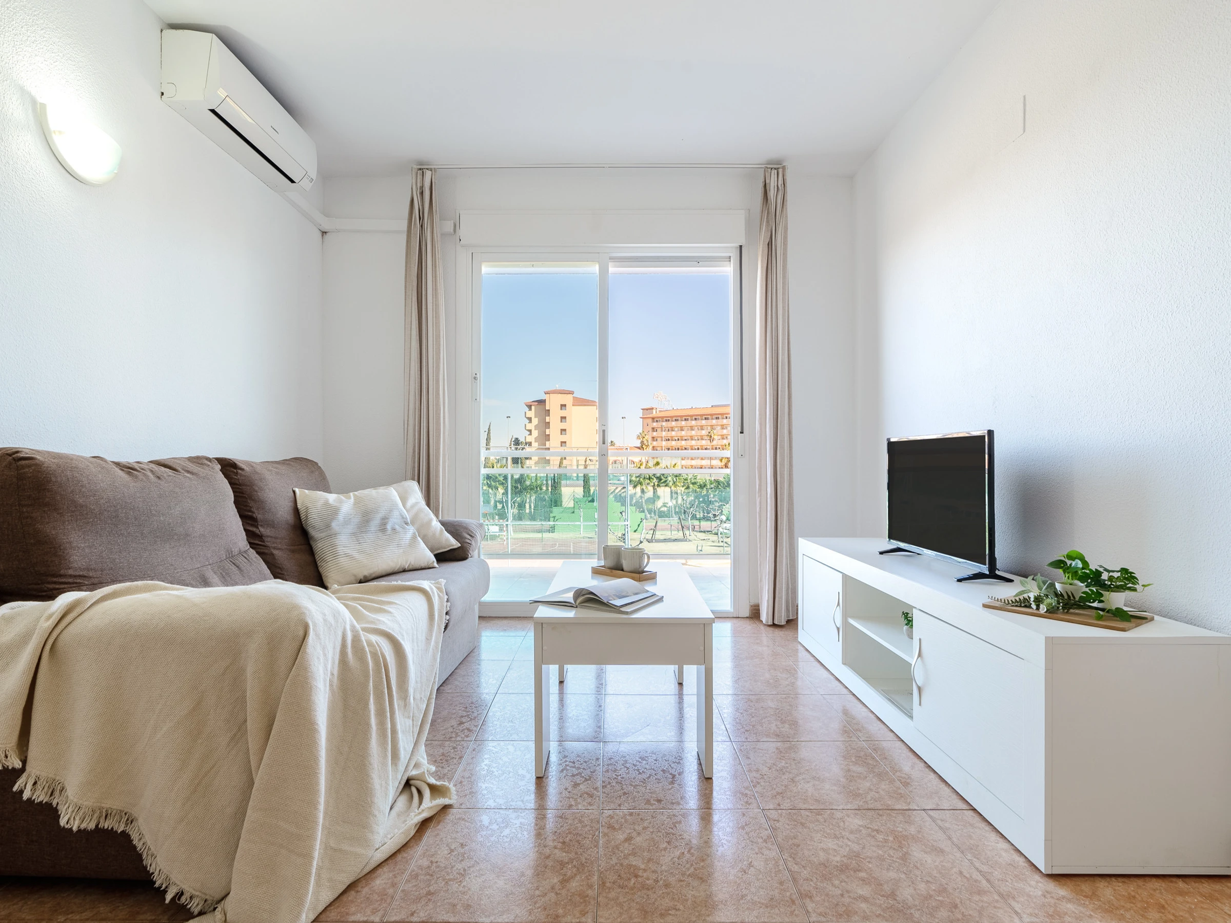 El complejo Los Juncos tiene una ubicación excepcional. A 5 minutos andando de la Playa dels Prats y de la playa principal de La Pineda, centro neurálgico de todas las actividades que se llevan a cabo durante el verano.