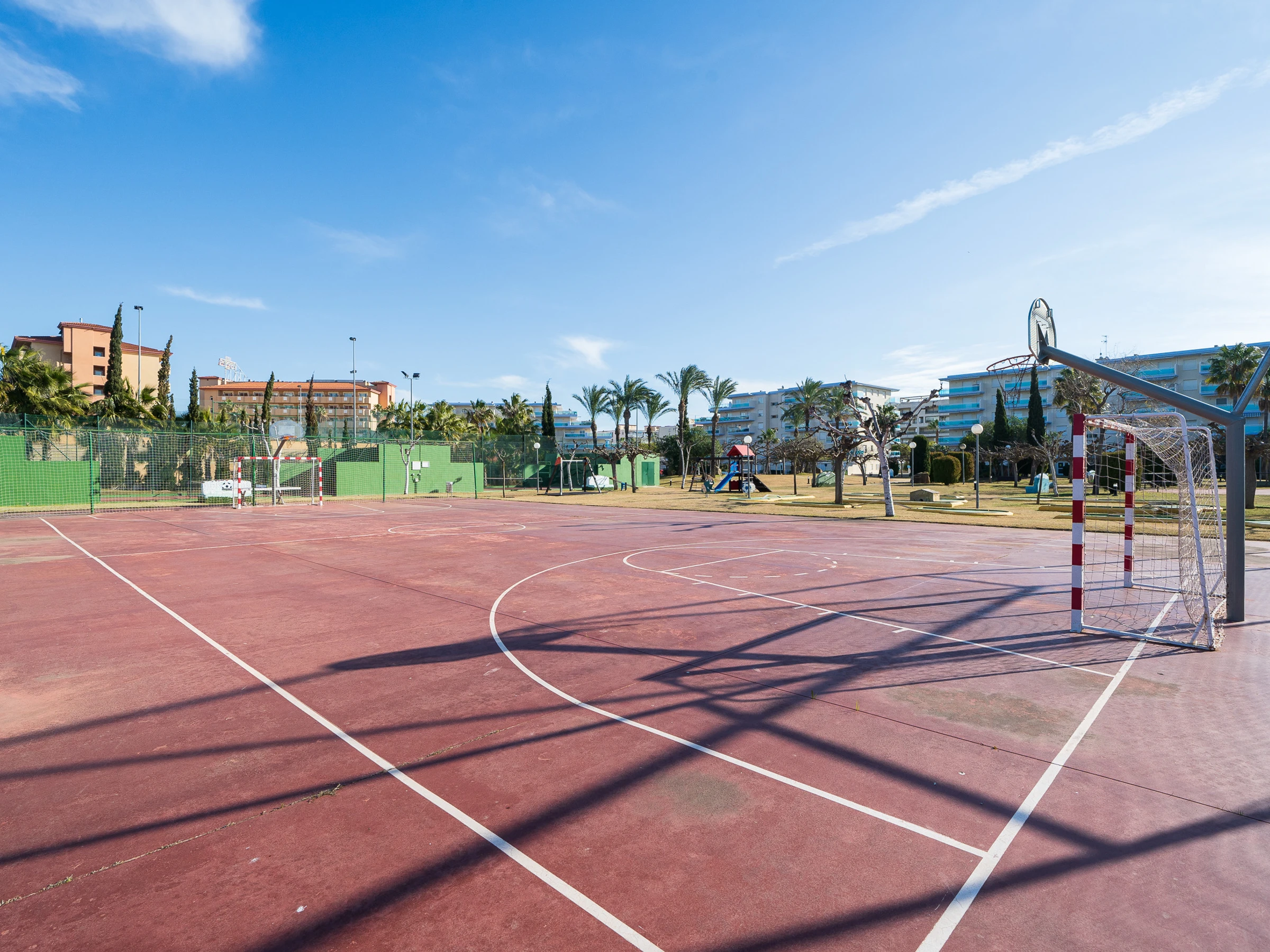 📍Junto a la Playa dels Prats, hay un enorme parque infantil con tirolinas. Se conoce por los lugareños como el pantalán, y cuenta con pistas de fútbol, vóley-playa e instalaciones deportivas.