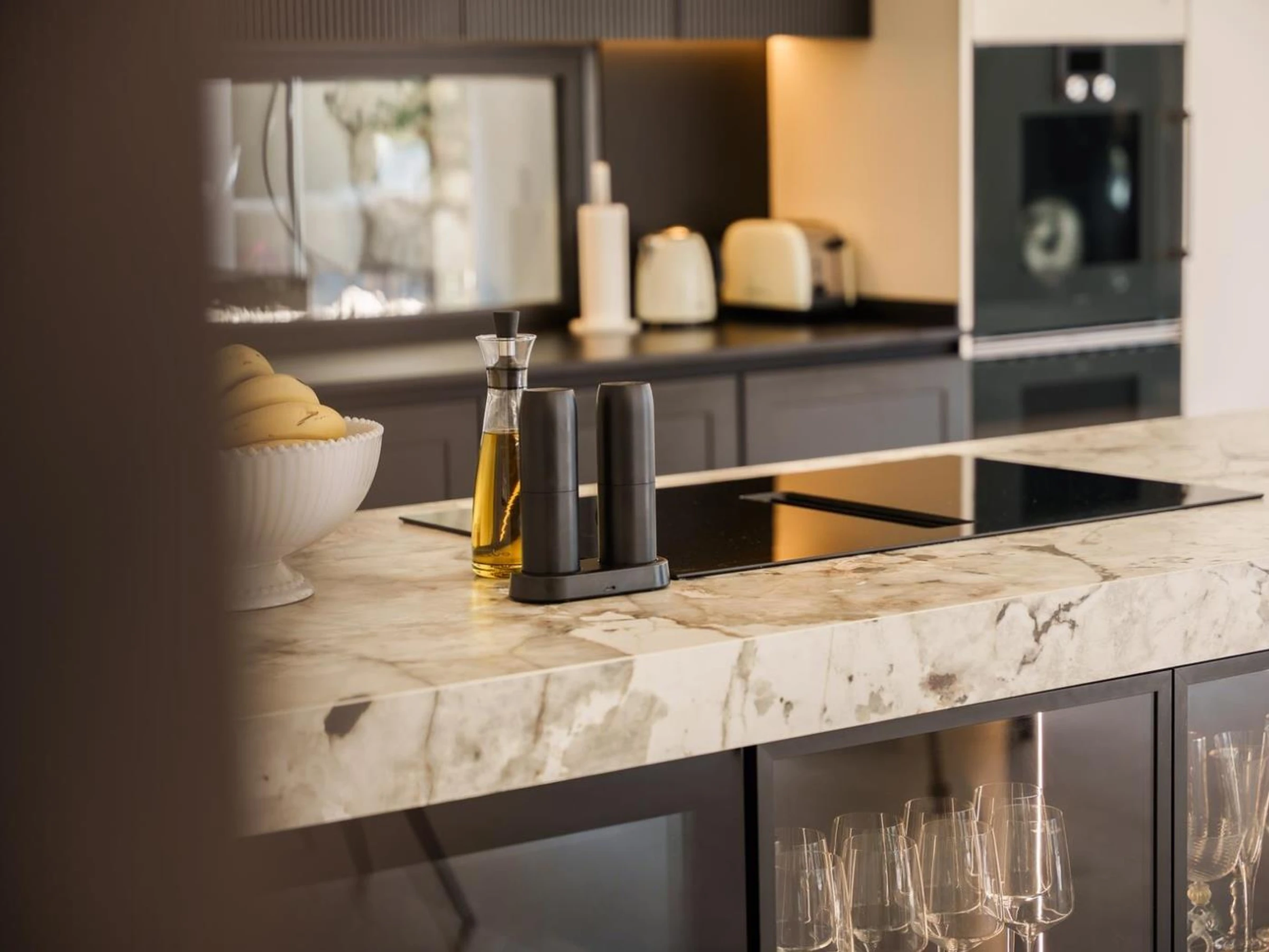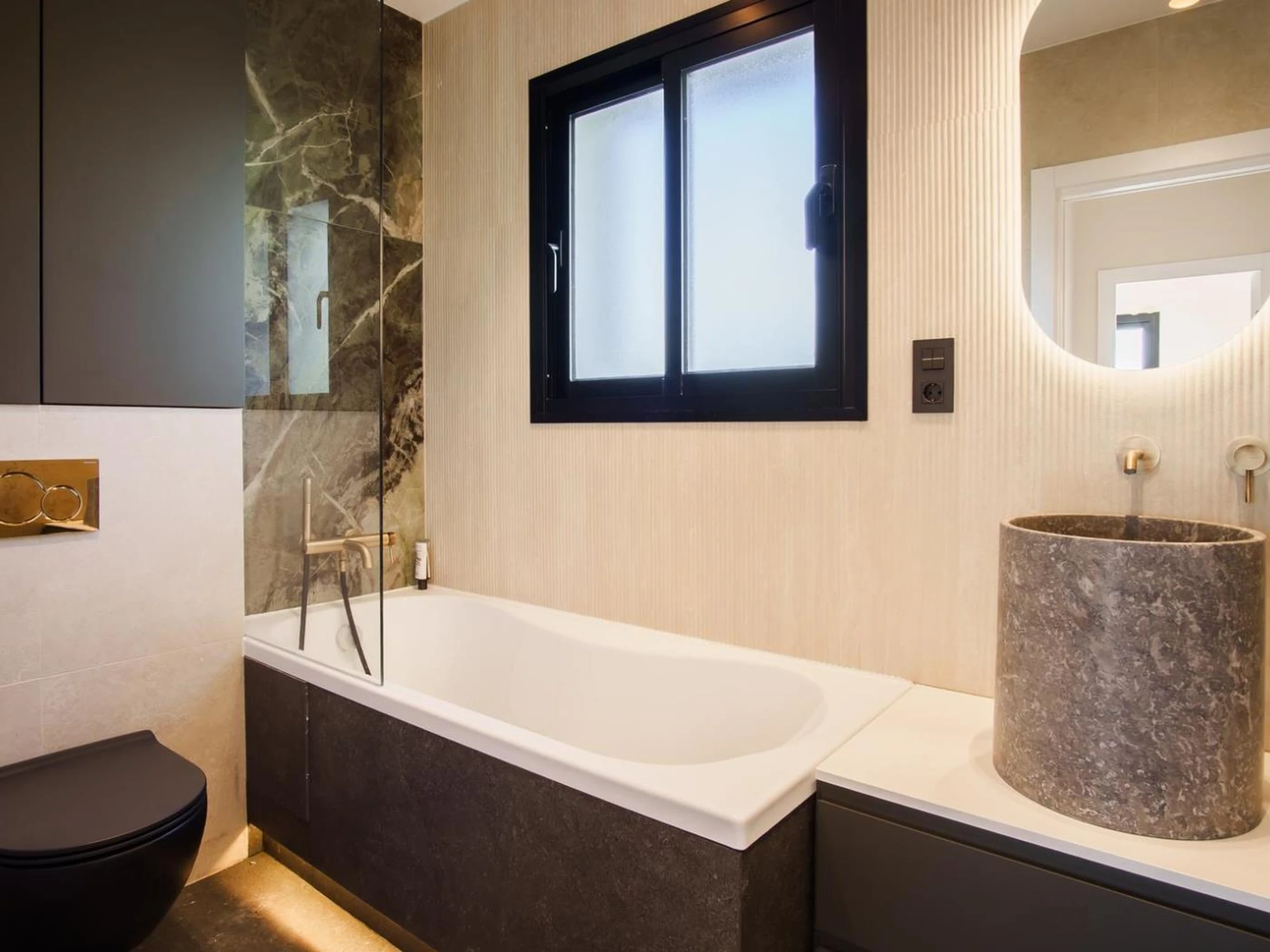 Living & Design•Open-plan living space with bioethanol fireplace•Designer marble kitchen with central island•Smart home system (domótica) throughout•High-speed WiFi, workspace with screen & printer•Premium sound system & PlayStation 5