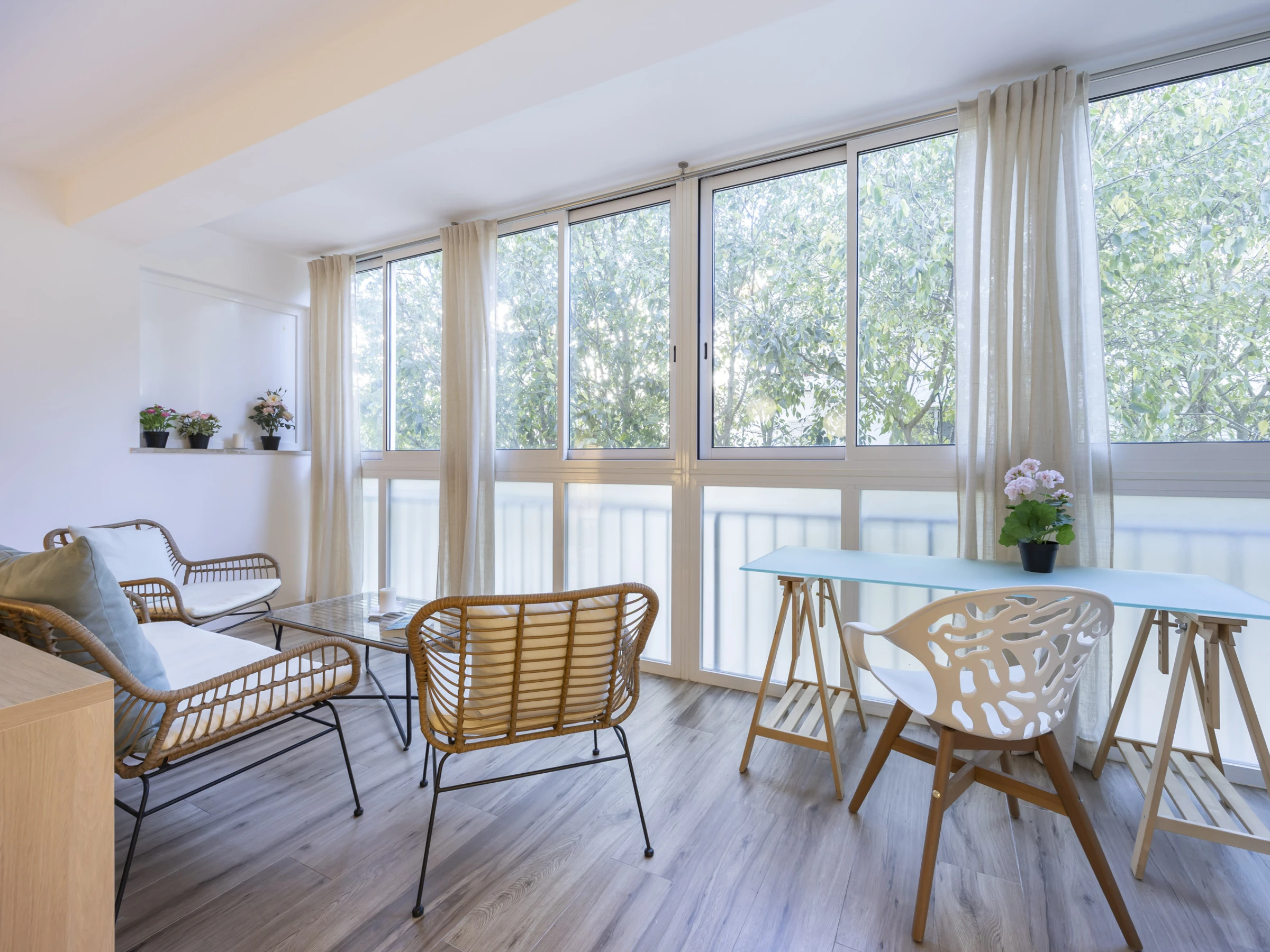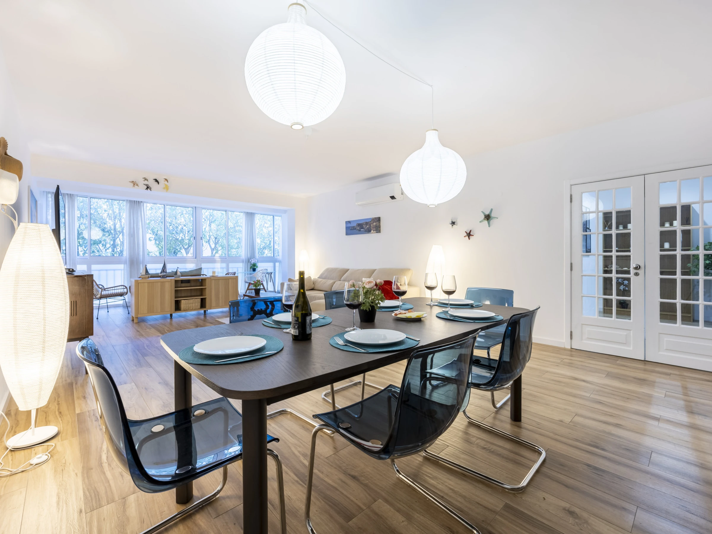 Dispone de ascensor, lavadora, plancha, acceso internet (wifi), secador, balcón, calefacción bomba de calor, aire acondicionado, parking aire libre en edificio cercano, 1 Televisor, tv satelite (Idiomas: Español, Inglés, Alemán, Francés).