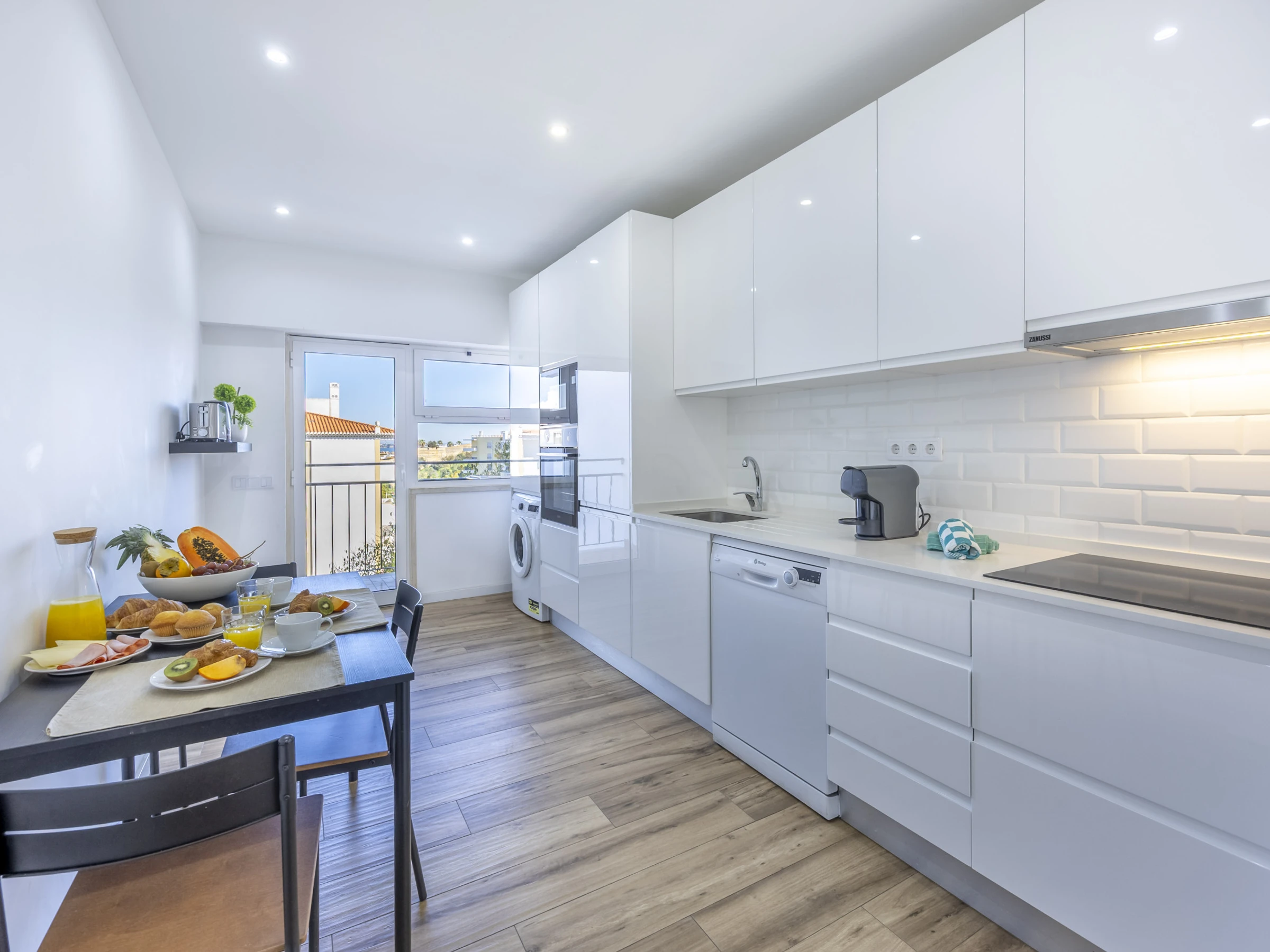 La cocina independiente, de inducción, está equipada con nevera, microondas, horno, congelador, lavavajillas, vajilla/cubertería, utensilios/cocina, cafetera y tostadora.