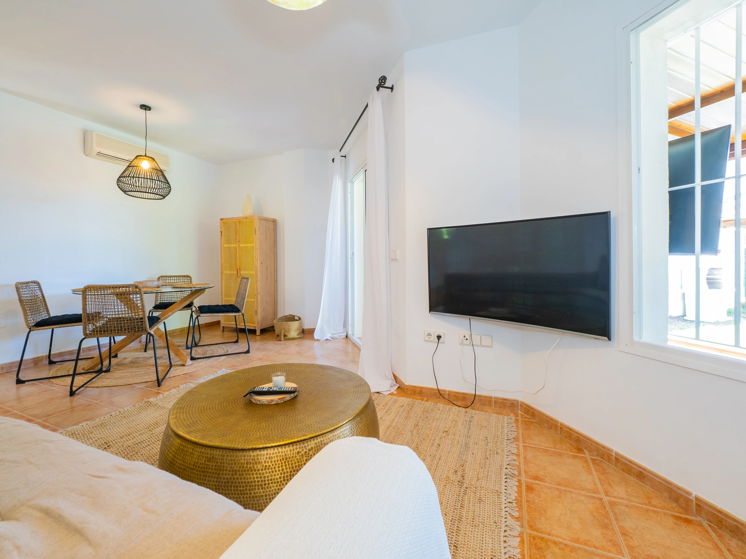 En el exterior, dispondrás de un amplio jardín con acceso a tres piscinas comunitarias donde podrás tomar el sol o disfrutar de un buen libro a la sombra de los árboles (aunque no hay hamacas o mobiliario exterior en las zonas comunes). Además, cuenta con una zona ajardinada privada con barbacoa de carbón y acceso directo al jardín y piscina más cercana. La terraza cubierta acristalada con mobiliario, televisión y sofá complementa el espacio privado para momentos de tranquilidad en la urbanización. 🌳🔥🏊♂️