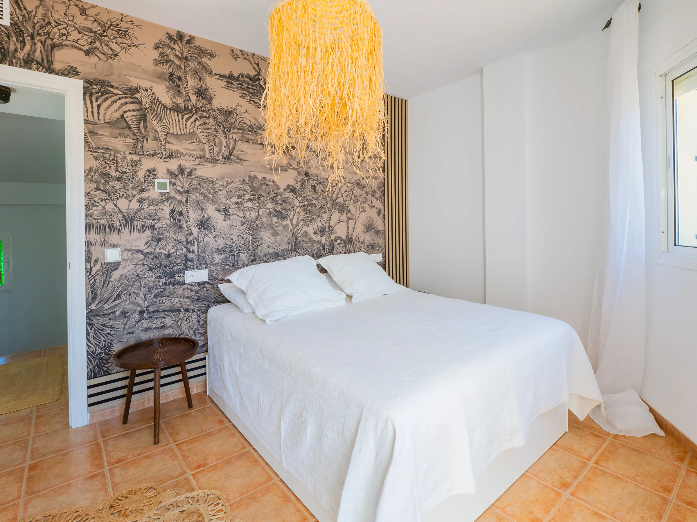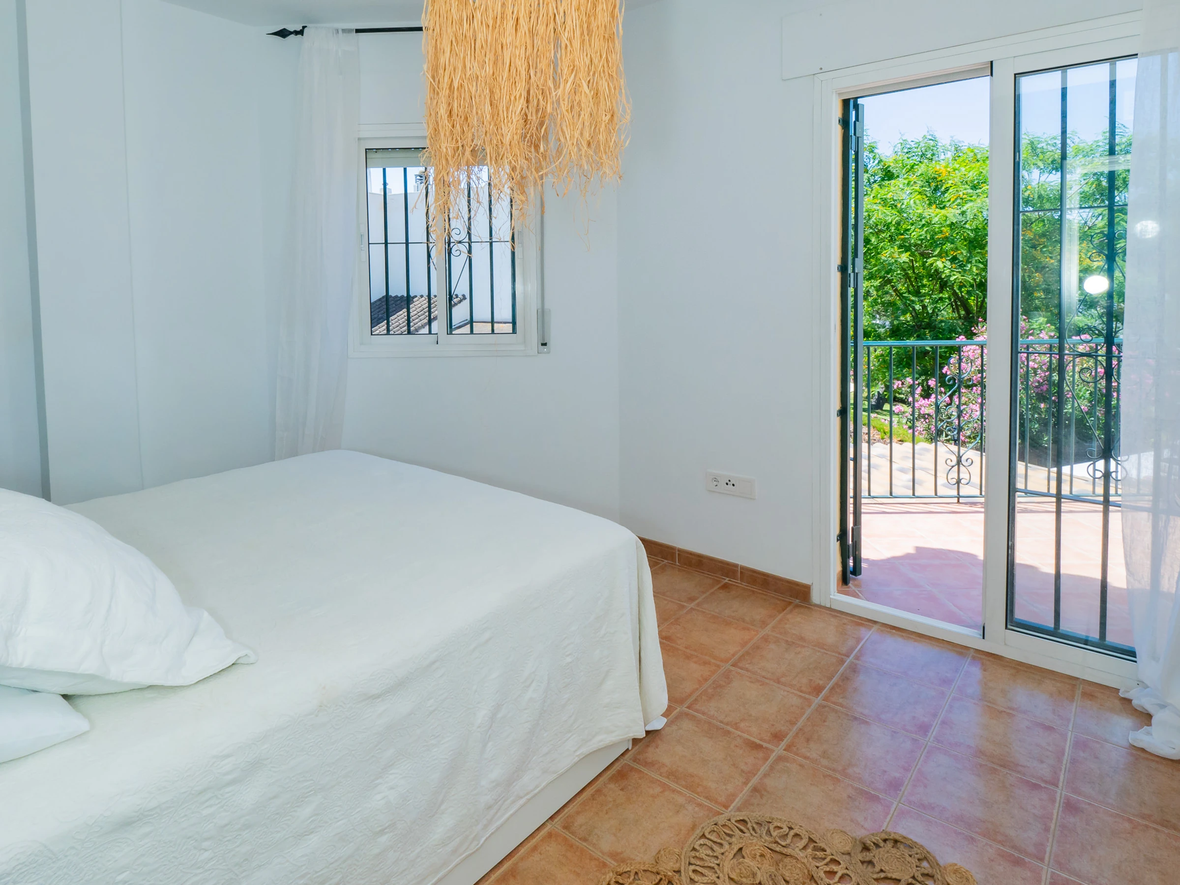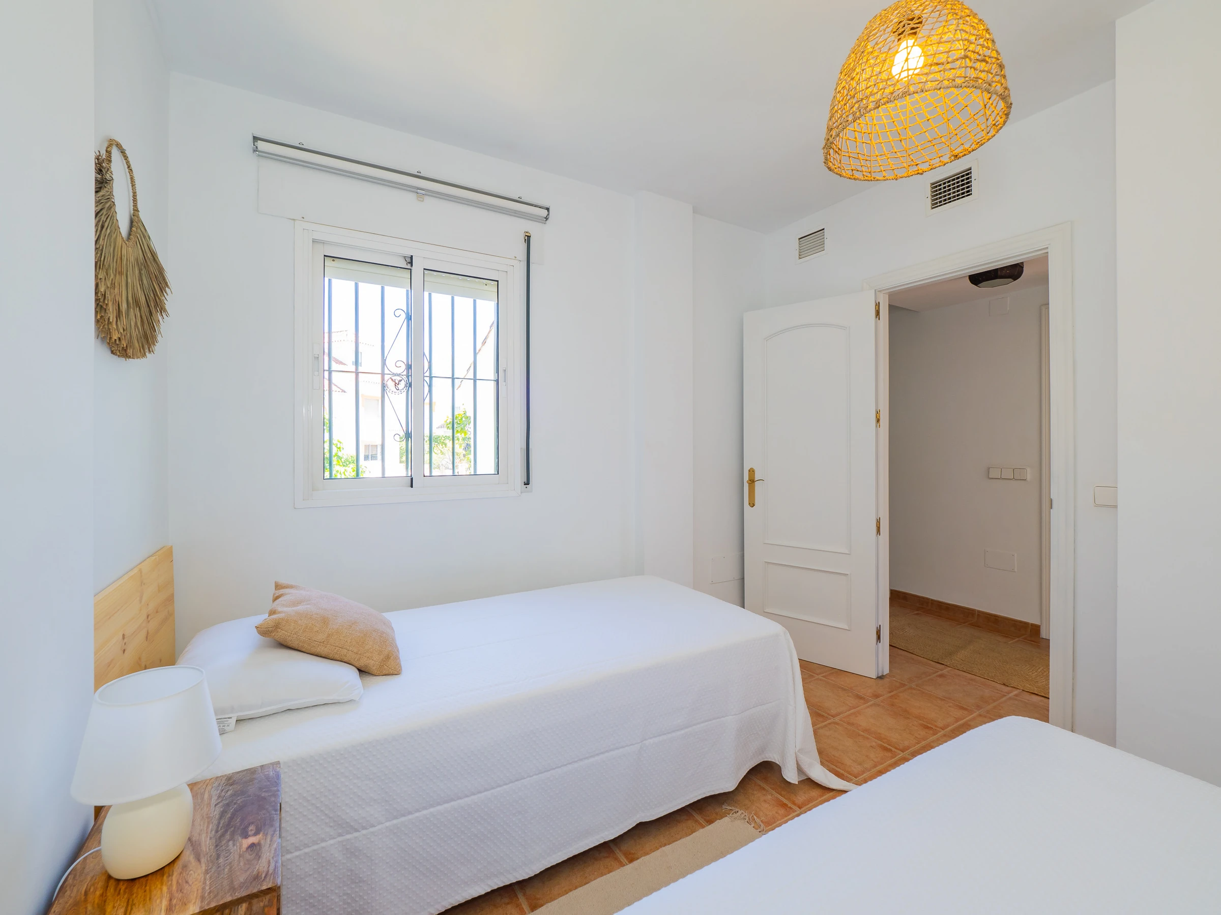 Esta encantadora casa vacacional en Mijas, situada en una urbanización cuidada con amplios jardines, tres piscinas y pista de pádel, ofrece la combinación perfecta de relax y ocio. Con capacidad para 4 personas, distribuidos en dos plantas y plaza de garaje independiente con acceso comunitario, es el refugio ideal para descubrir Las Lagunas de Fuengirola y toda la Costa del Sol. La ubicación estratégica permite acceso fácil a supermercados, restaurantes, transporte público y atractivos turísticos como parques acuáticos, la playa y campos de golf.