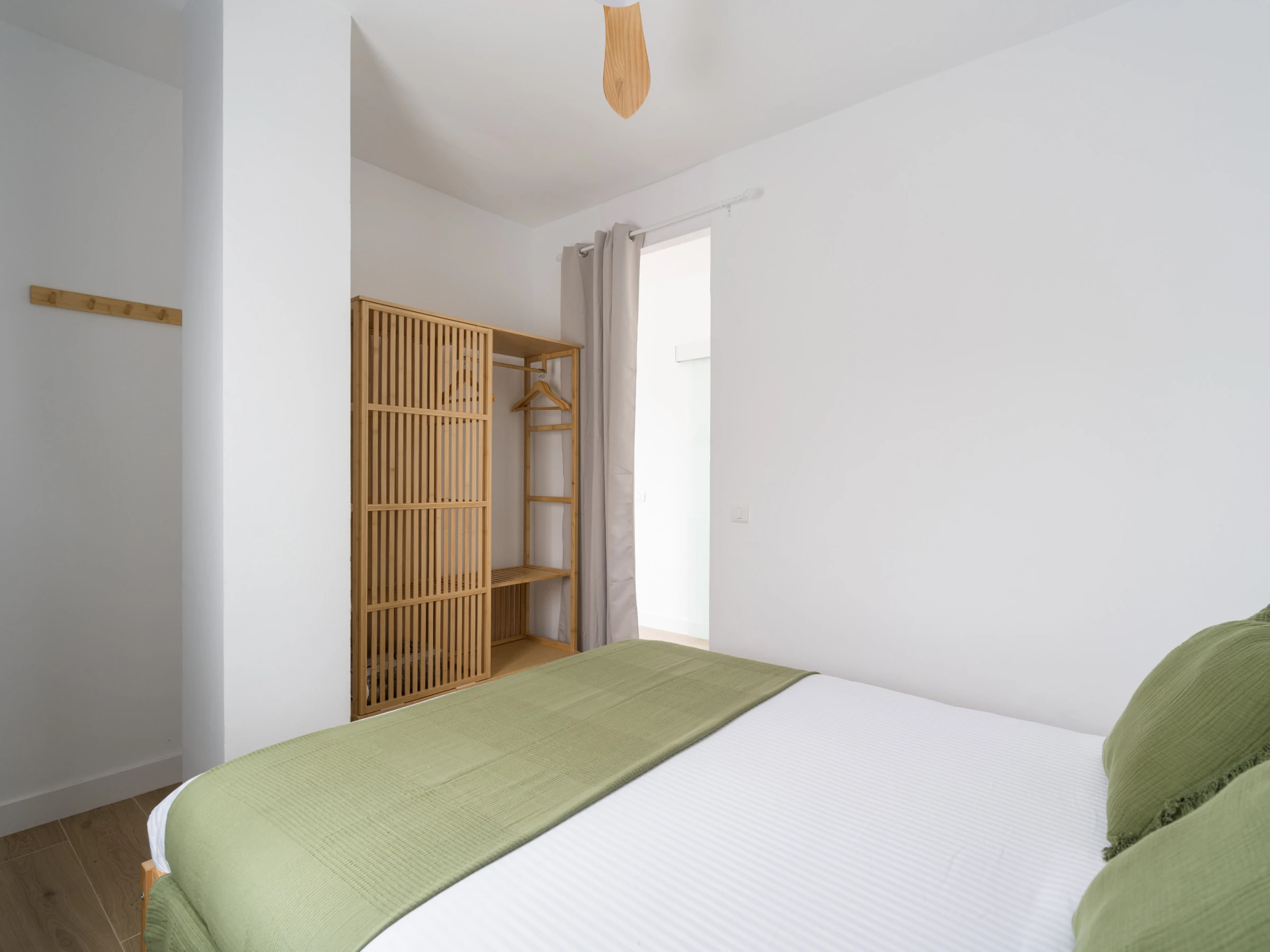El alojamiento cuenta con 1 dormitorio con cama doble de colchón viscoelástico y capacidad para hasta 2 personas. Dispone de 1 baño completo con ducha accesible, cabezal de ducha con mango y acceso sin escalones, perfecto para garantizar tu comodidad. El espacio está diseñado pensando en la accesibilidad, con puertas amplias en el dormitorio, camino iluminado hacia la entrada.