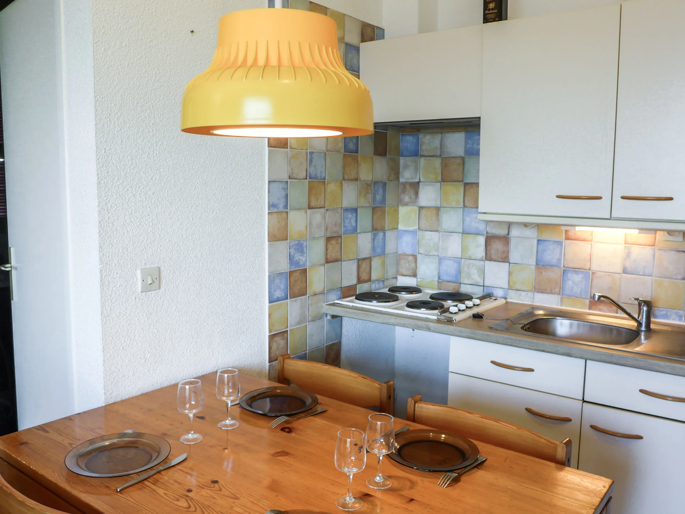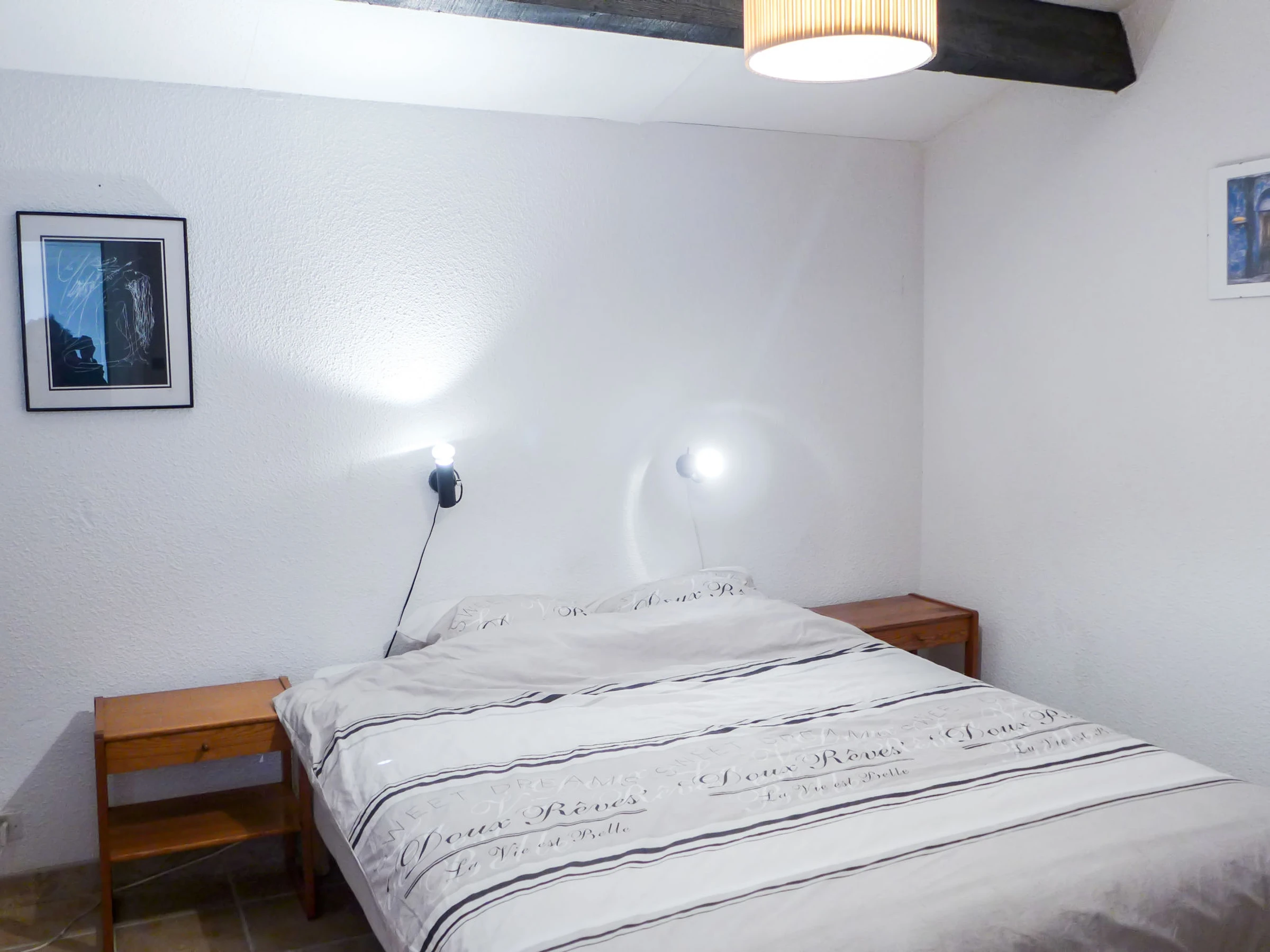 Apartamento de 3 estancias 45 m2 en el 2° piso, orientación oeste. Salón-comedor con 1 sofá-cama doble (1 x 140 cm), TV (pantalla plana). Salida a la terraza. 1 dorm. con 1 cama de matrimonio (1 x 160 cm, 200 cm de longitud). 1 dorm. con 3 camas (80 cm, 190 cm de longitud). Rincón-cocina (4 fogones, horno pequeño, horno, congelador, cafetera eléctrica). Ducha, WC separado. Ningún tipo de calefacción. Terraza 6 m2. Muebles de terraza. Vista muy bonita al lago y a las montañas. El alojamiento dispone de: Internet (Wifi, extra). Plaza de aparcamiento. A tener en cuenta: detector de humo.