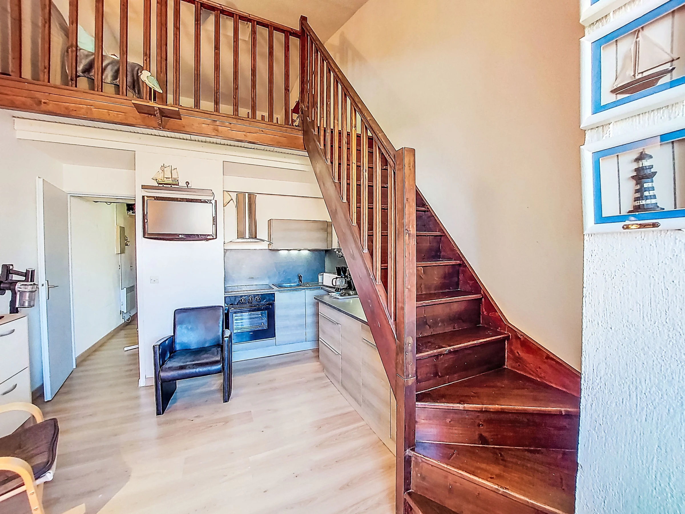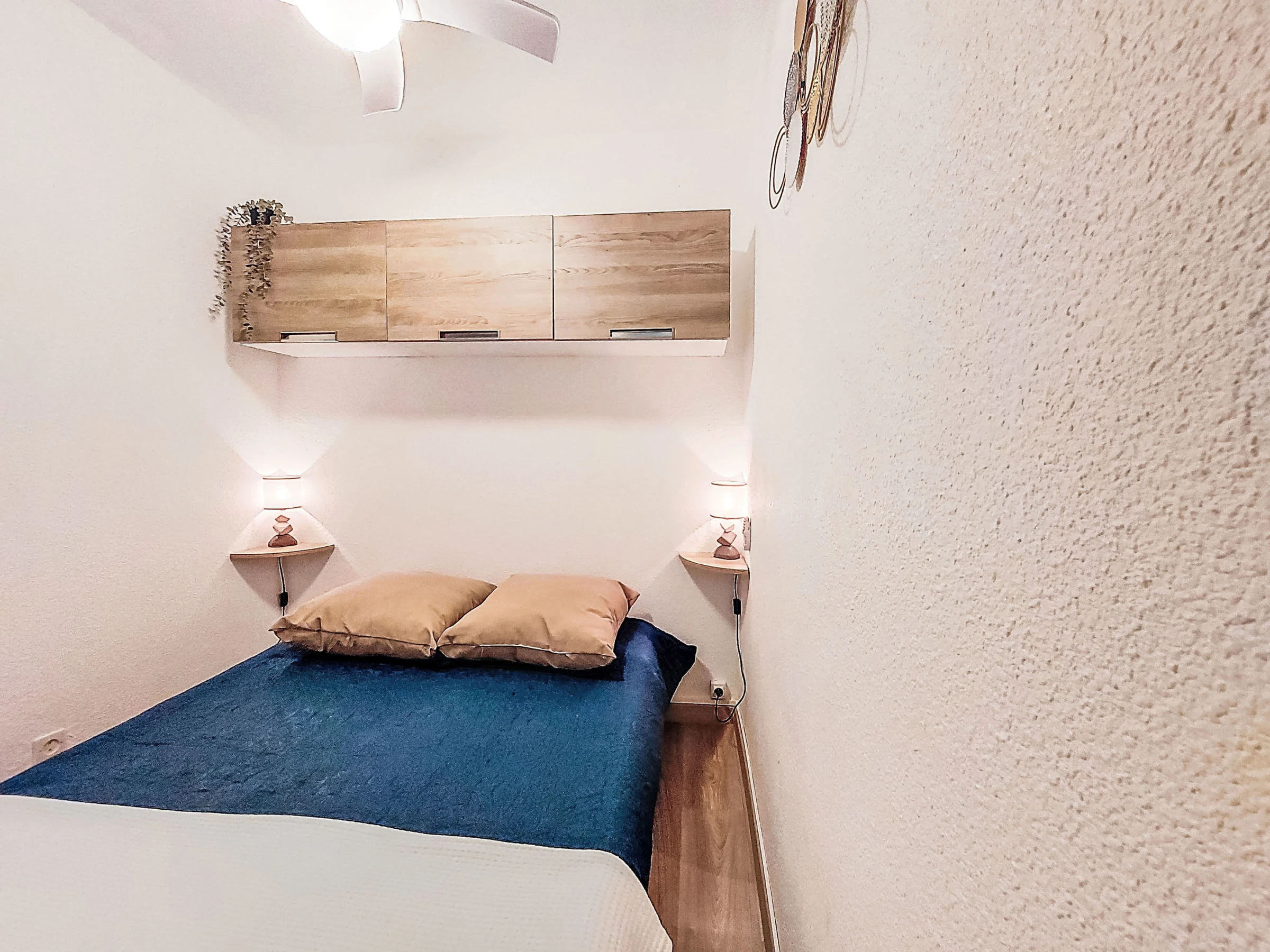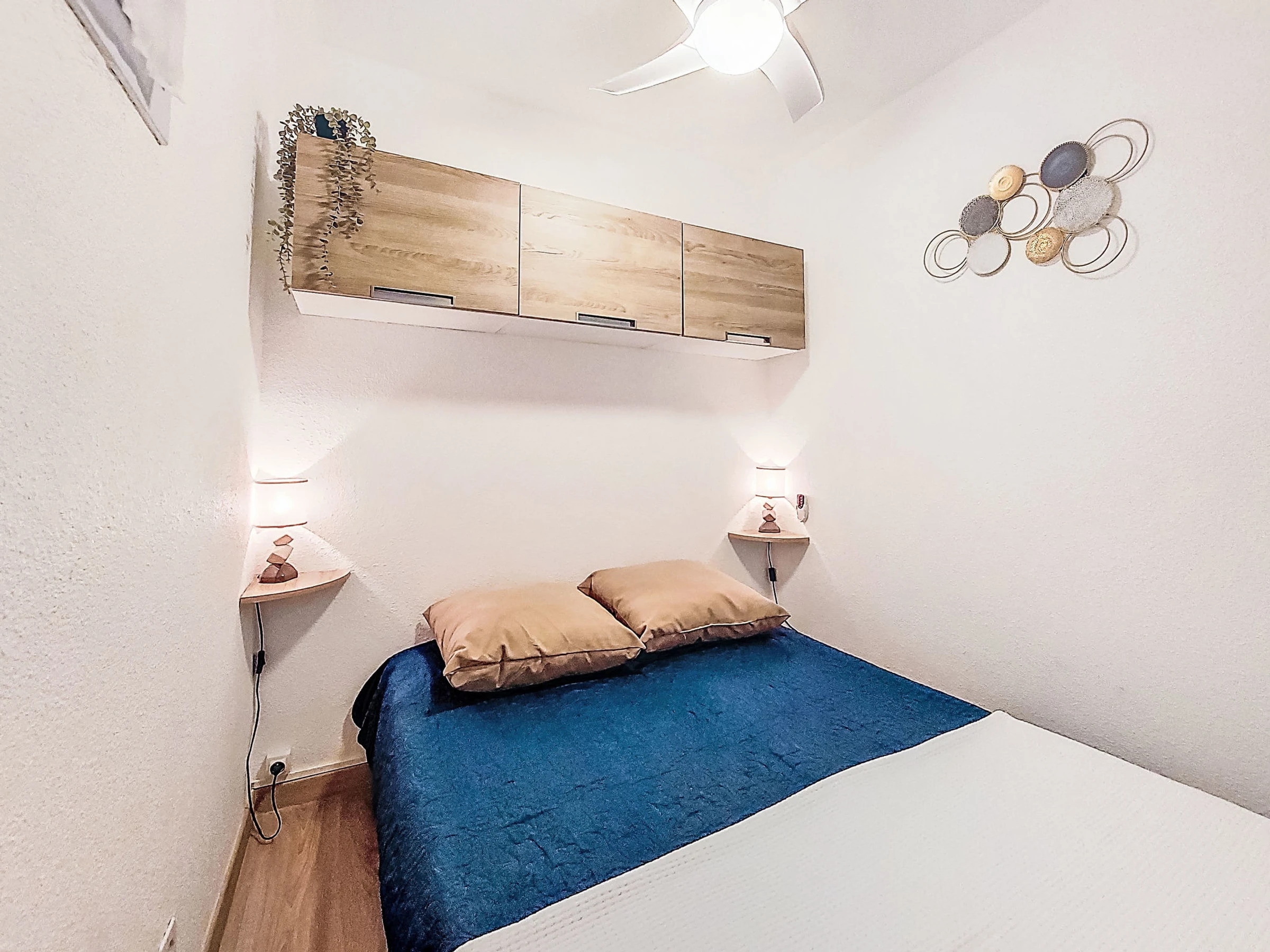 Apartamento de 2 estancias 28 m2 en el 3° piso. Salón con TV (pantalla plana). Salida al balcón cubierto. 1 dorm. con 1 sofá-cama doble (1 x 140 cm, 190 cm de longitud). Cocina abierta (3 placas de vitrocerámica, tostadora, microondas, cafetera eléctrica). Ducha/WC. Planta superior: altillo con 1 cama de matrimonio (1 x 140 cm, 190 cm de longitud). Vista lateral al mar. El alojamiento dispone de: lavadora, secadora. Internet (Wifi, extra). Oferta de un particular según el art. 155, IV del CGI.