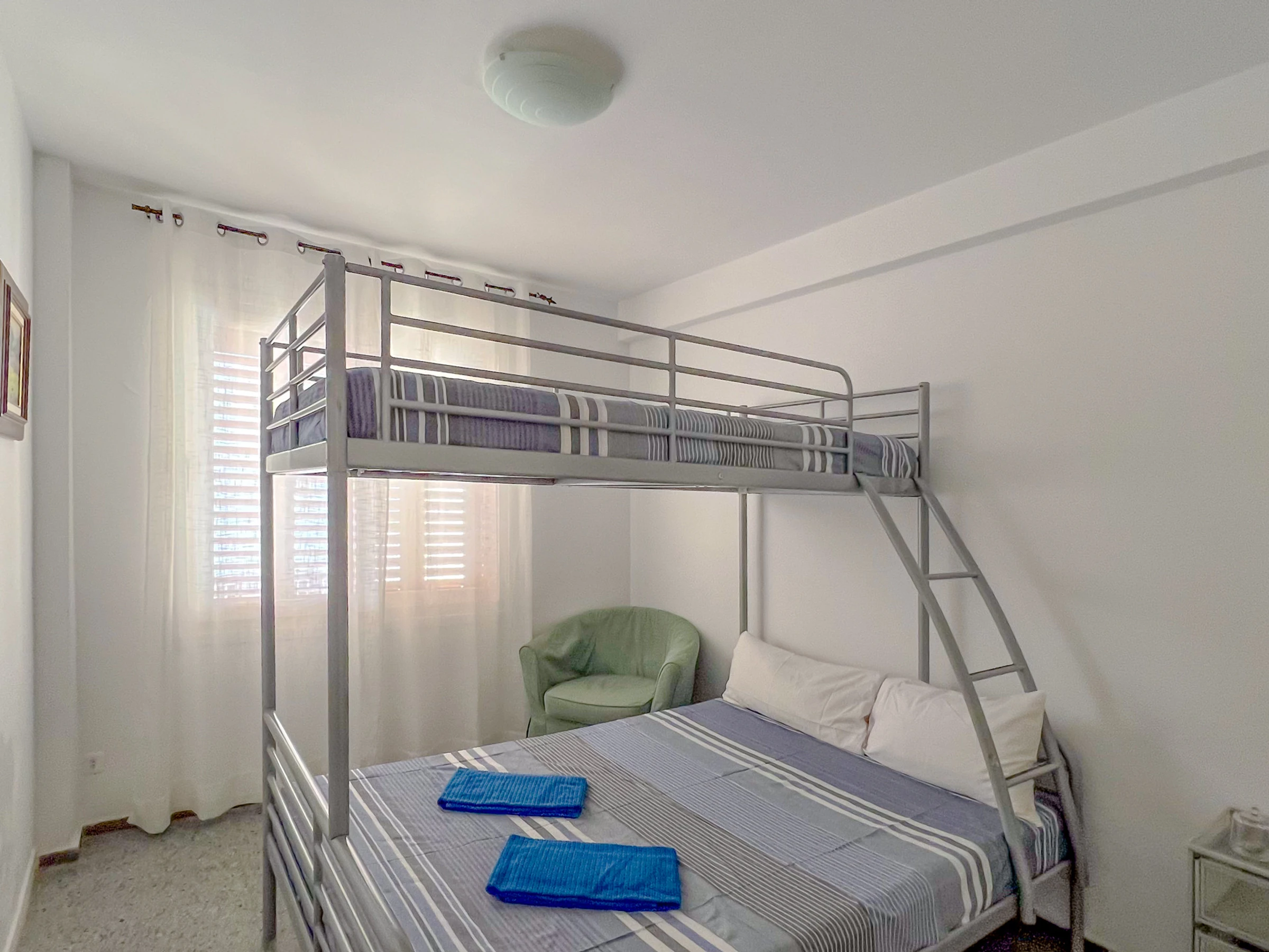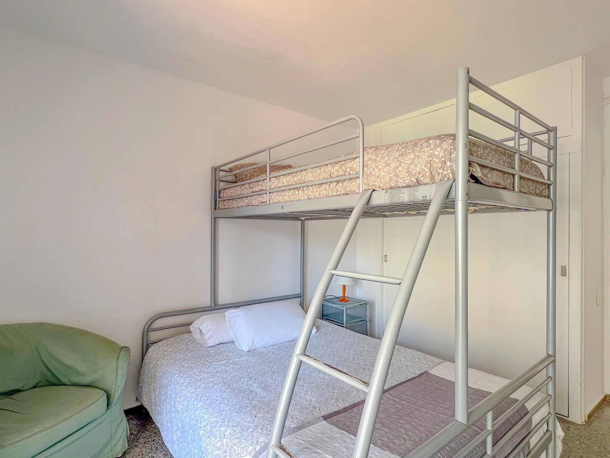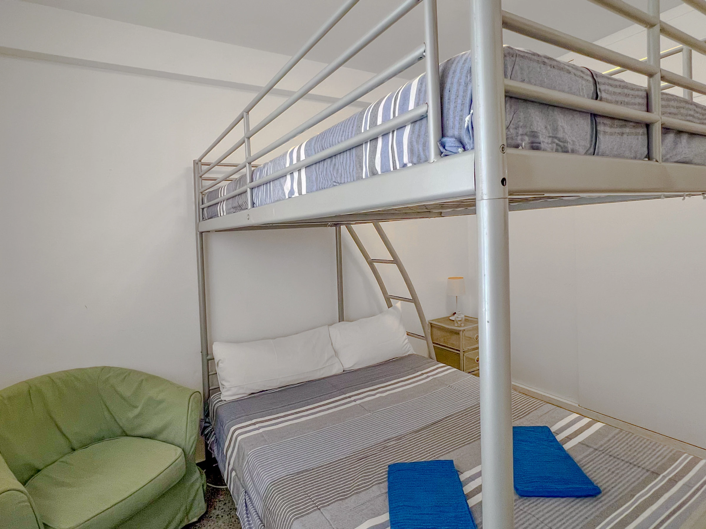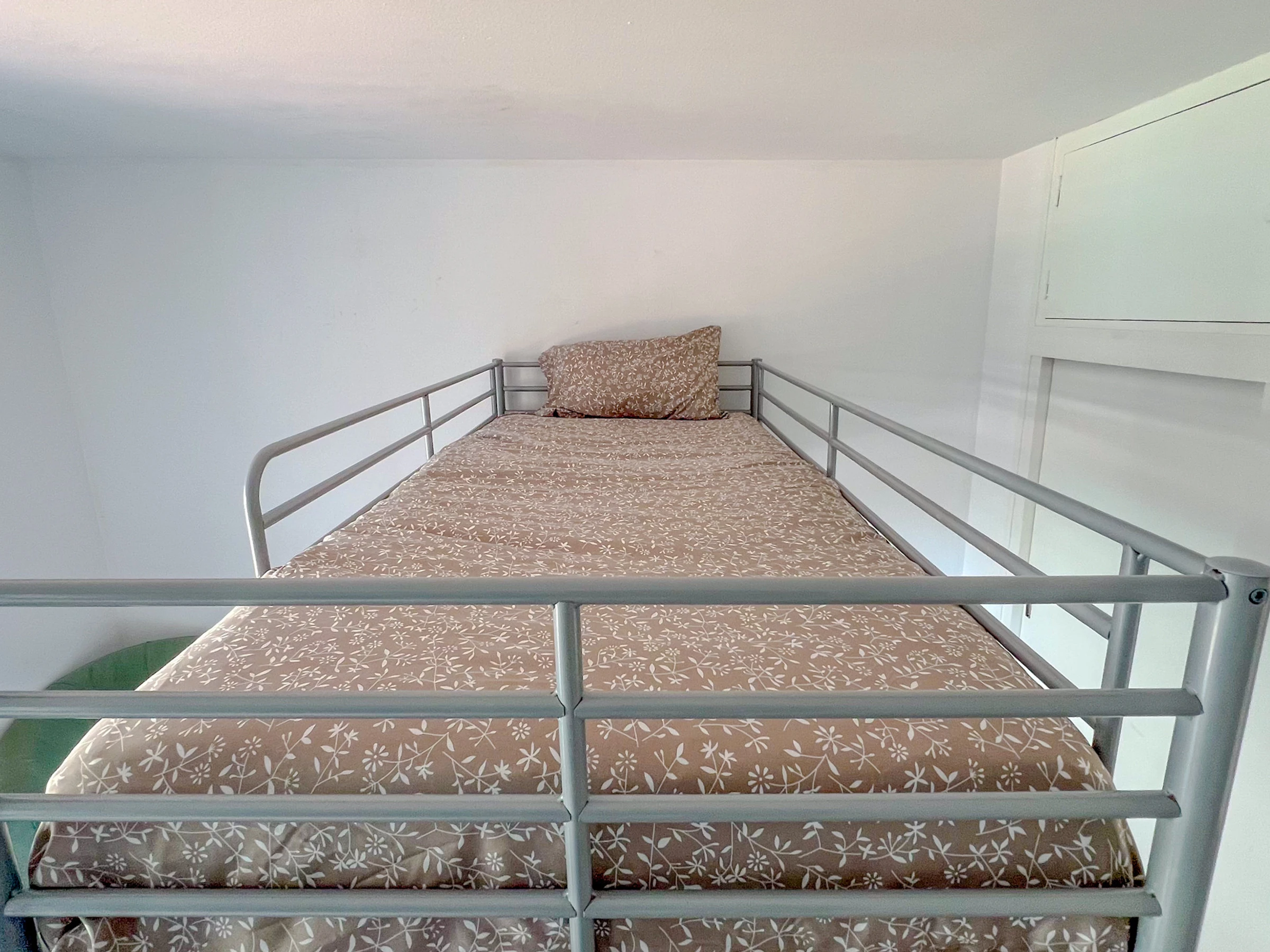 - habitación 1: 1 litera doble. La cama de abajo es doble (140cm x 200cm) y la de arriba es individual.