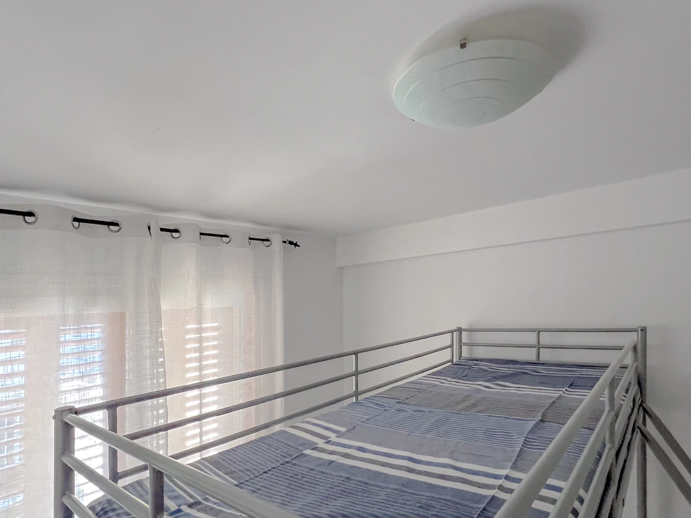 - habitación 2: 1 litera doble. La cama de abajo es doble (140cm x 200cm) y la de arriba es individual.
