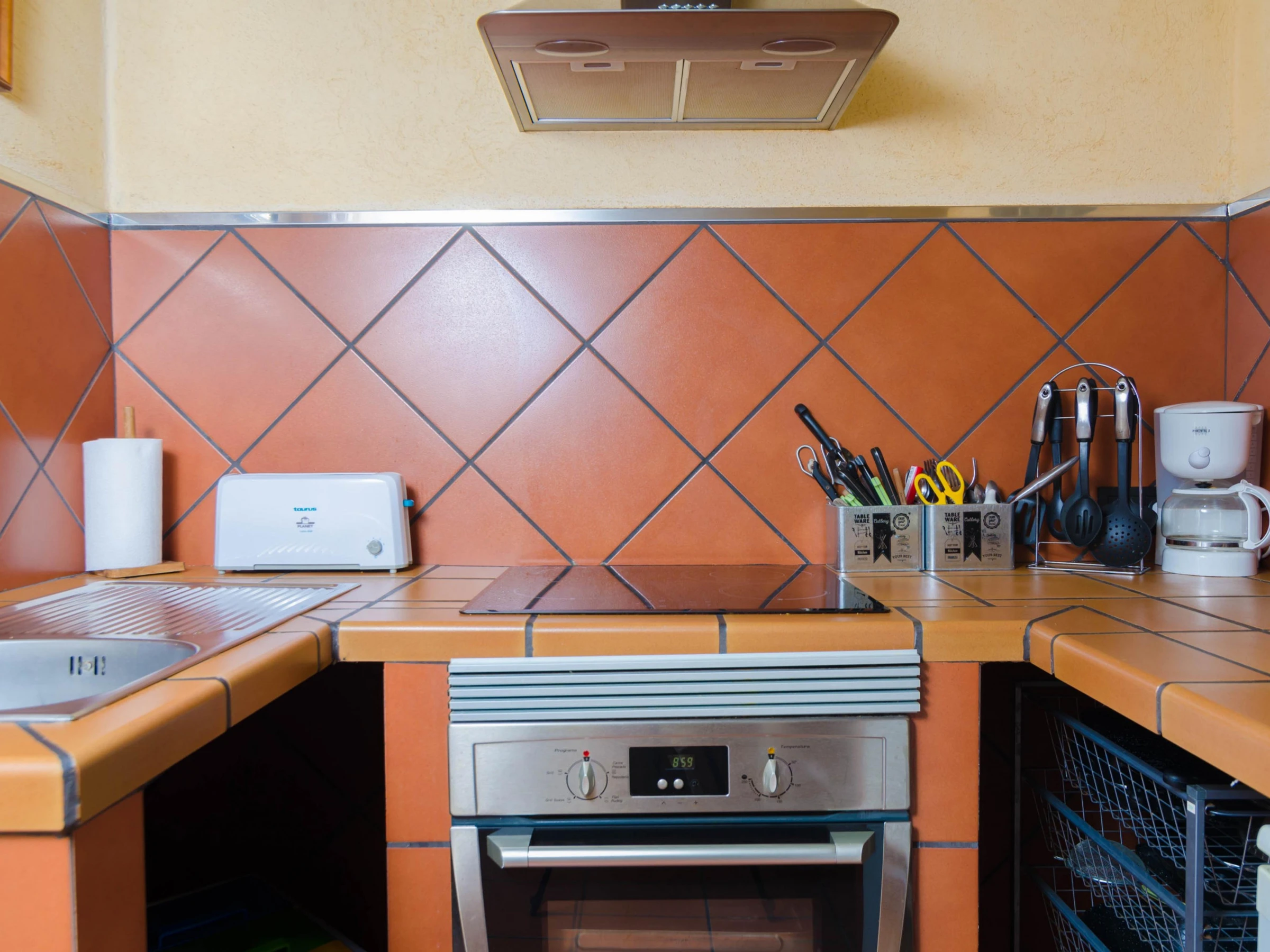 Así pues, la vivienda se distribuye en 3 edificaciones: la casa grande, -situada en planta baja-, y dos apartamentos, - uno situado en una primera planta accesible a través de las escaleras que hay junto a la piscina- y el otro en una zona anexa a la propiedad. En la casa grande les recibe un rústico salón-comedor, con TV-SAT, DVD, reproductor de CD, A/C y estufa de leña, seguido de una salita anexa con 2 sofás. La cocina, con vitrocerámica, está situada en el espacio acristalado con barbacoa. Luego tienen 2 habitaciones con armario, una con cama doble y baño en-suite con bañera y ducha, y la otra con una litera. Las estancias de esta casa ofrecen ventilador de techo y calefacción por radiadores eléctricos de pared. En el apartamento, hay una sala de estar, -con TV-SAT y A/C-, una acogedora cocina-comedor con vitrocerámica, una habitación con cama doble y armario, y un baño con ducha. Dos huéspedes pueden dormir en los 2 sofá-cama de esta sala de estar. Hay 2 cunas y 2 tronas. En la zona anexa disponen de un amplio salón comedor con AC y Smart TV, cocina con vitrocerámica con todo lo necesario para cocinar. Una habitación con cama doble, armario,AC y ventilador. Hay una cama adicional en el altillo del salón. Y por último un baño con ducha completa esta zona. Cada edificación tiene su propia área de colada con lavadora, plancha y tabla de planchar; en la casa grande se encuentra en la cocina/barbacoa y la del apartamento está en el pasillo de acceso a la piscina.