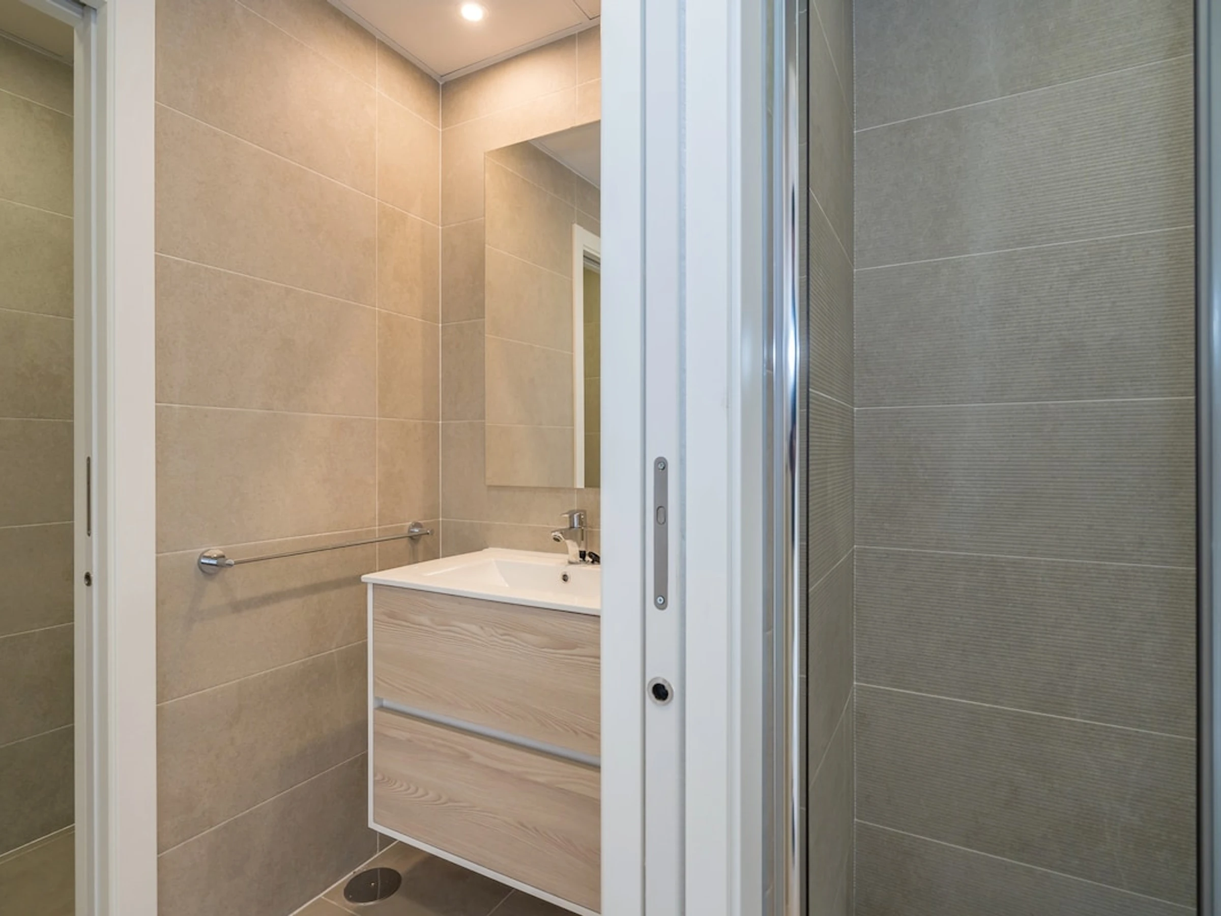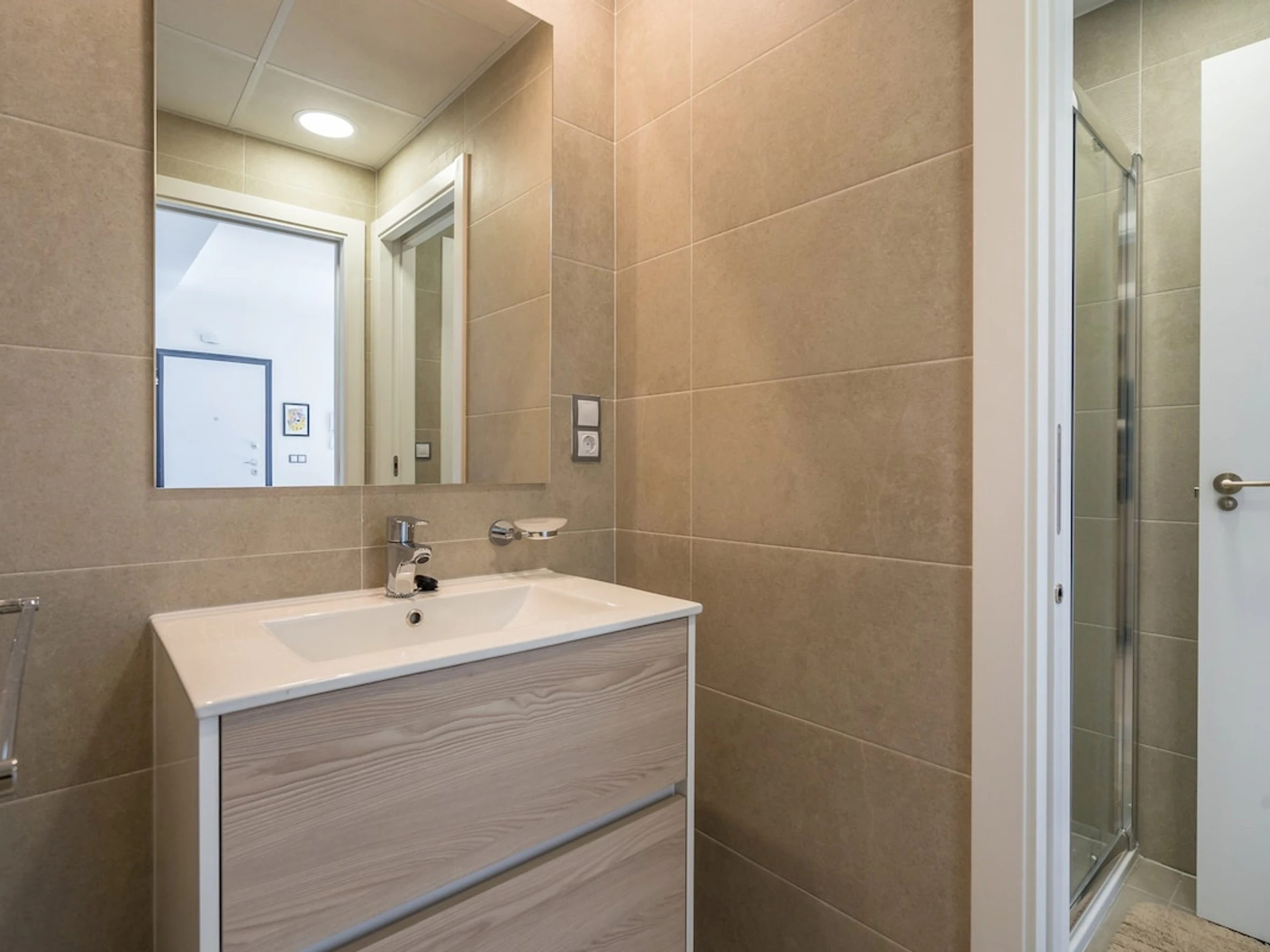 - cuarto de baño en suite con lavabo, ducha, cisterna de inodoro y secadora de pelo