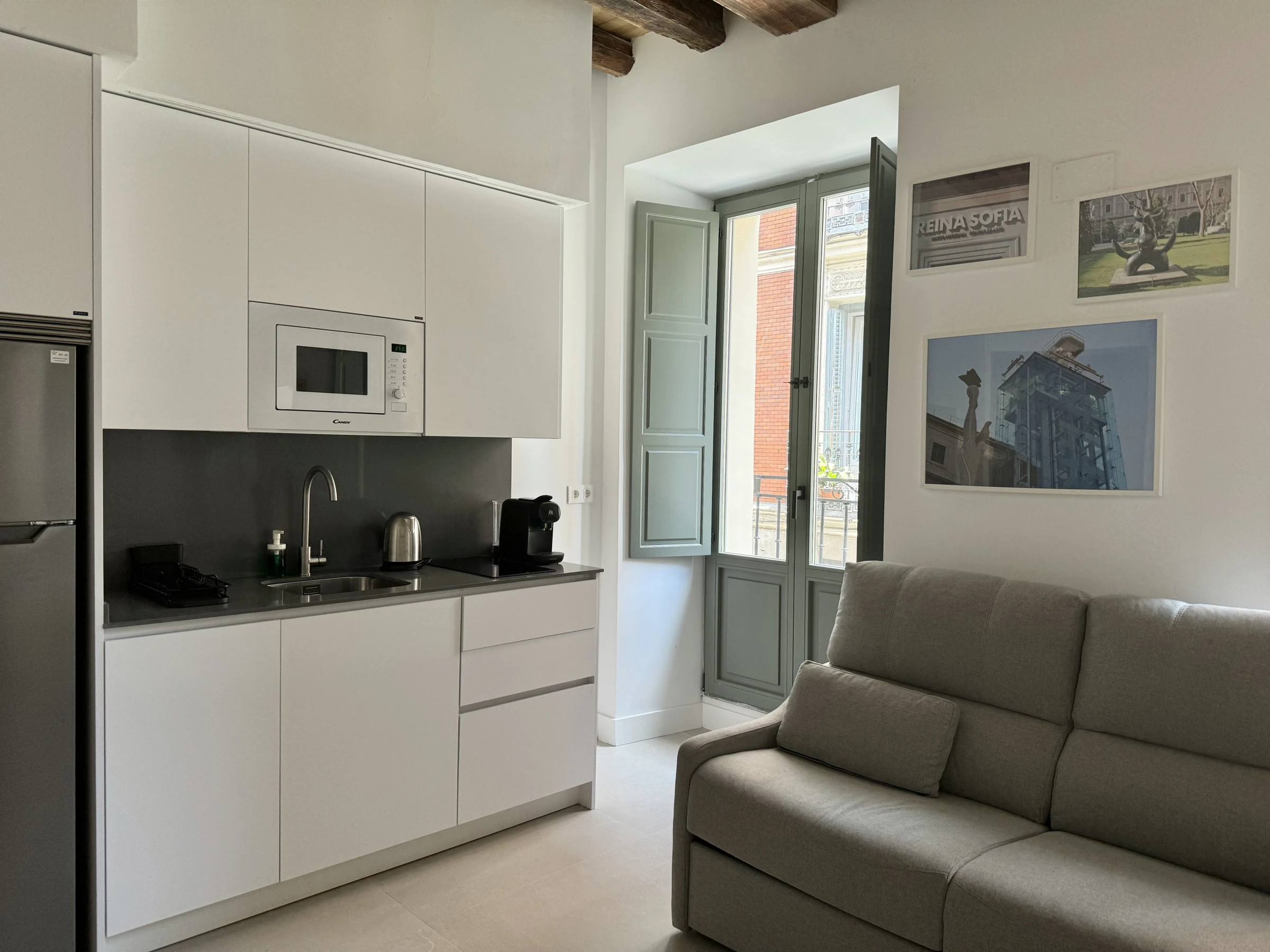 Este amplio apartamento tipo estudio (segunda planta con ascensor) se encuentra en un edificio histórico de mas de 300 años, recién reconstruido. Está ubicado a tan solo 250 m del Mercado de San Miguel, a 300 m de la Plaza mayor y a 750 m del Palacio Real y la Puerta del Sol.
