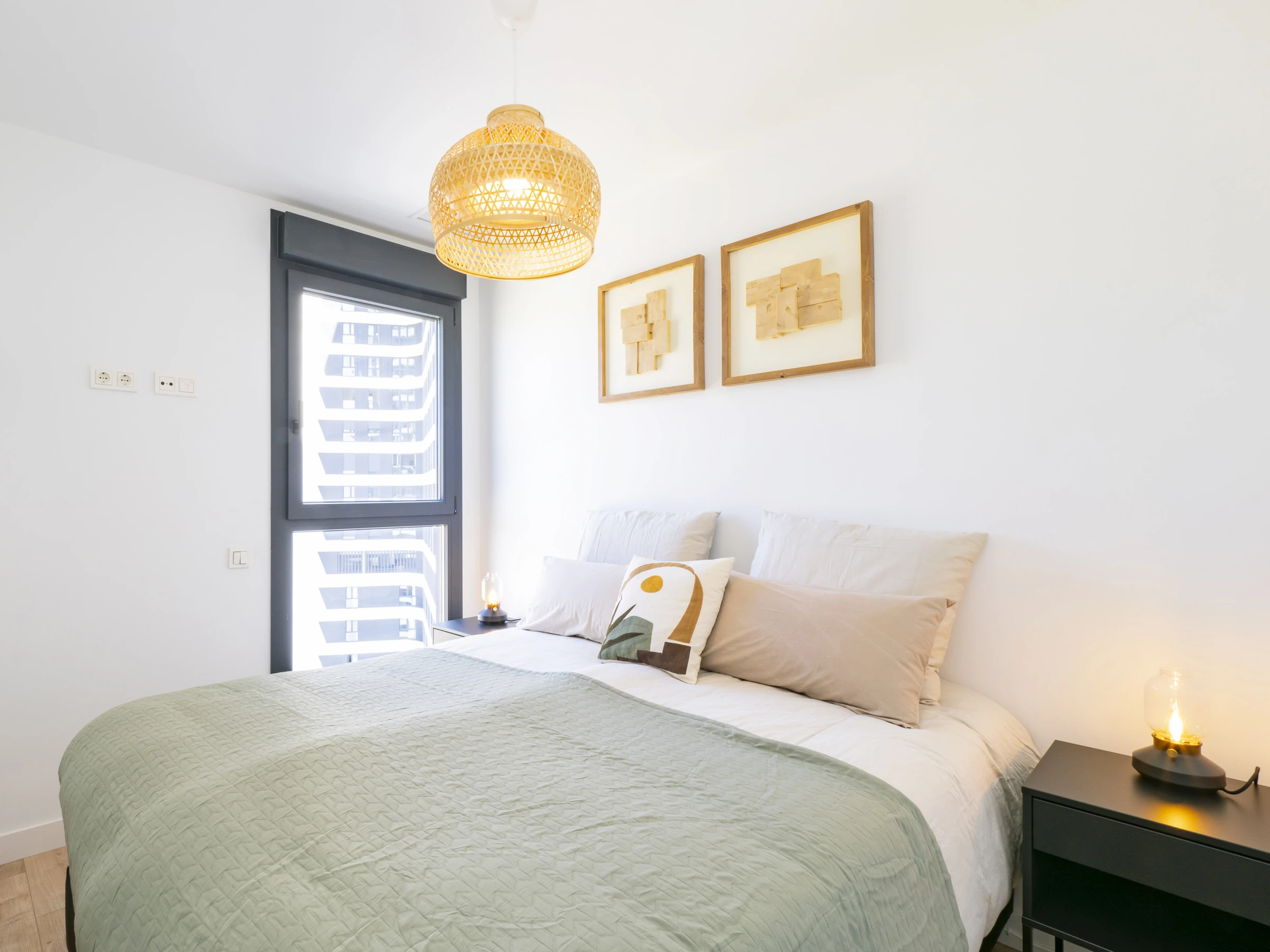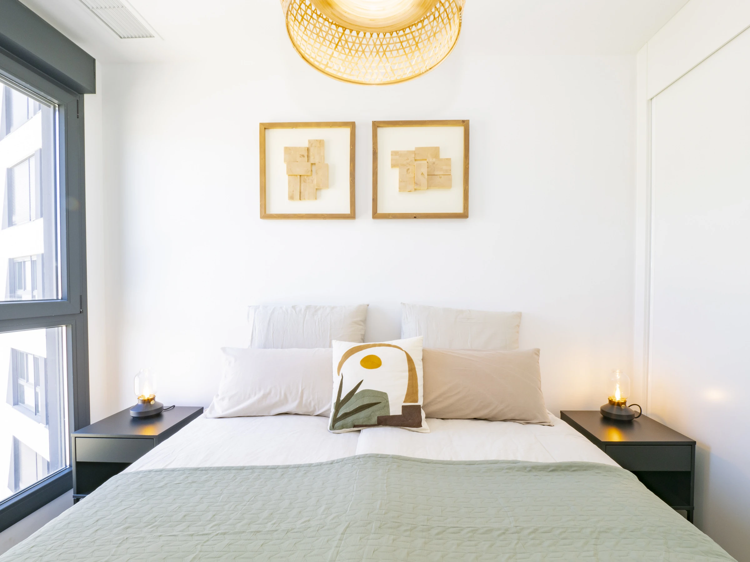 El apartamento, con 90 m², está diseñado para 2 personas y dispone de un dormitorio con 2 camas individuales, ventana al exterior y amplio armario. La cocina independiente está equipada con electrodomésticos modernos como horno, microondas, nevera, lavavajillas y más, ideal para preparar tus comidas favoritas. El salón comedor es amplio, con Smart TV para que disfrutes de streaming y entretenimiento, y se abre a una terraza de 12 m² donde podrás disfrutar del amanecer y la vista urbana.