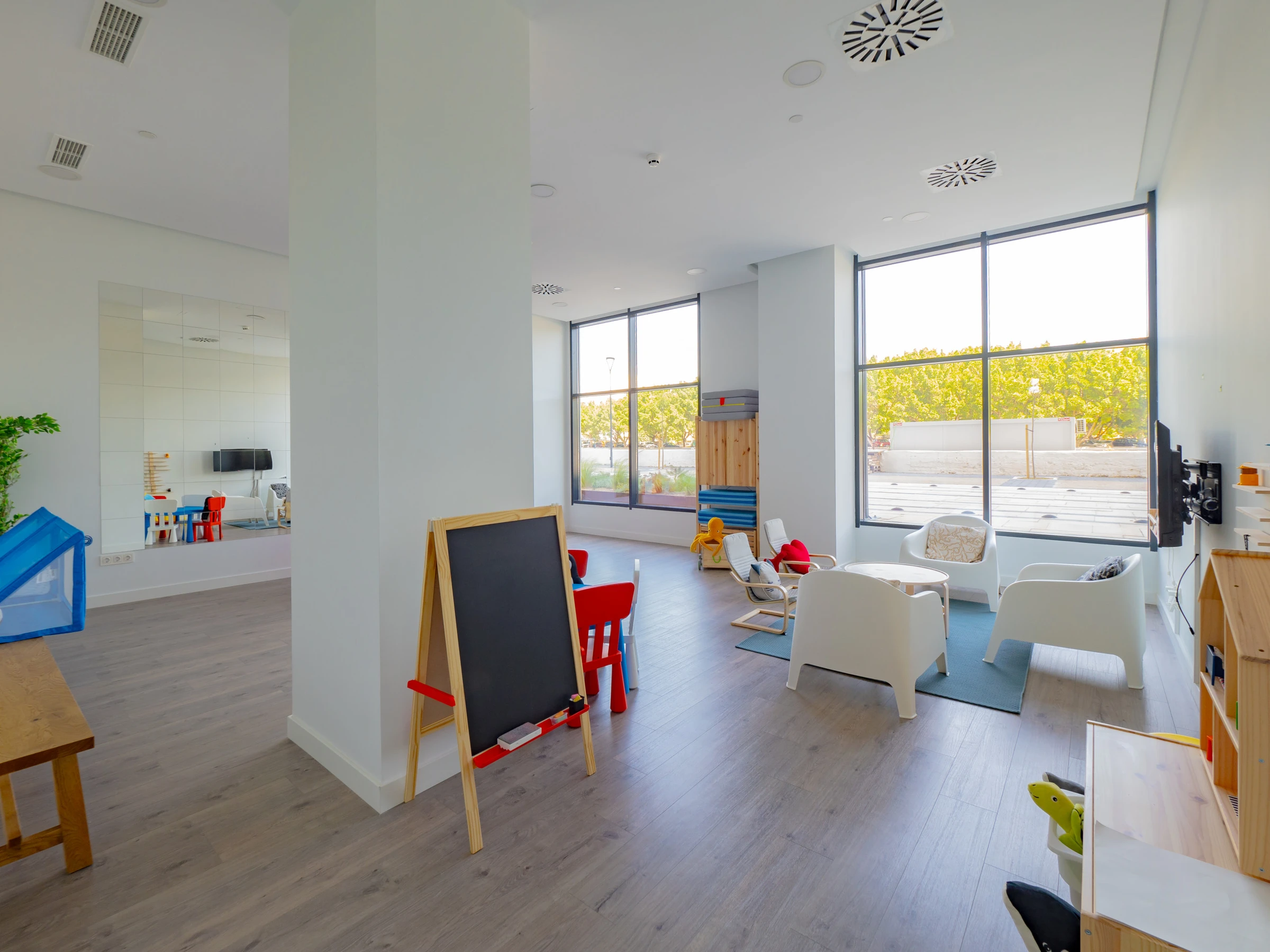 Disfruta de la exclusividad y las amenidades premium: una piscina en la azotea (planta 30) con tumbonas para relajarte mientras contemplas las panorámicas, además de espacios comunes que incluyen sala de proyección, coworking, gimnasio y una zona infantil con juegos. La piscina estará cerrada del 15 de septiembre al 31 de mayo, y el acceso a la azotea está sujeto a reserva y aforo máximo de 30 personas.