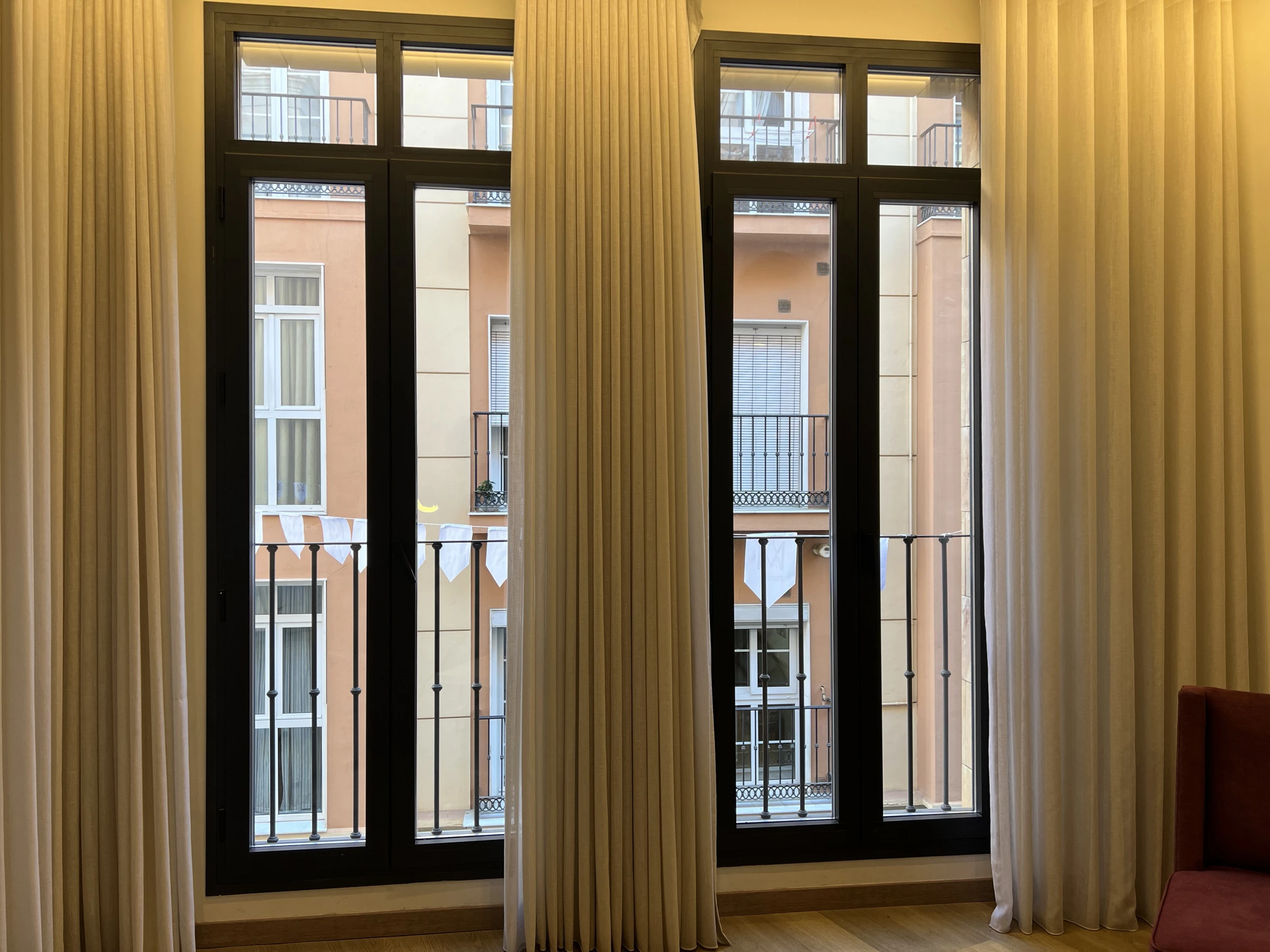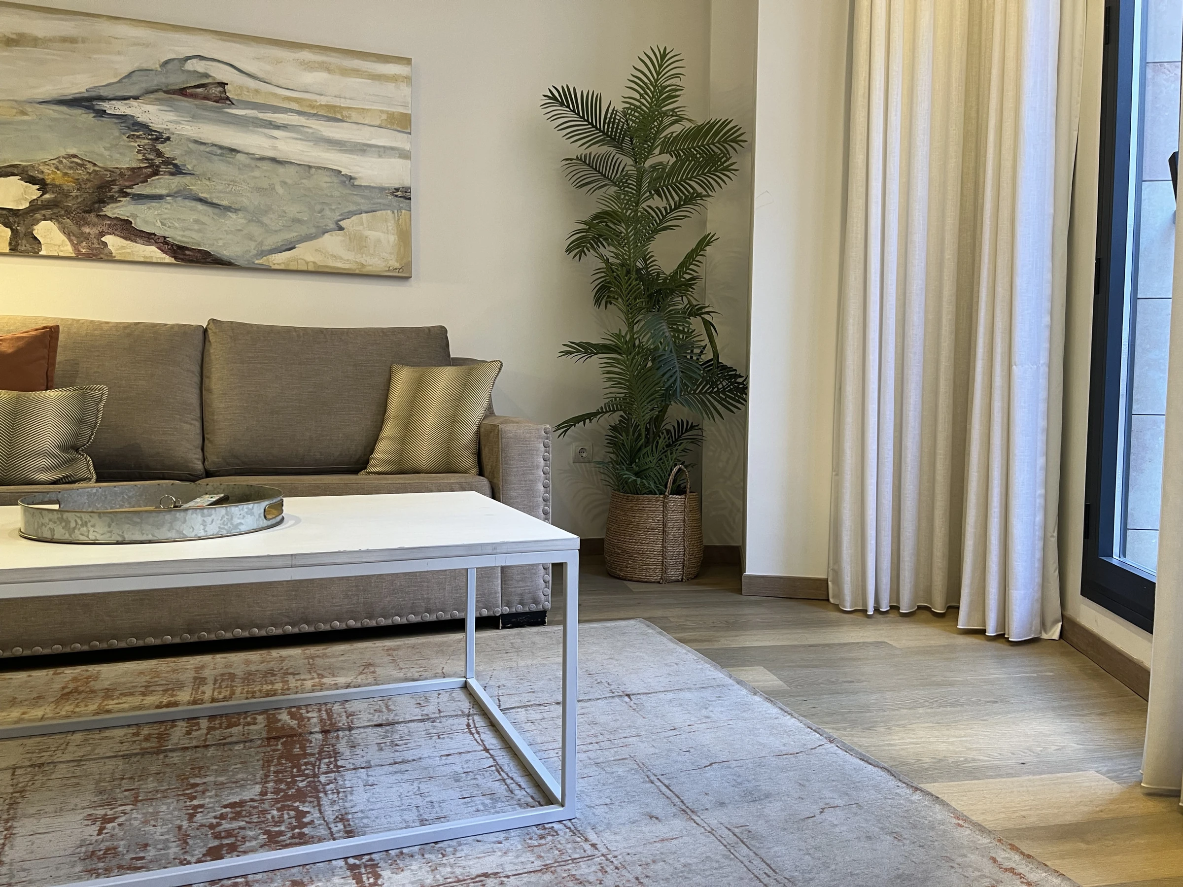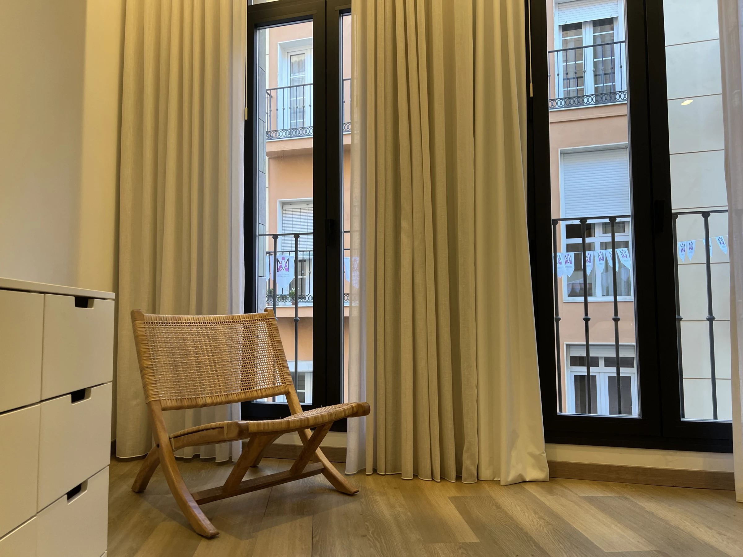 Bañado por la luz natural, cada espacio ha sido cuidadosamente diseñado para crear una atmósfera de calma y refinamiento. El salón ofrece un ambiente acogedor para relajarse después de un día explorando la ciudad, mientras que el dormitorio garantiza una experiencia íntima y reparadora. Cada detalle —desde la decoración cuidadosamente seleccionada hasta las suaves texturas y los toques contemporáneos— refleja nuestra dedicación al confort y al estilo.