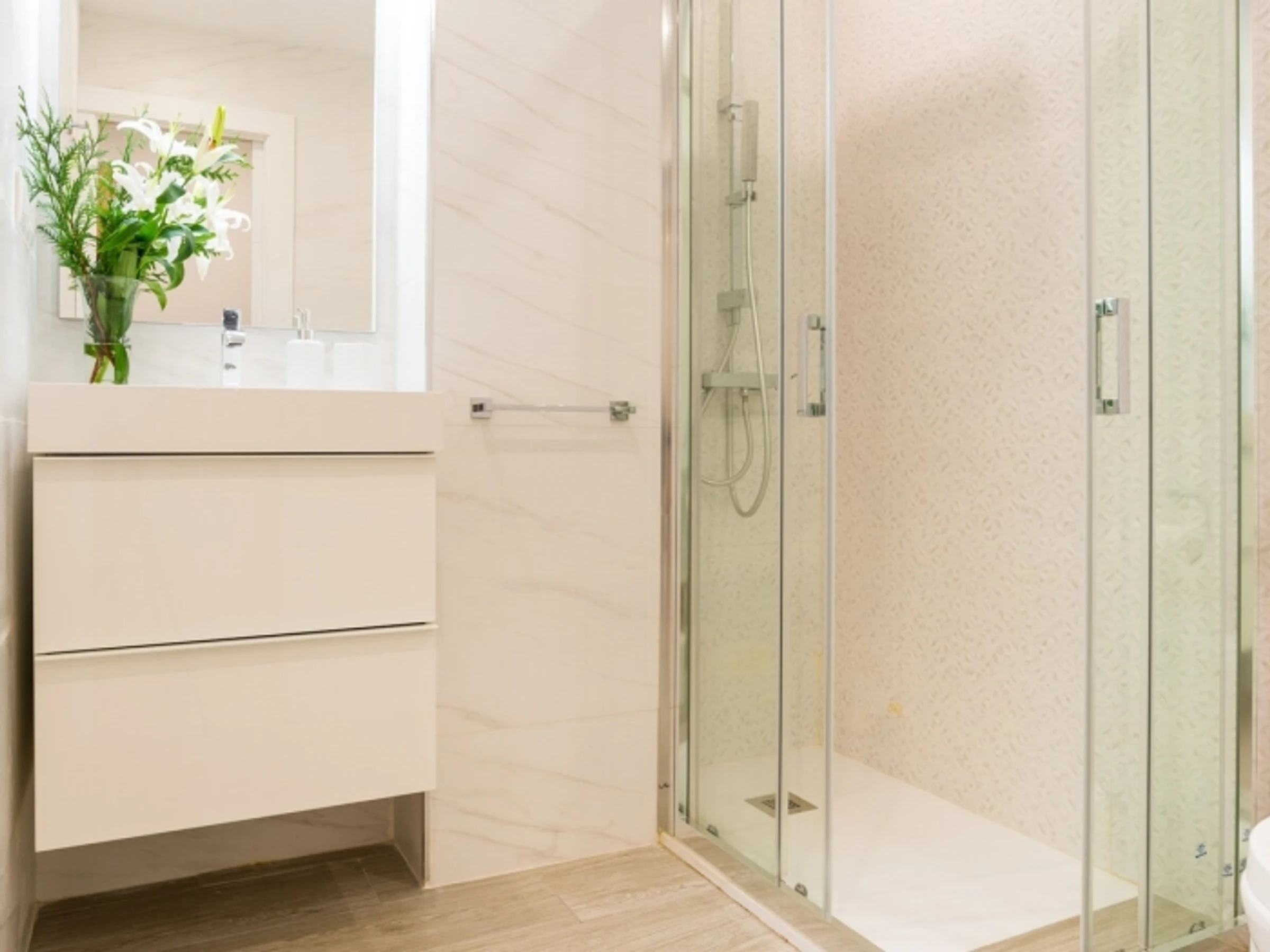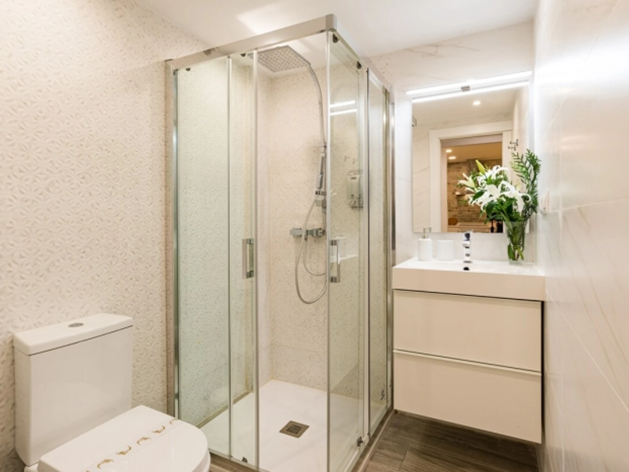 Dispone de dos dormitorios y dos baños, además de una moderna cocina integrada al salón, creando un ambiente amplio y luminoso. Tanto el salón como el dormitorio principal cuentan con balcones que se abren a un encantador patio típico andaluz, mientras que el dormitorio secundario dispone de una ventana que también ofrece vistas a este tranquilo y tradicional espacio.