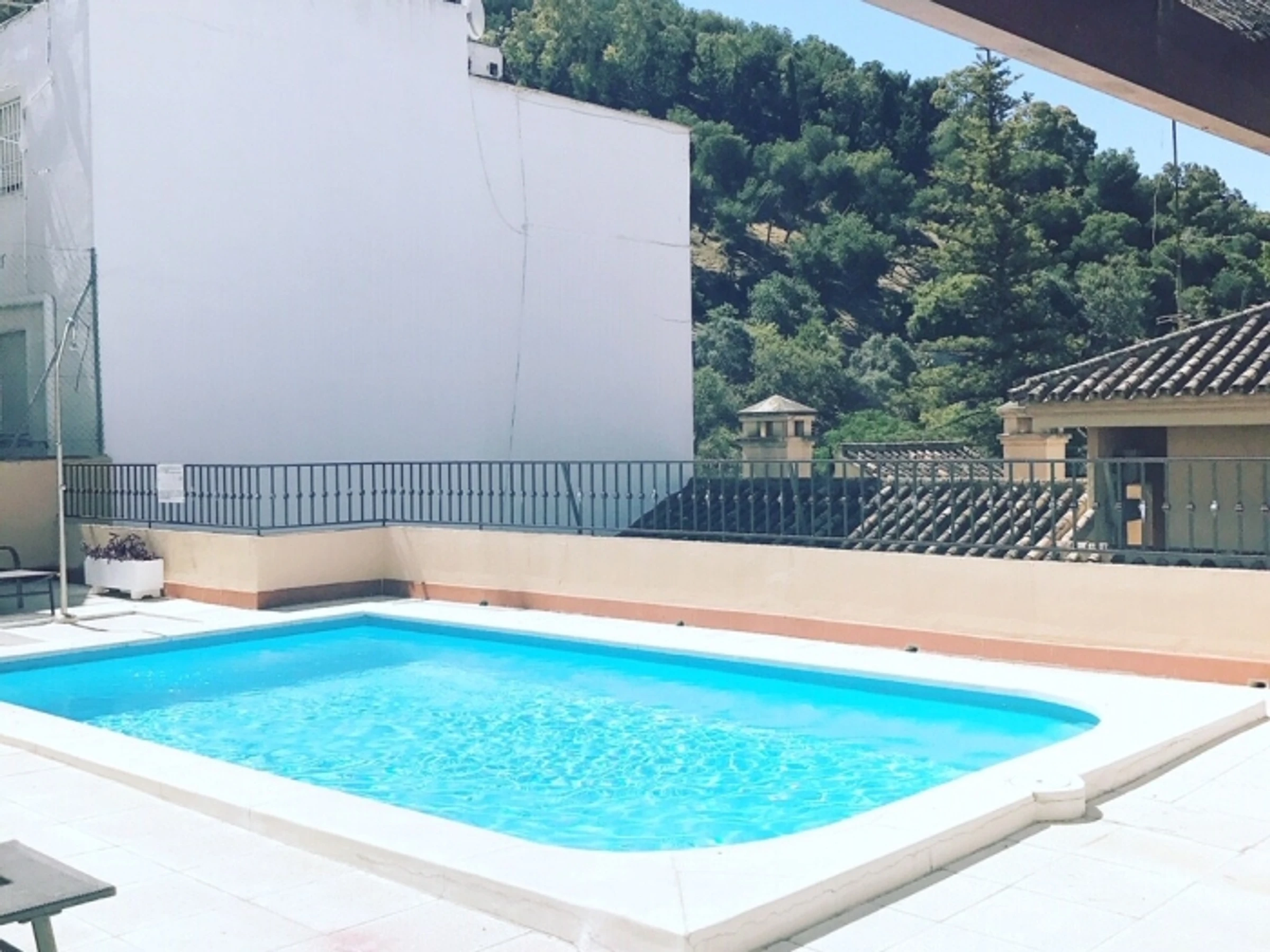 El edificio cuenta con una piscina en la azotea, disponible del 1 de junio al 15 de octubre, ideal para disfrutar del sol y del ambiente mediterráneo de Málaga.