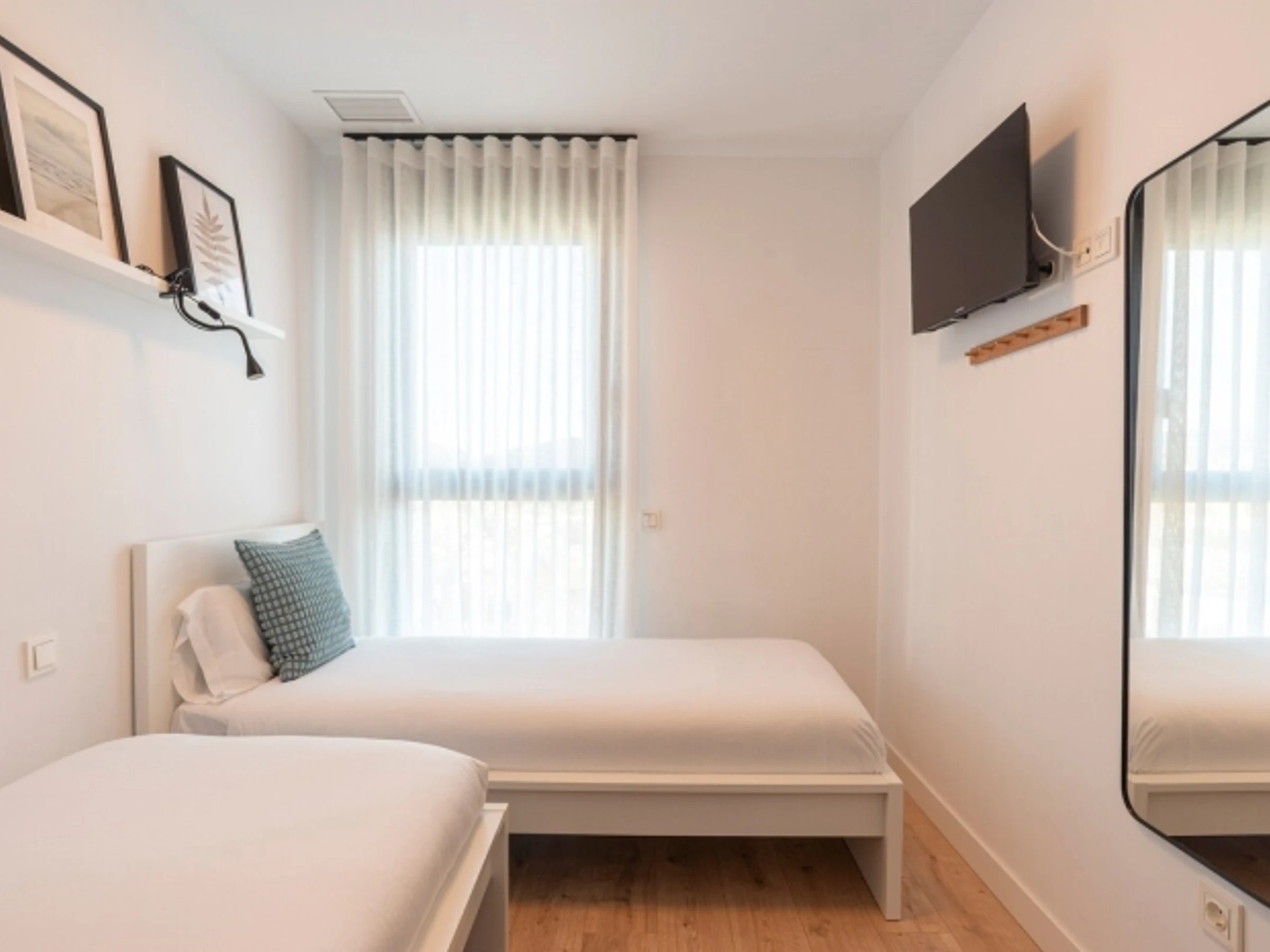 ¡Bienvenido a tu hogar en las alturas! Este moderno apartamento en la planta 23 de las Torres de Martiricos cuenta con dos dormitorios, dos baños, un salón acogedor y una cocina completamente equipada.Disfruta de exclusivas zonas comunes: piscina, coworking, sala de cine, gimnasio y parking privado. Ideal para estancias cortas o largas, con vistas panorámicas y todas las comodidades para una experiencia única y lujosa a tan solo 10 minutos andado del centro de Málaga. El apartamento está conformado por dos dormitorios , dos baños, salón y [hidden] habitación principal cuenta con una cama de 150 x 200 cm, un vestidor y un baño en [hidden] segunda habitación cuenta con dos camas individuales de 90 x 200 cm. La piscina permanecerá cerrada hasta el 1 de junio de 2025
