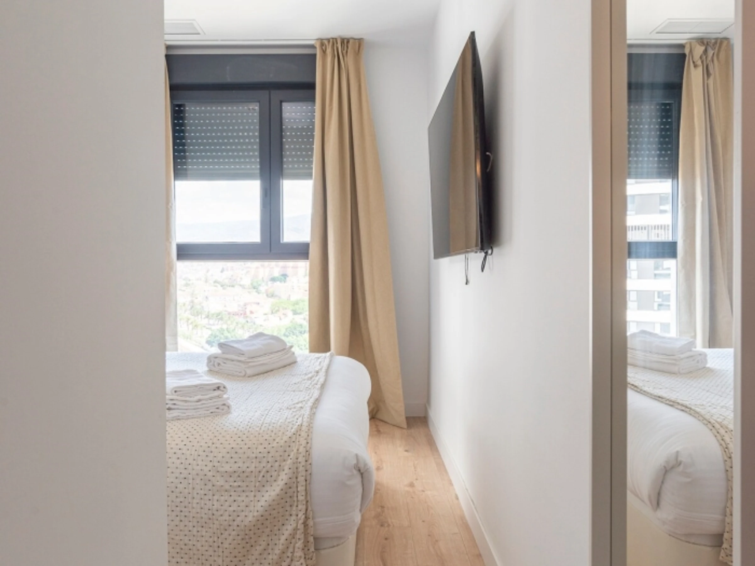 ¡Bienvenido a tu hogar en las alturas! Este moderno apartamento en la planta 14 de las Torres de Martiricos cuenta con dos dormitorios, dos baños, un salón acogedor y una cocina completamente equipada.Disfruta de exclusivas zonas comunes: piscina, coworking, sala de cine, gimnasio y parking privado. Ideal para estancias cortas o largas, con vistas panorámicas y todas las comodidades para una experiencia única y lujosa a tan solo 10 minutos andado del centro de Málaga. El apartamento está conformado por tres dormitorios , dos baños, salón y [hidden] primera habitación cuenta con una cama [hidden] segunda habitación cuenta con una cama de [hidden] tercera habitación cuenta con una cama de matrimonio y baño en suite. La piscina permanecerá cerrada hasta el 1 de junio de 2025