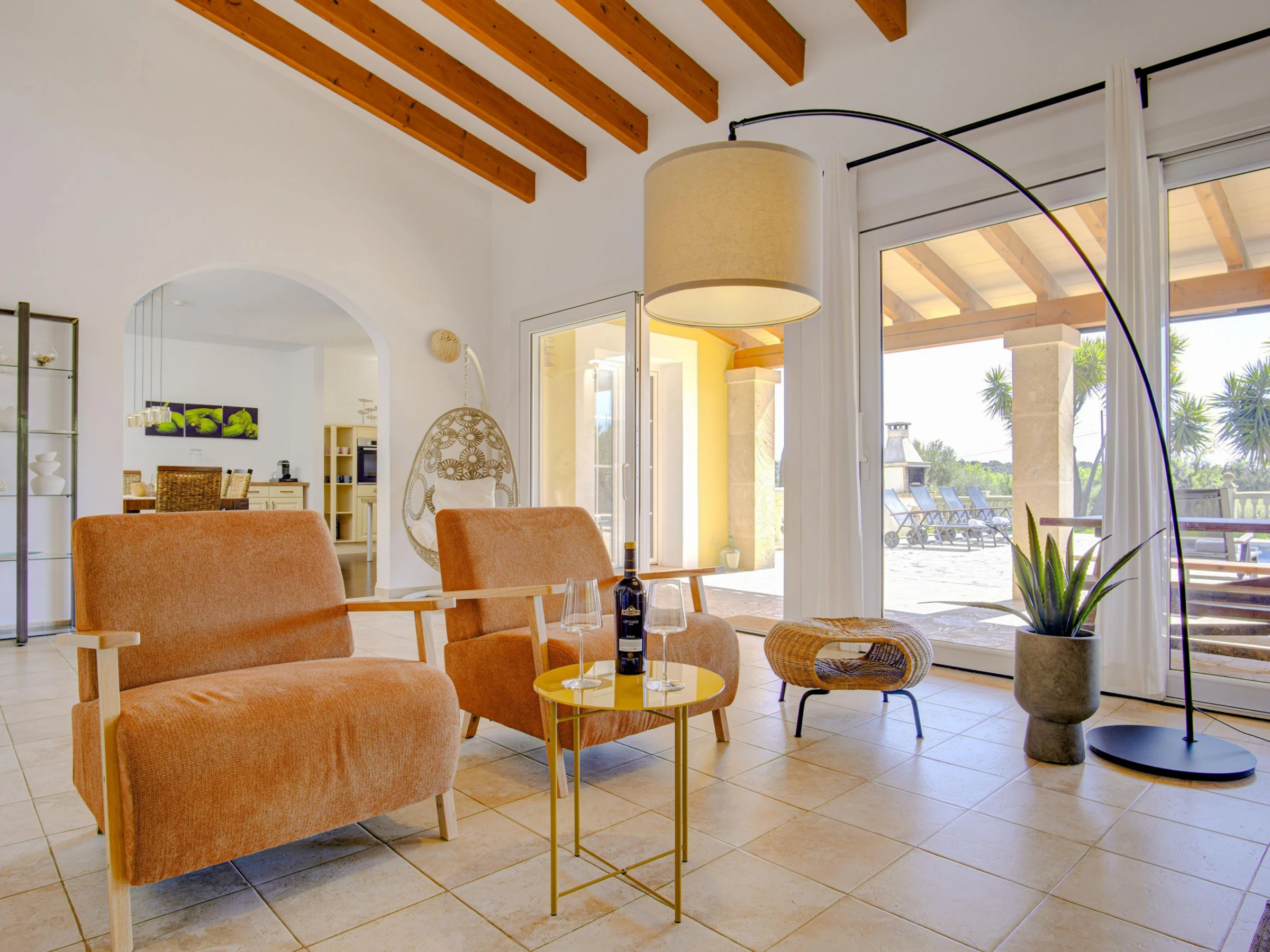 Los exteriores son fantásticos para disfrutar del buen tiempo en la isla. Podrán nadar en la piscina de cloro que mide 10 x 5 metros y que tiene una profundidad que va de 0.50 a 1.60 metros. Después disfruten del sol en las tumbonas y degusten una deliciosa barbacoa en el porche. La propiedad se encuentra vallada y la privacidad es total.
