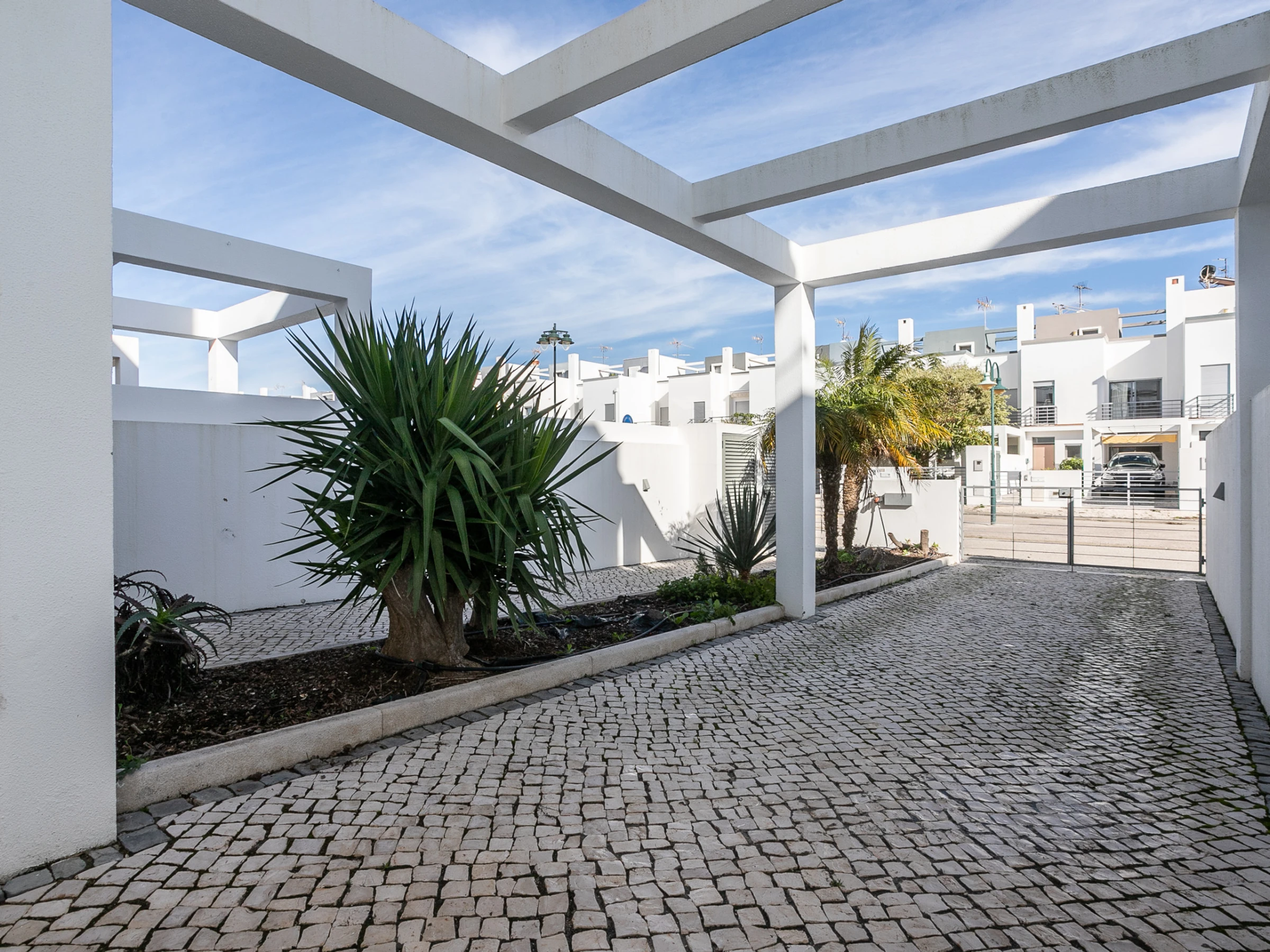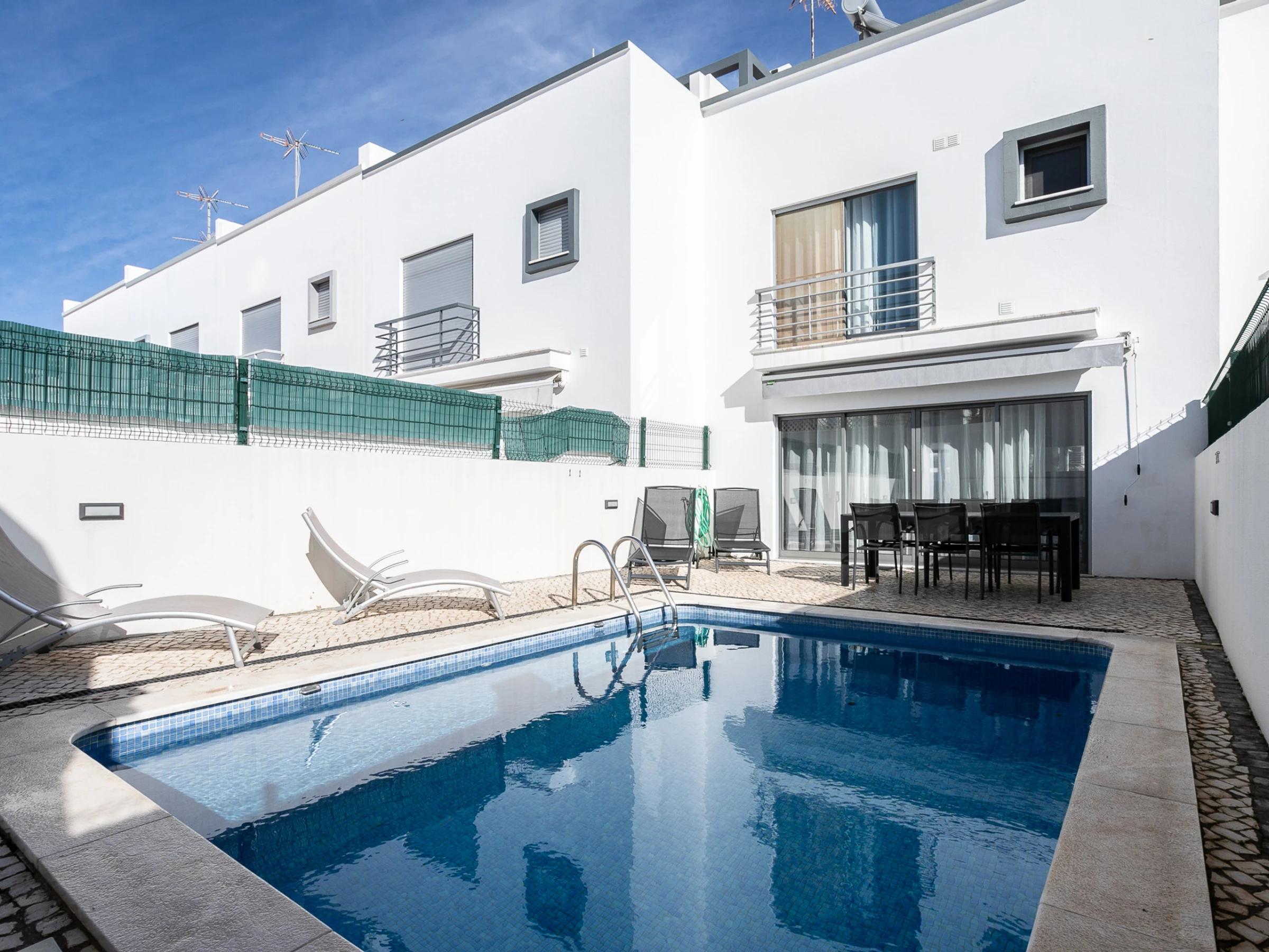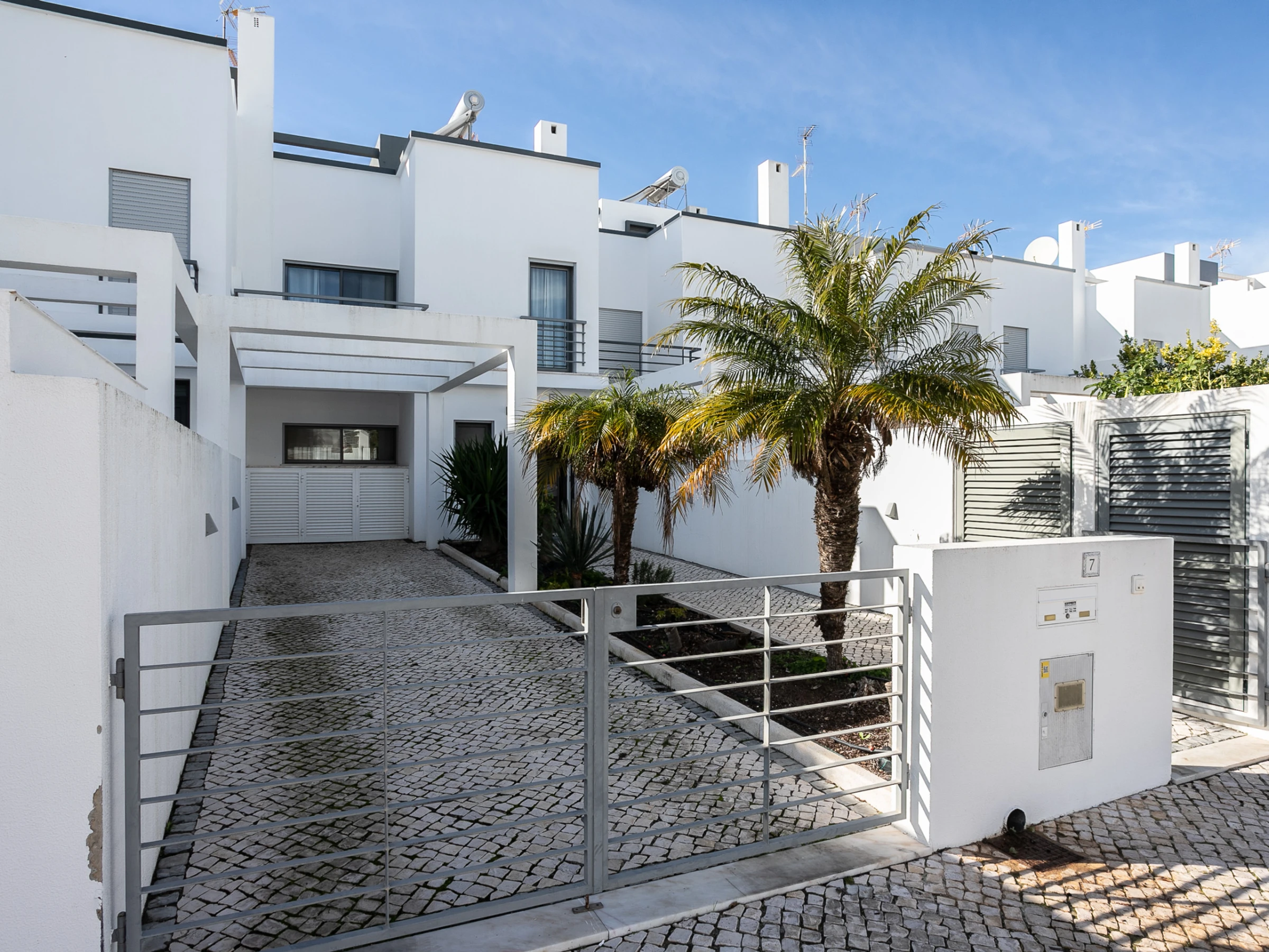 El espacio exterior maximiza la vida al aire libre, con una piscina privada orientada al oeste, tumbonas para relajarse al sol, y una zona cubierta con toldo, equipada con mesa, sillas y barbacoa para comidas al aire libre. Una terraza adicional de 20m² con mobiliario de jardín proporciona más espacio para disfrutar del clima del Algarve. La vivienda dispone además de estacionamiento privativo para hasta 2 vehículos dentro de la propiedad.