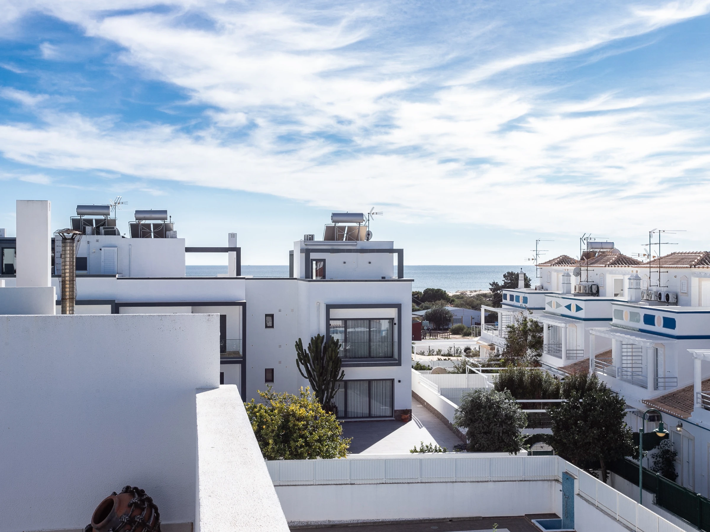Estratégicamente ubicada, la vivienda se encuentra a unos 100 metros de la Playa de Lota, con fácil acceso a través de un paseo peatonal de madera. En las proximidades, hay restaurantes, cafés, supermercados, cajeros automáticos y otros servicios, todos accesibles a pie. Puntos de interés como el Parque Natural de Ria Formosa están a 1 km, y campos de golf como Quinta da Ria y Monte Rei están a pocos kilómetros. La estación y parada de autobús de Vila Nova de Cacela también se encuentran cerca.