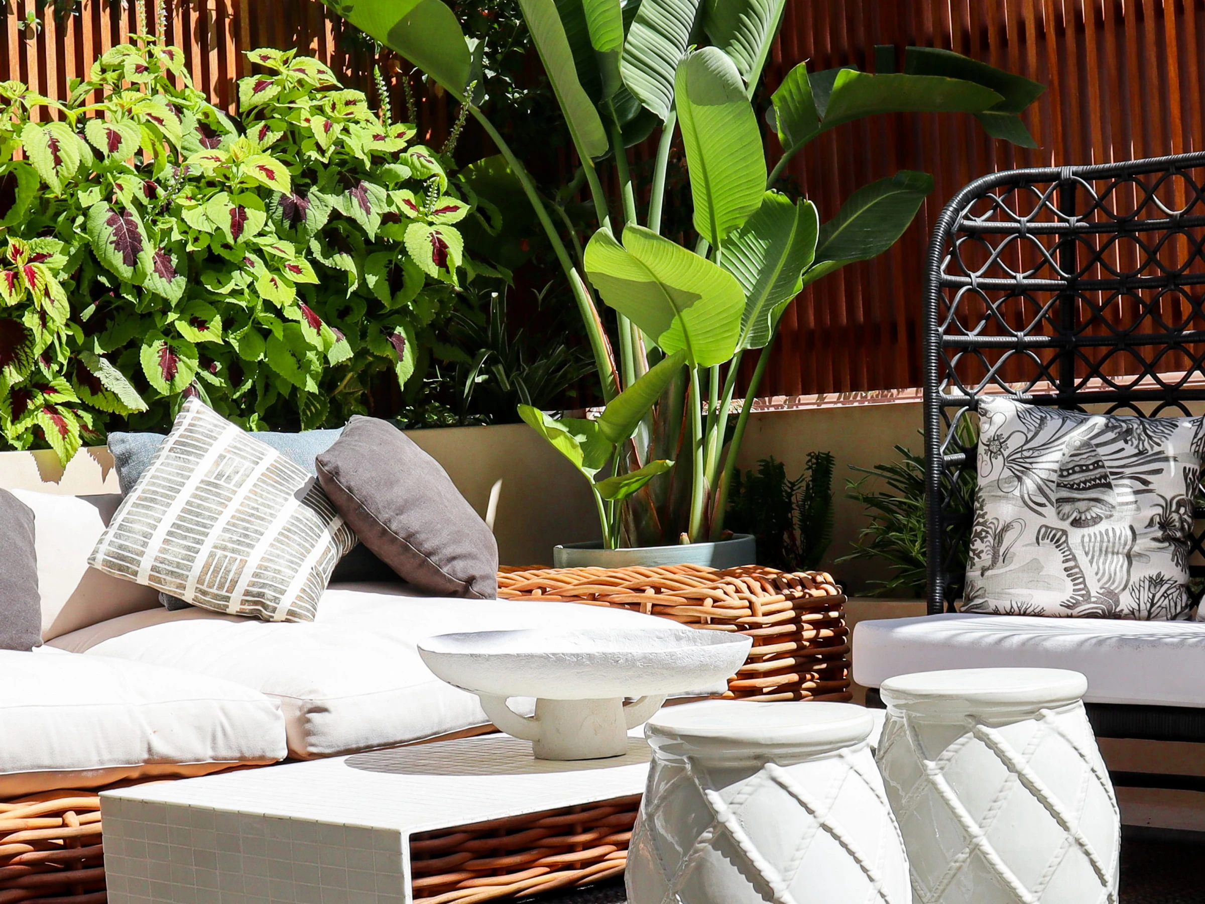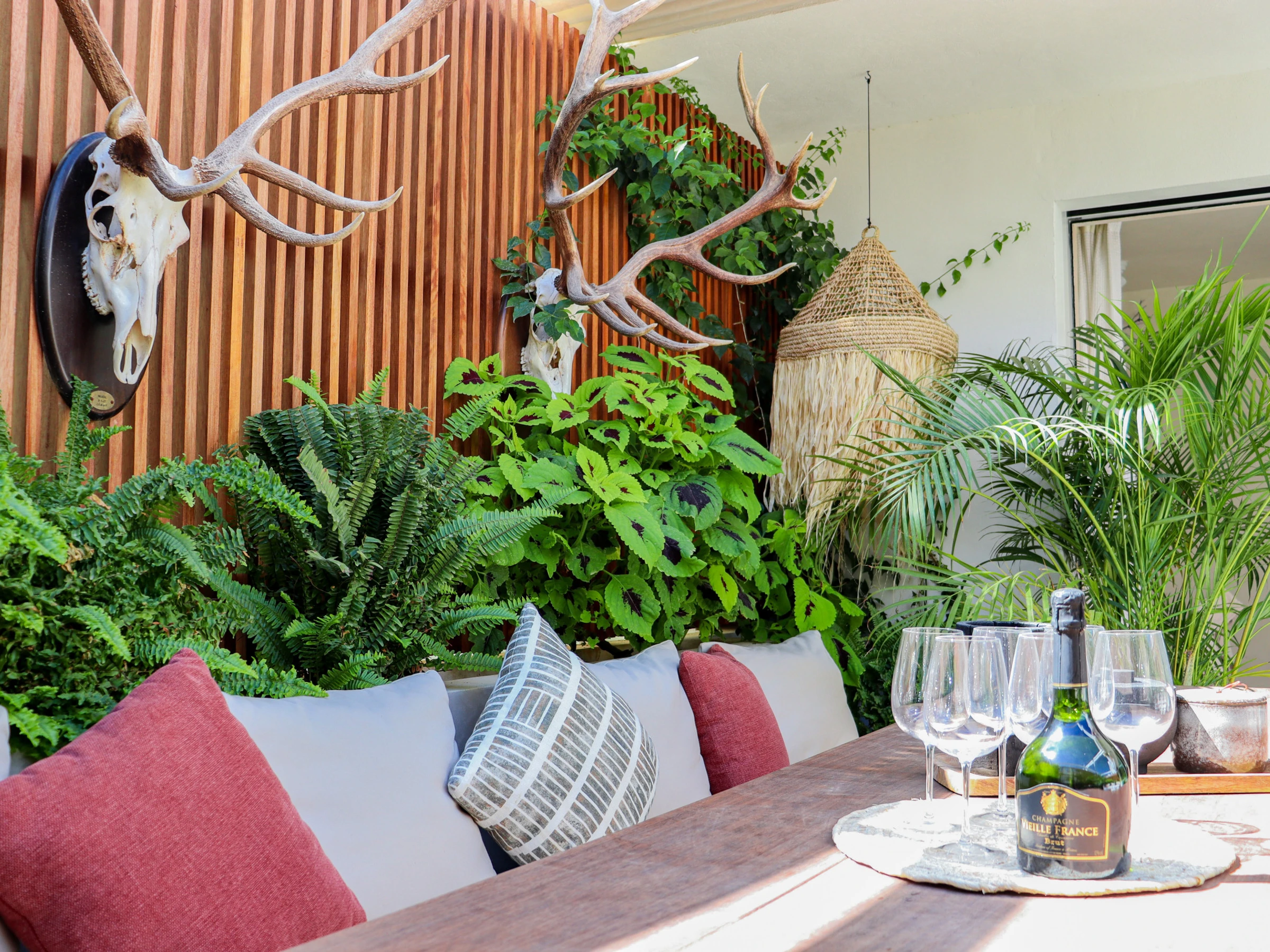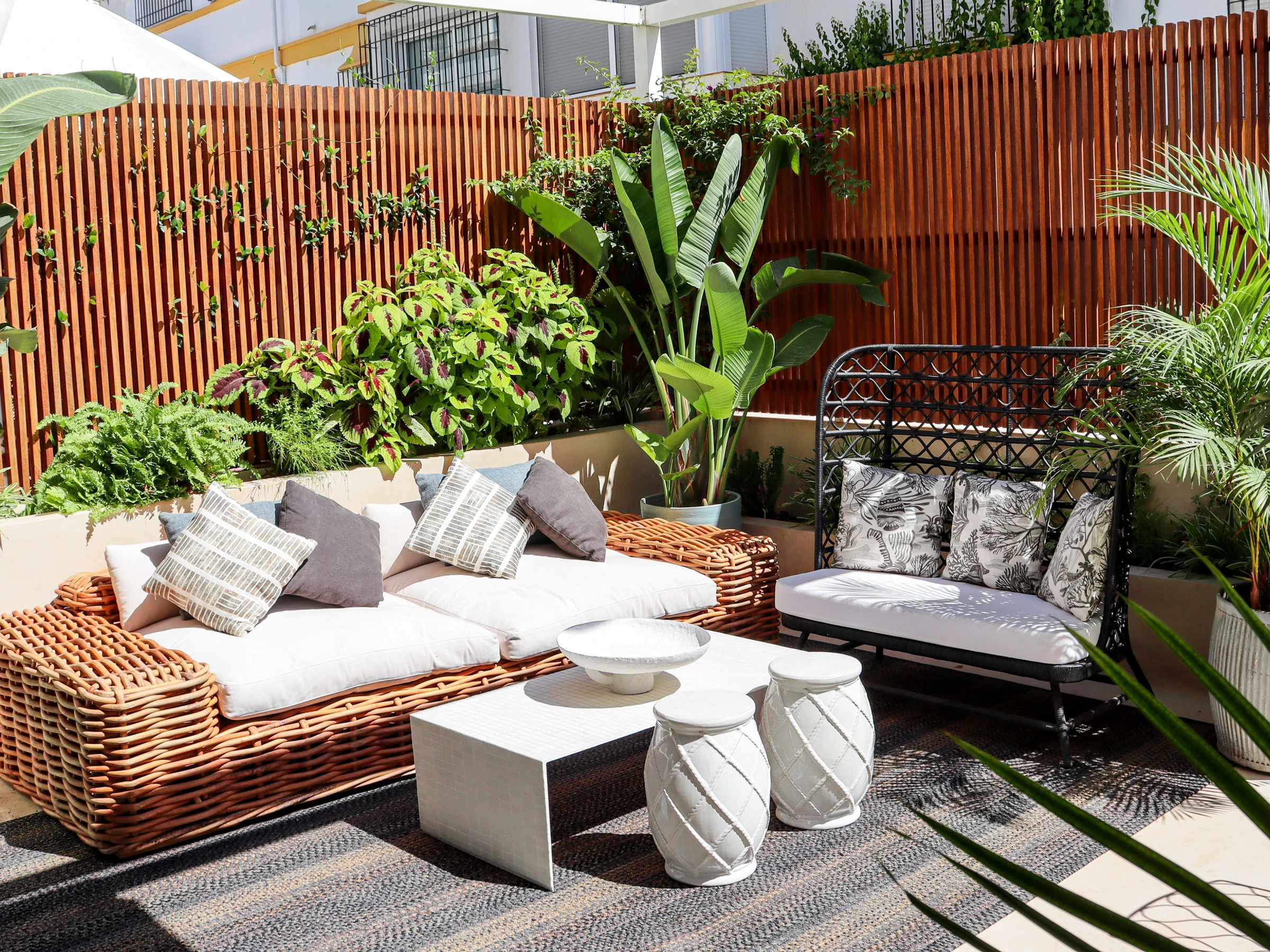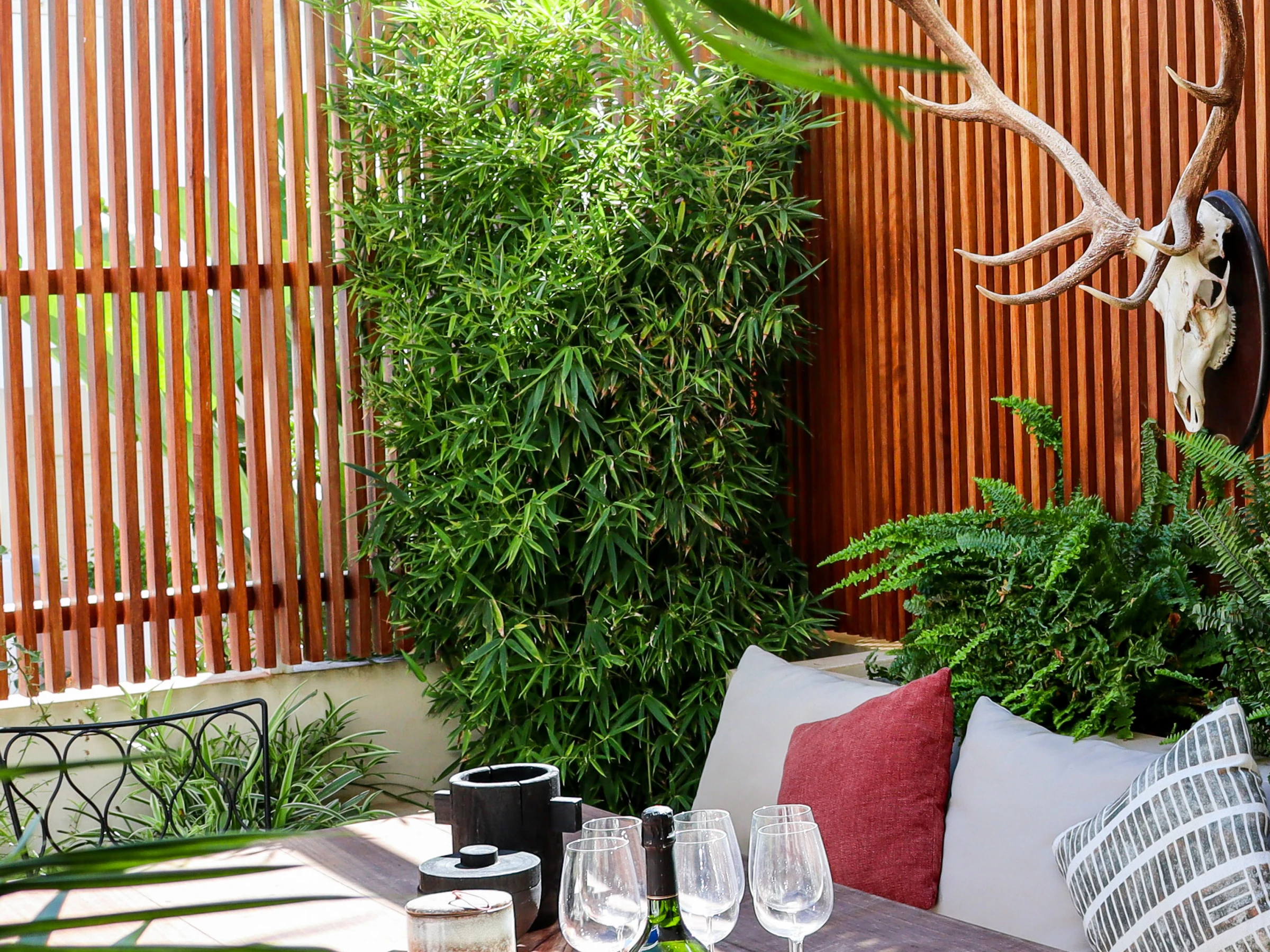 Completamente renovada en colaboración con un equipo de arquitectos y diseñadores de interiores, Casa Bambu muestra una impresionante fusión de diseño minimalista y estilo mediterráneo atemporal. El salón y el área de comedor de planta abierta están bañados de luz natural y decorados con gusto con iluminación inspirada en el coral, velas flotantes y refinados acentos decorativos. Las puertas francesas de suelo a techo se abren a una exuberante terraza privada orientada al este, que ofrece asientos sombreados, un área de comedor elegante y una vista verde tranquila, perfecta para una vida al aire libre relajada.