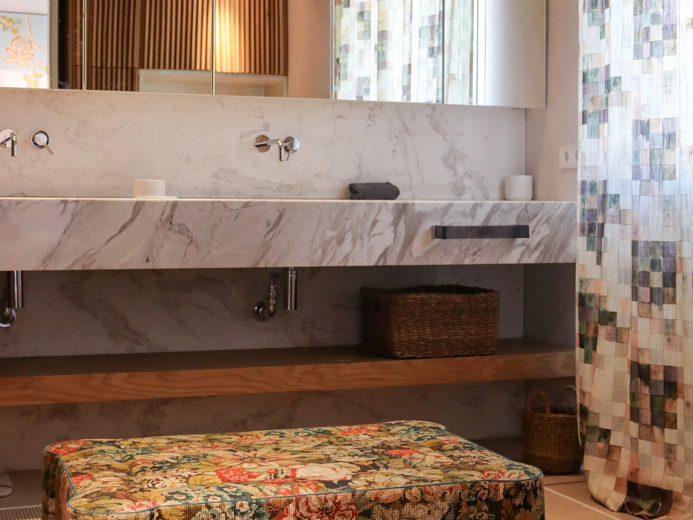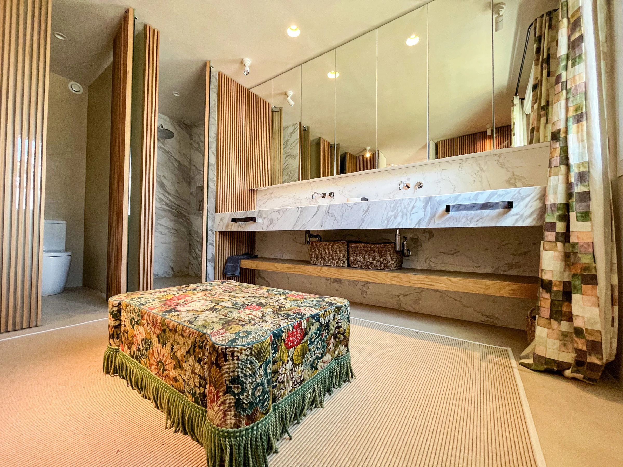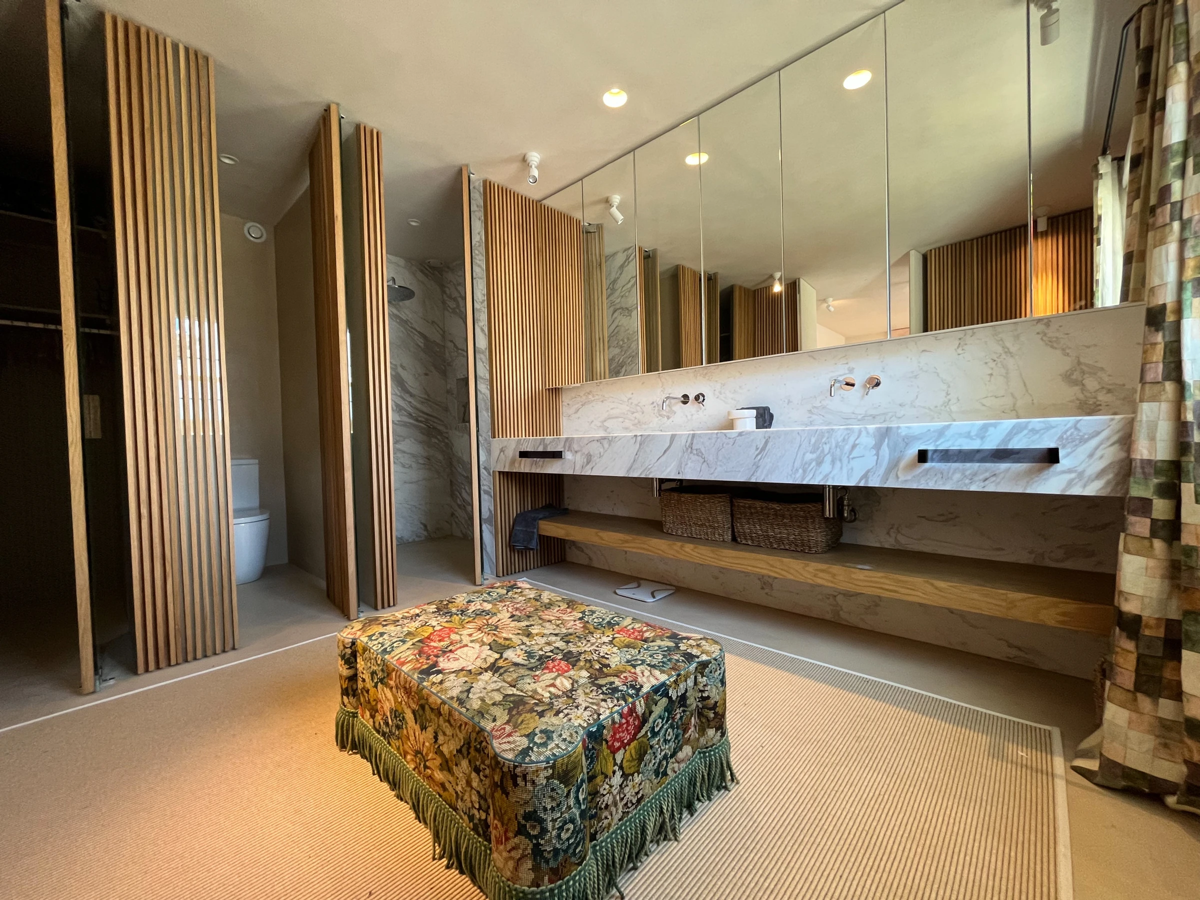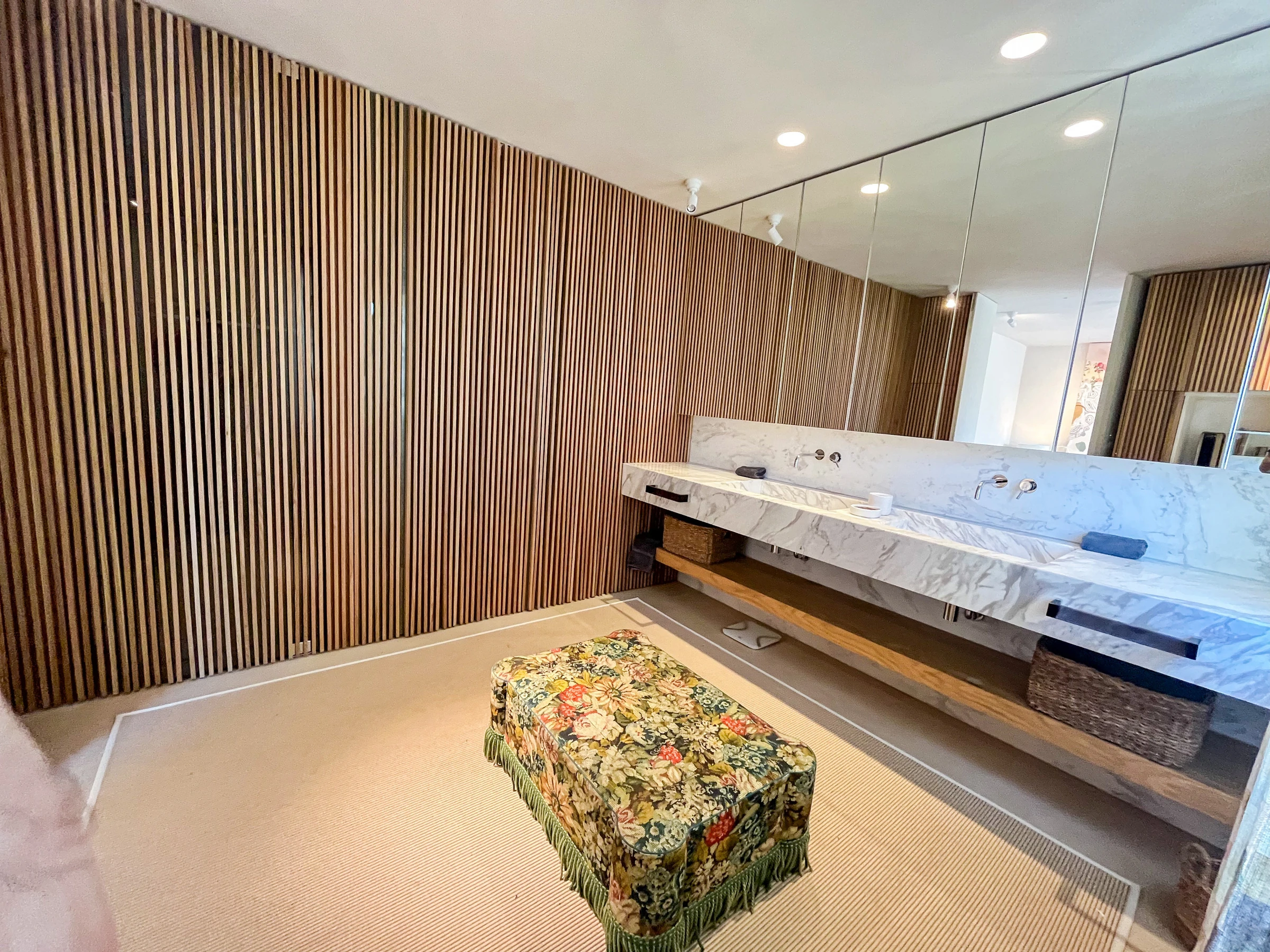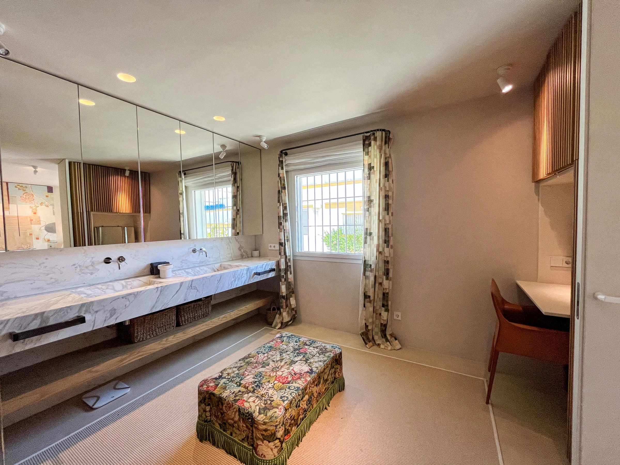 En la planta superior, la suite principal es un verdadero santuario, con un vestidor, área de vestimenta, espacio de trabajo dedicado y un lujoso baño revestido de mármol. Dos dormitorios adicionales bellamente equipados —uno con una cama de matrimonio y el otro con camas gemelas— comparten un amplio y moderno baño familiar. Todos los baños incluyen calefacción por suelo radiante, y la vivienda se beneficia de un nuevo sistema de aire acondicionado y calefacción de tipo split en toda la casa.